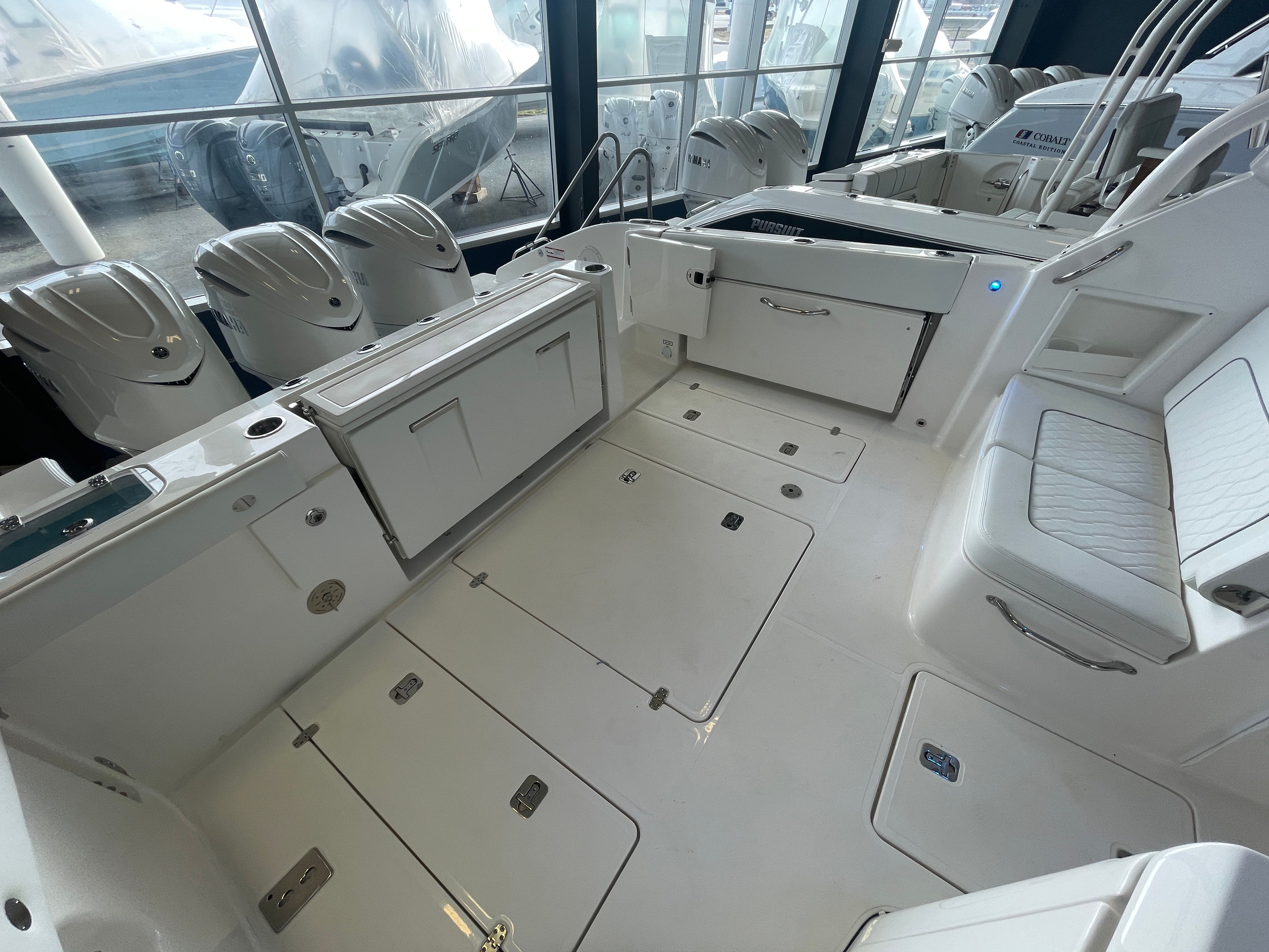 Power and precision define the performance of the Pursuit 365 DC. Outfitted with three robust engines delivering a combined 1,050 horsepower, this Dual Console boat for sale offers exhilarating speed and agile handling. Whether you are cruising along the coastline, heading offshore for a day of fishing, or simply enjoying a leisurely ride with family and friends, the 365 DC responds with impressive acceleration and smooth maneuverability. The triple-engine configuration ensures reliable power and efficiency, making every journey both thrilling and dependable. Pursuit’s renowned engineering guarantees a stable and comfortable ride, even in challenging conditions, so you can focus on making memories on the water.