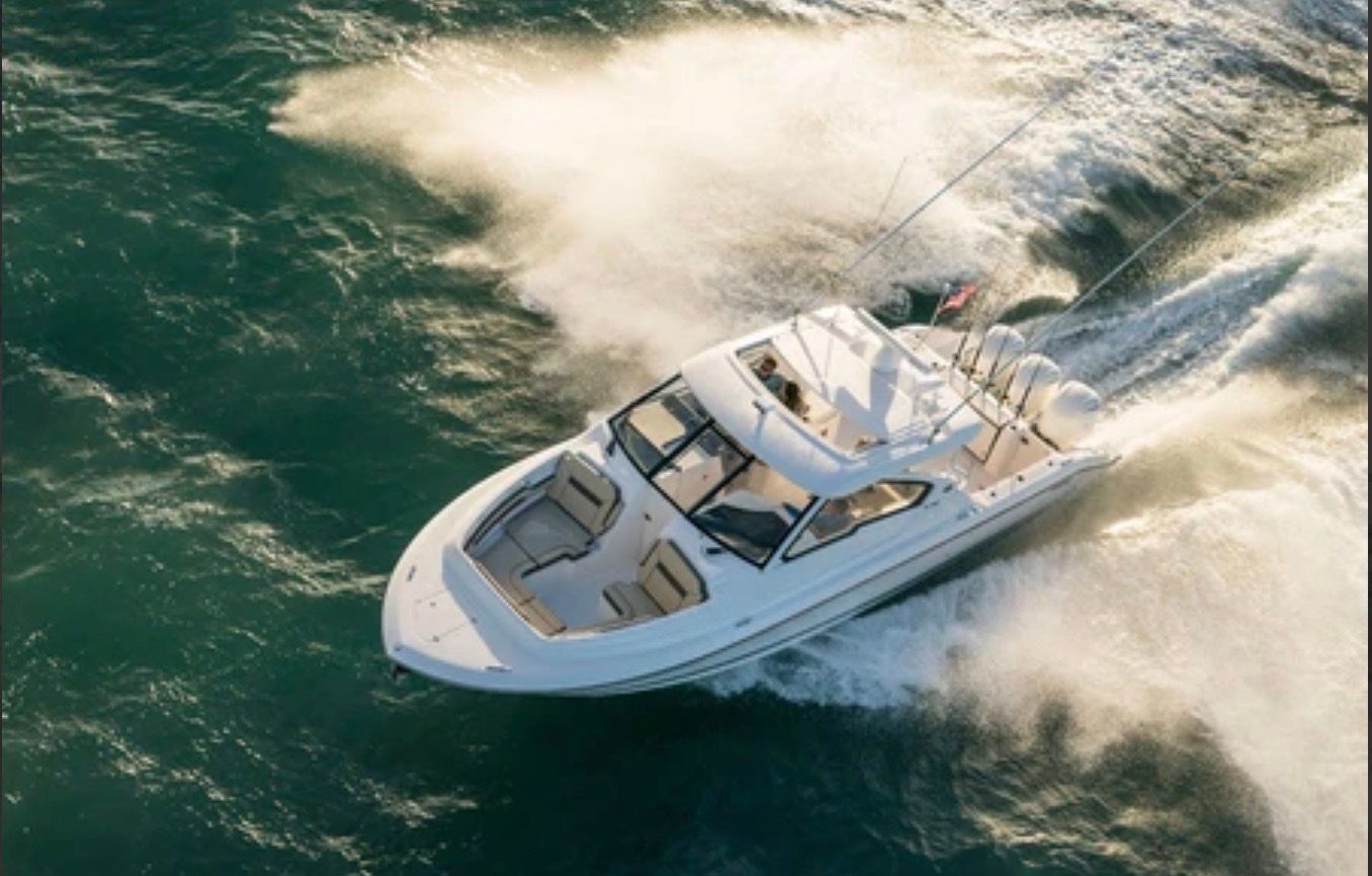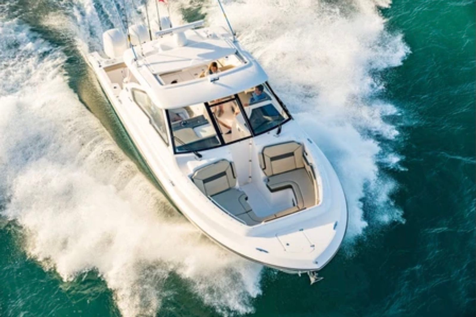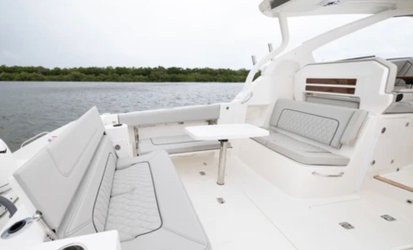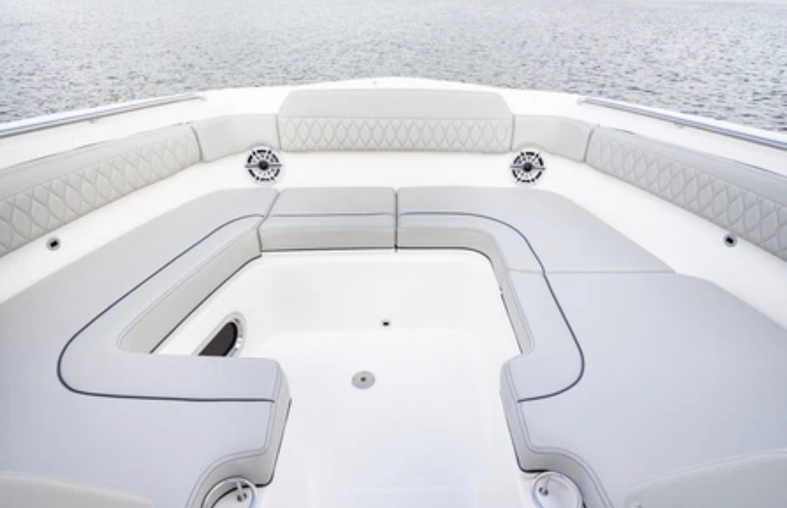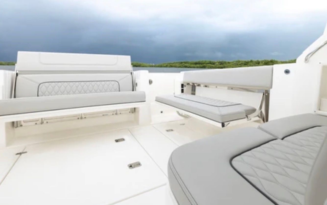The Pursuit DC 365 is designed with practicality in mind, offering features that make ownership easy and enjoyable. The Multifunction Display Interface streamlines navigation and system monitoring, while the Manual Engine Flushing System simplifies routine maintenance. The Yamaha Joystick Control with Set Point and Autopilot makes docking and maneuvering effortless, even in tight spaces or challenging conditions. The ample storage solutions, including the bridgedeck teak table with storage, ensure your gear and essentials are always within reach. The custom retractable sunshade provides instant protection from the sun, enhancing comfort during long days on the water. Whether you’re heading out for a quick cruise or a full day of adventure, the Pursuit DC 365 dual console boat is equipped to handle every scenario with ease.