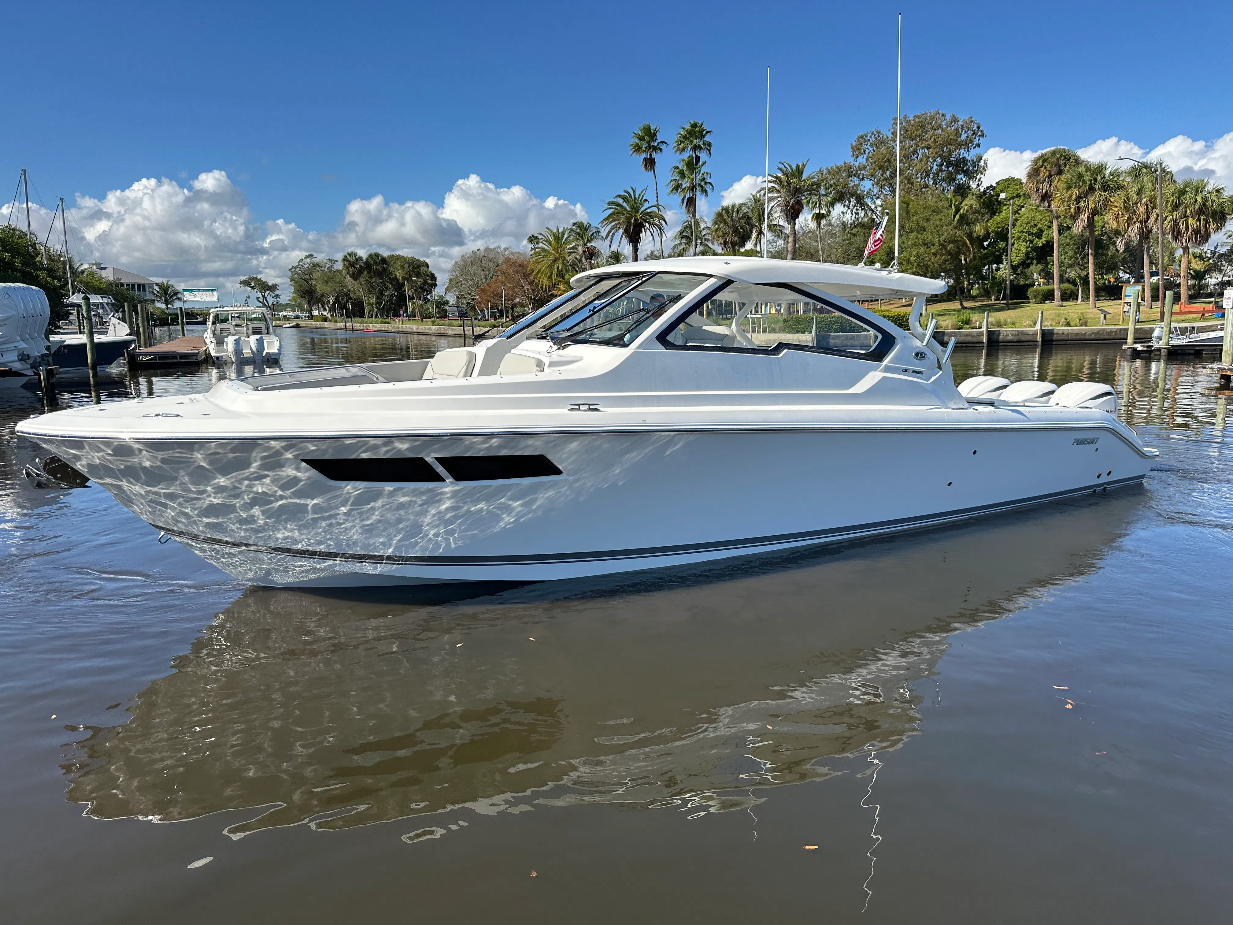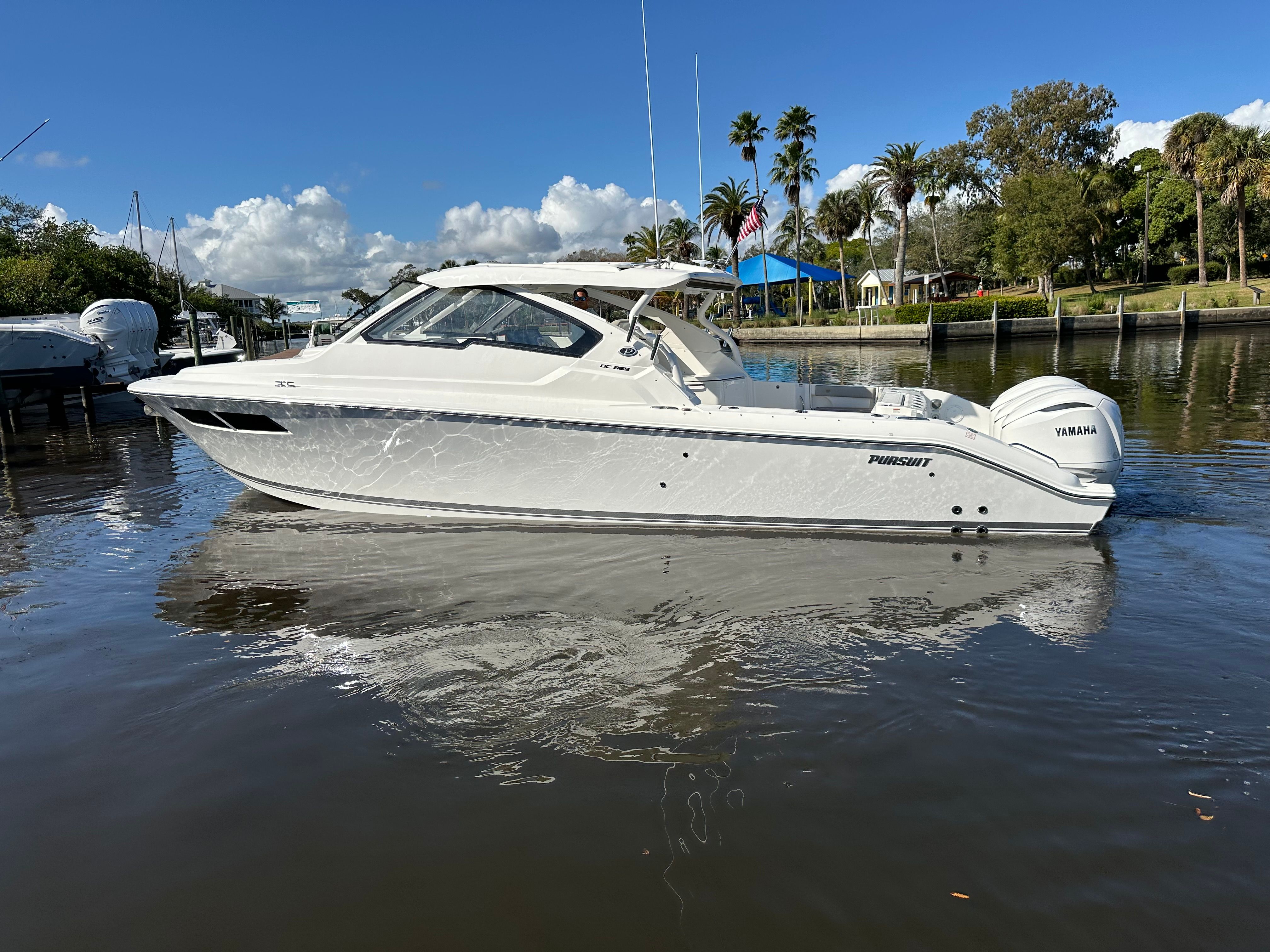 Owning the Pursuit DC 365 means embracing a lifestyle of fun, relaxation, and excitement. The dual console layout offers ample seating and space for socializing, making it ideal for entertaining family and friends. The plush Tranquil Sea interior and cockpit air conditioning ensure that everyone stays comfortable, whether you’re enjoying a leisurely cruise or hosting a sunset party. The advanced stabilization system and powerful engines guarantee a smooth and thrilling ride, so you can focus on making memories instead of worrying about the conditions.The upgraded audio system with zone control and Sirius capability lets you enjoy your favorite music anywhere on the boat, creating the perfect soundtrack for your adventures. The underwater lights add a touch of magic to evening gatherings, illuminating the water and enhancing the atmosphere. With its stylish design and premium features, the DC 365 is more than just a boat—it’s a destination in itself.