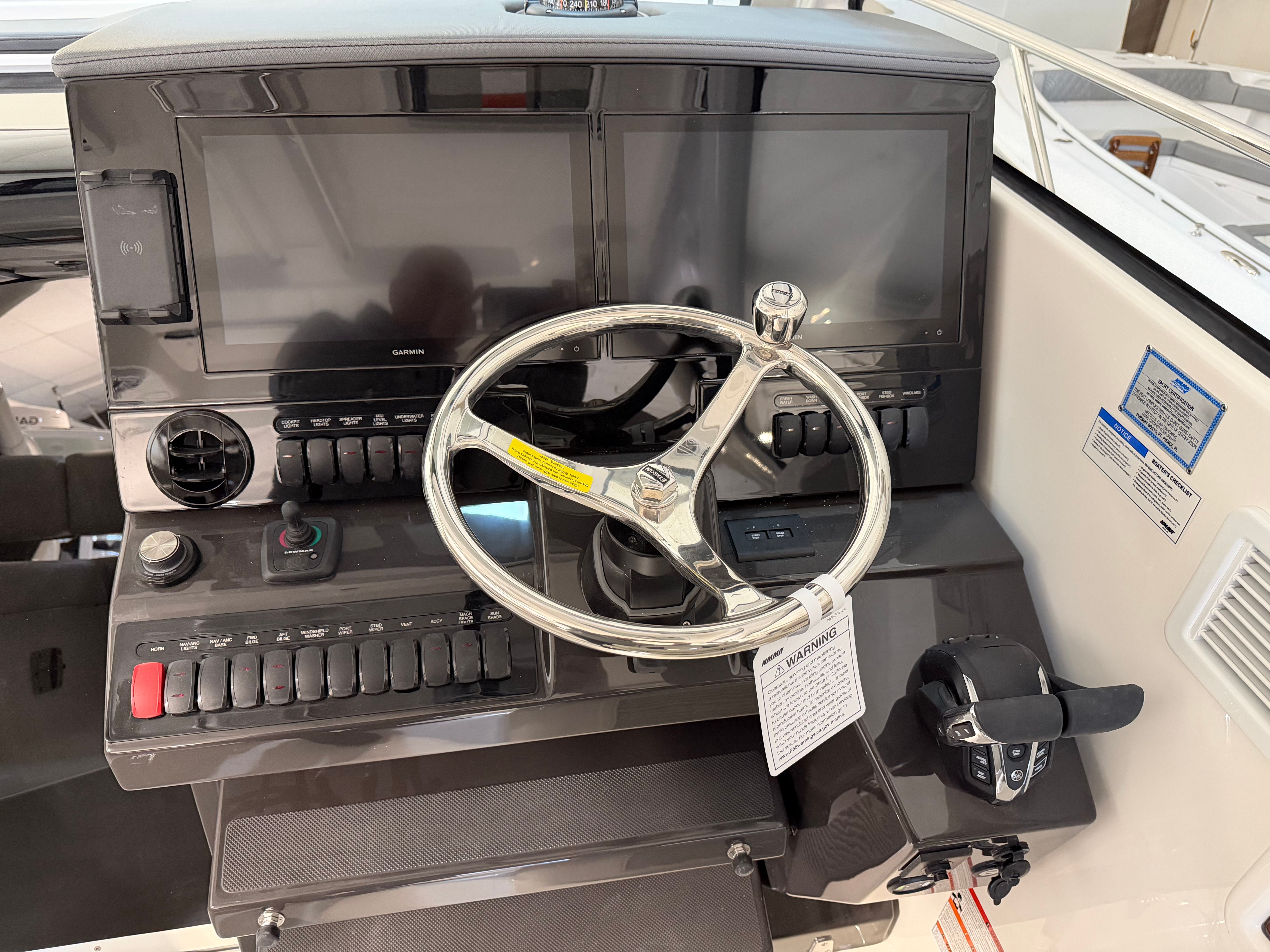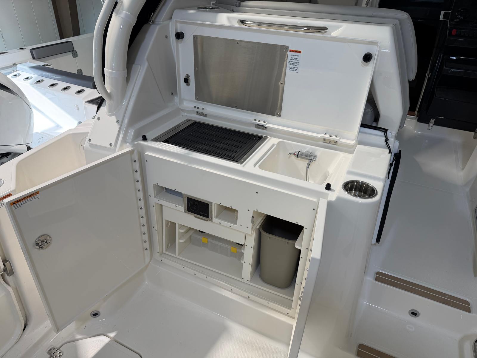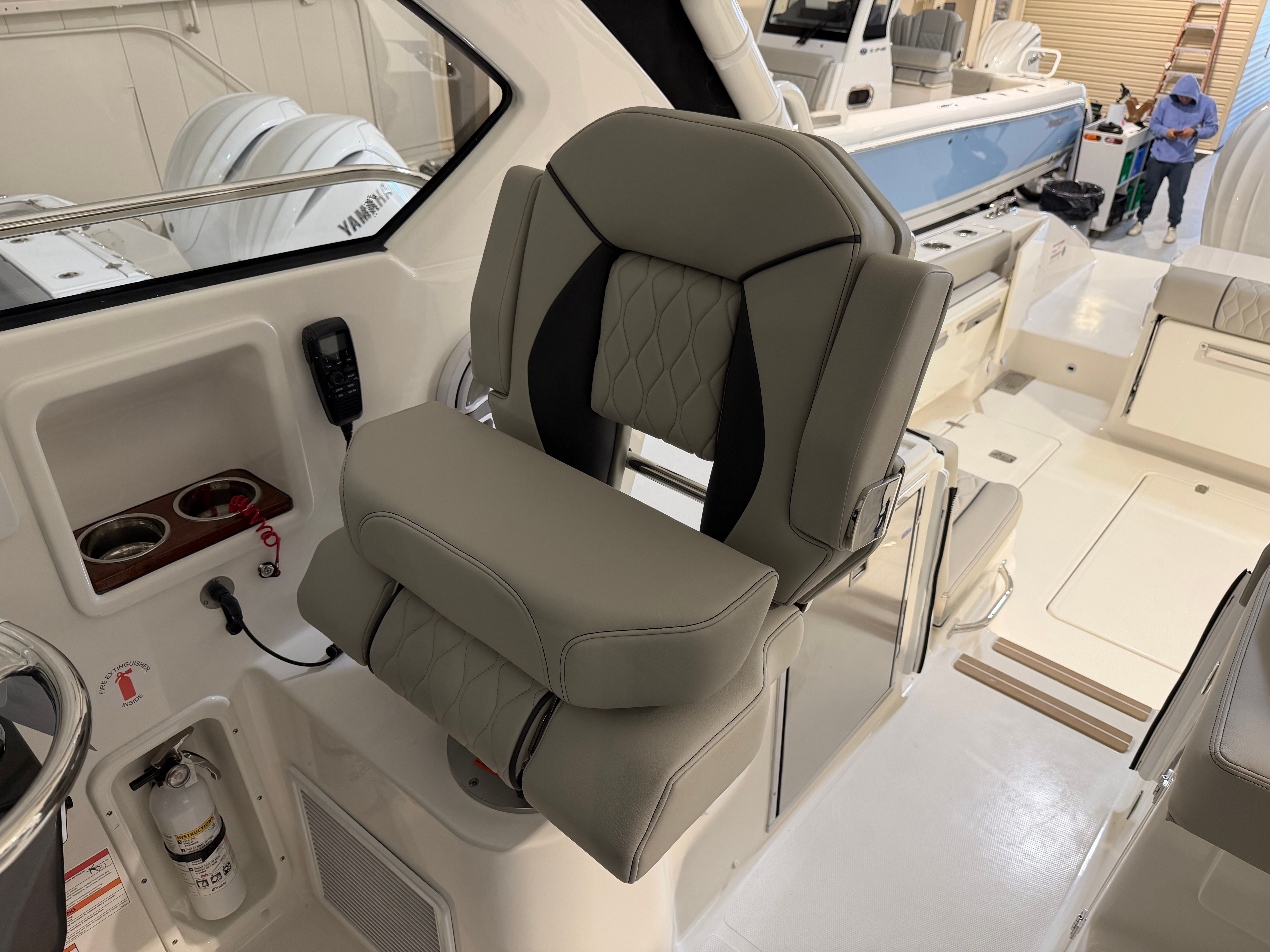 The Pursuit OS 325 is as practical as it is luxurious. Dedicated storage solutions throughout the boat keep your gear organized and out of the way, making it easy to maintain a tidy and functional space. The generator ensures you have reliable power for air conditioning, electronics, and other amenities, even when anchored far from shore. The manual engine flushing system simplifies maintenance, helping you protect your investment and maximize engine life.Docking and maneuvering are effortless thanks to the integrated digital steering and control systems, allowing you to handle the boat with precision in tight spaces. The folding gunwale seat adds flexibility to your seating arrangements, while the hardtop-mounted rod holders and outriggers make it easy to transition from cruising to fishing at a moment’s notice. With its efficient layout and advanced systems, the OS 325 is designed to make ownership as enjoyable and stress-free as possible.