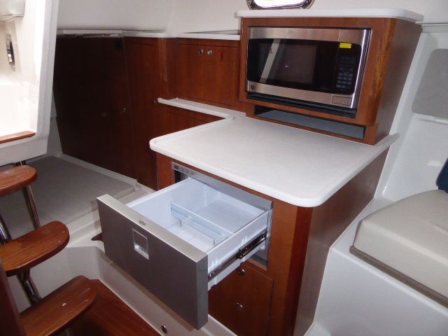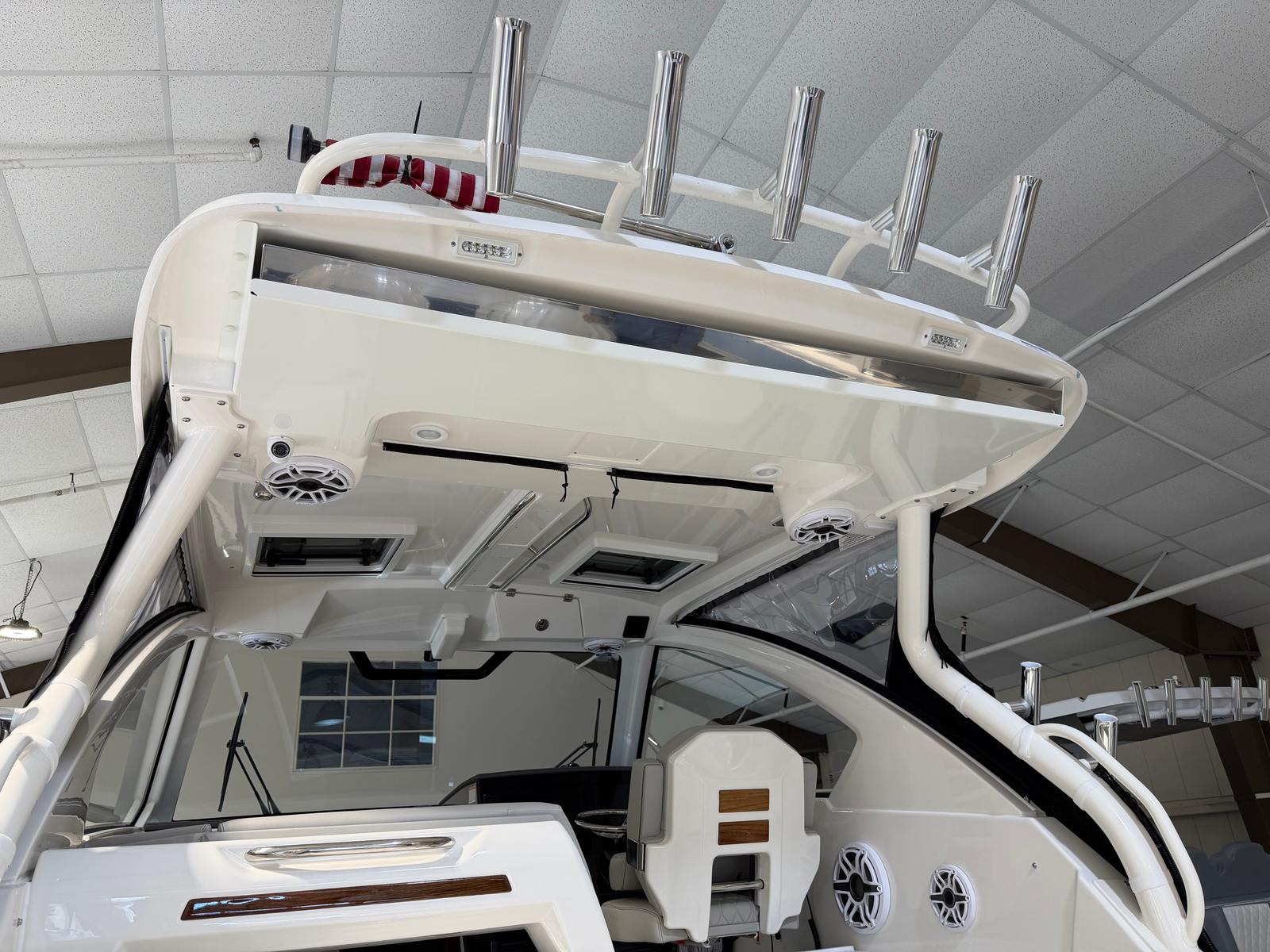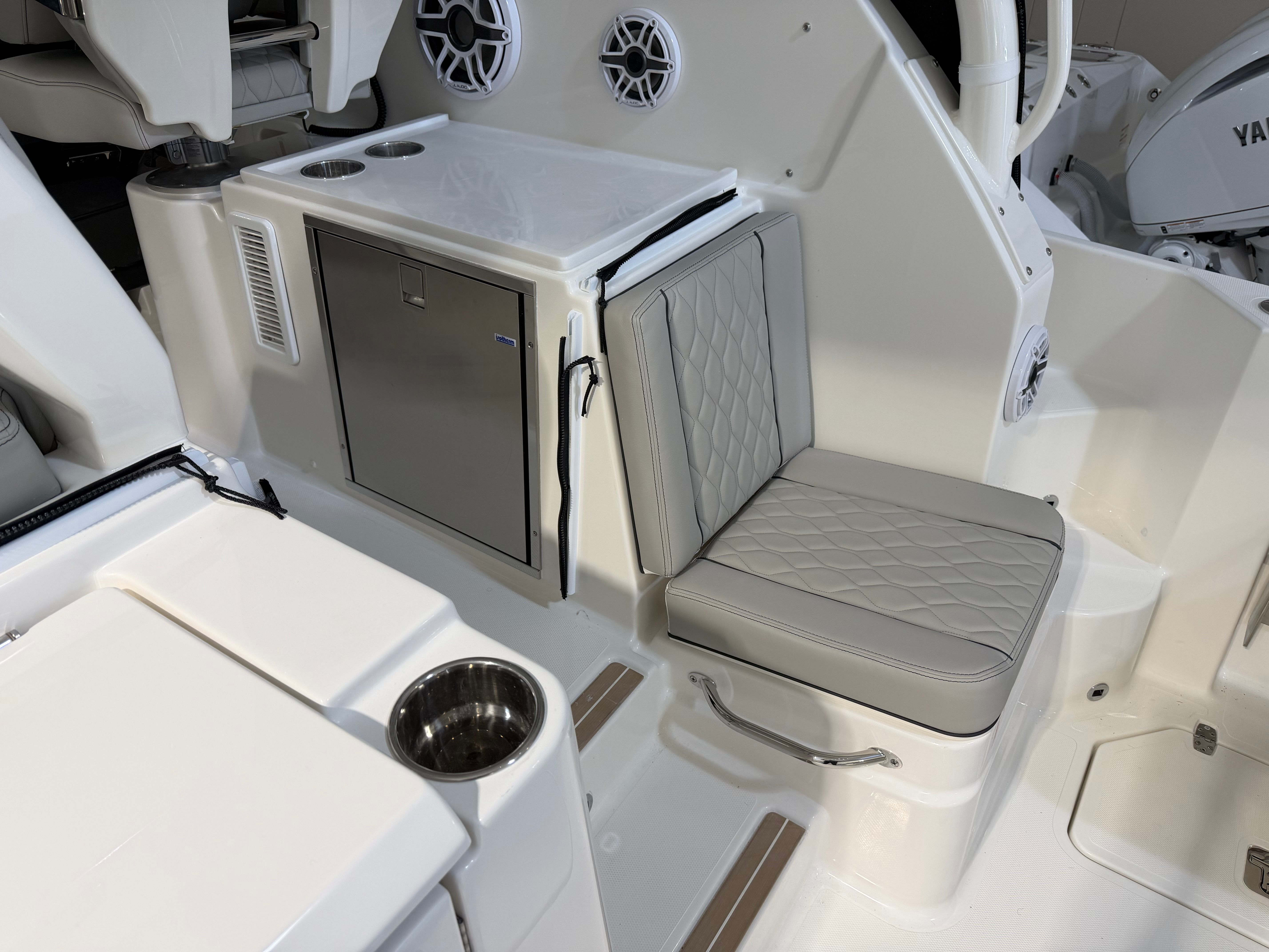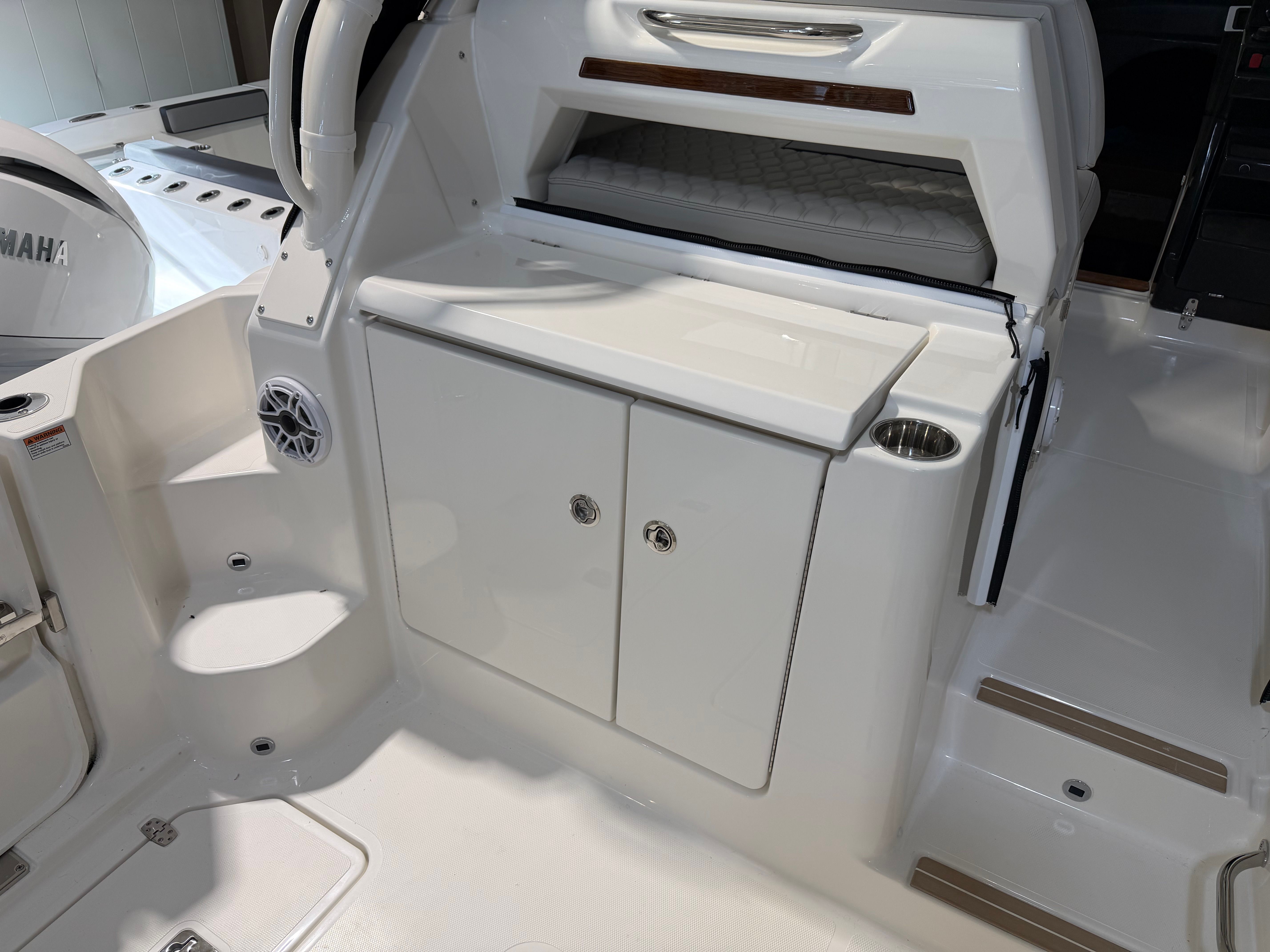 The Pursuit OS 325 is as practical as it is luxurious. Dedicated storage solutions throughout the boat keep your gear organized and out of the way, making it easy to maintain a tidy and functional space. The generator ensures you have reliable power for air conditioning, electronics, and other amenities, even when anchored far from shore. The manual engine flushing system simplifies maintenance, helping you protect your investment and maximize engine life.Docking and maneuvering are effortless thanks to the integrated digital steering and control systems, allowing you to handle the boat with precision in tight spaces. The folding gunwale seat adds flexibility to your seating arrangements, while the hardtop-mounted rod holders and outriggers make it easy to transition from cruising to fishing at a moment’s notice. With its efficient layout and advanced systems, the OS 325 is designed to make ownership as enjoyable and stress-free as possible.
