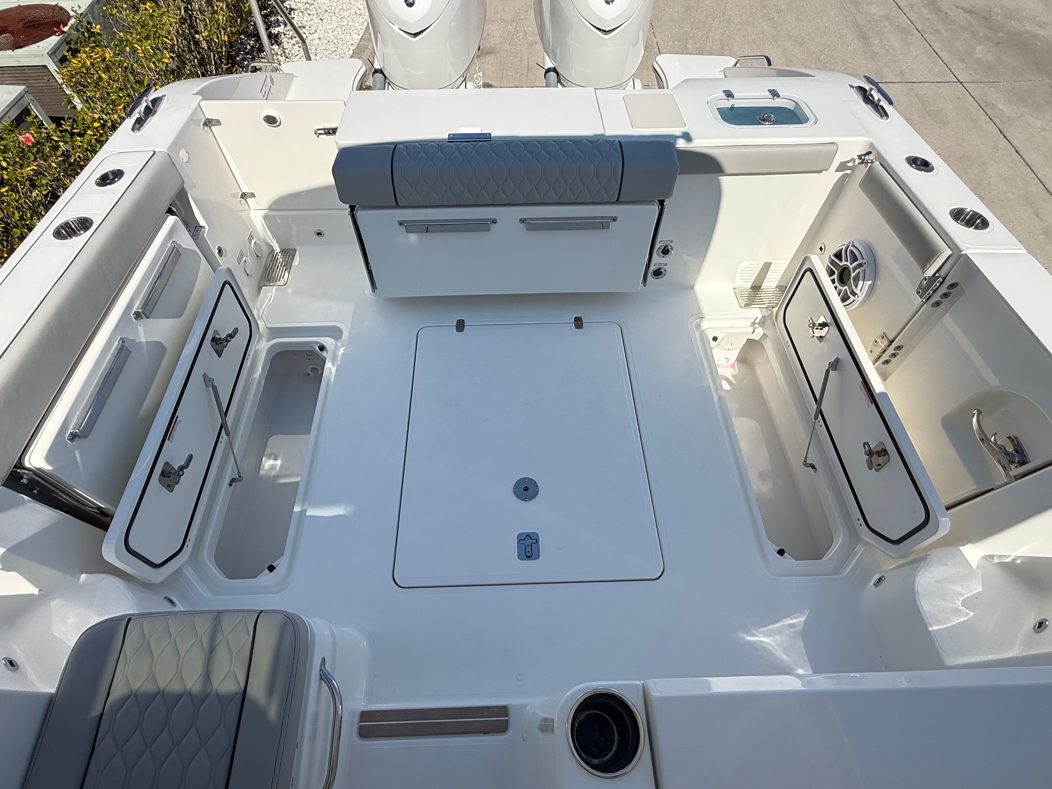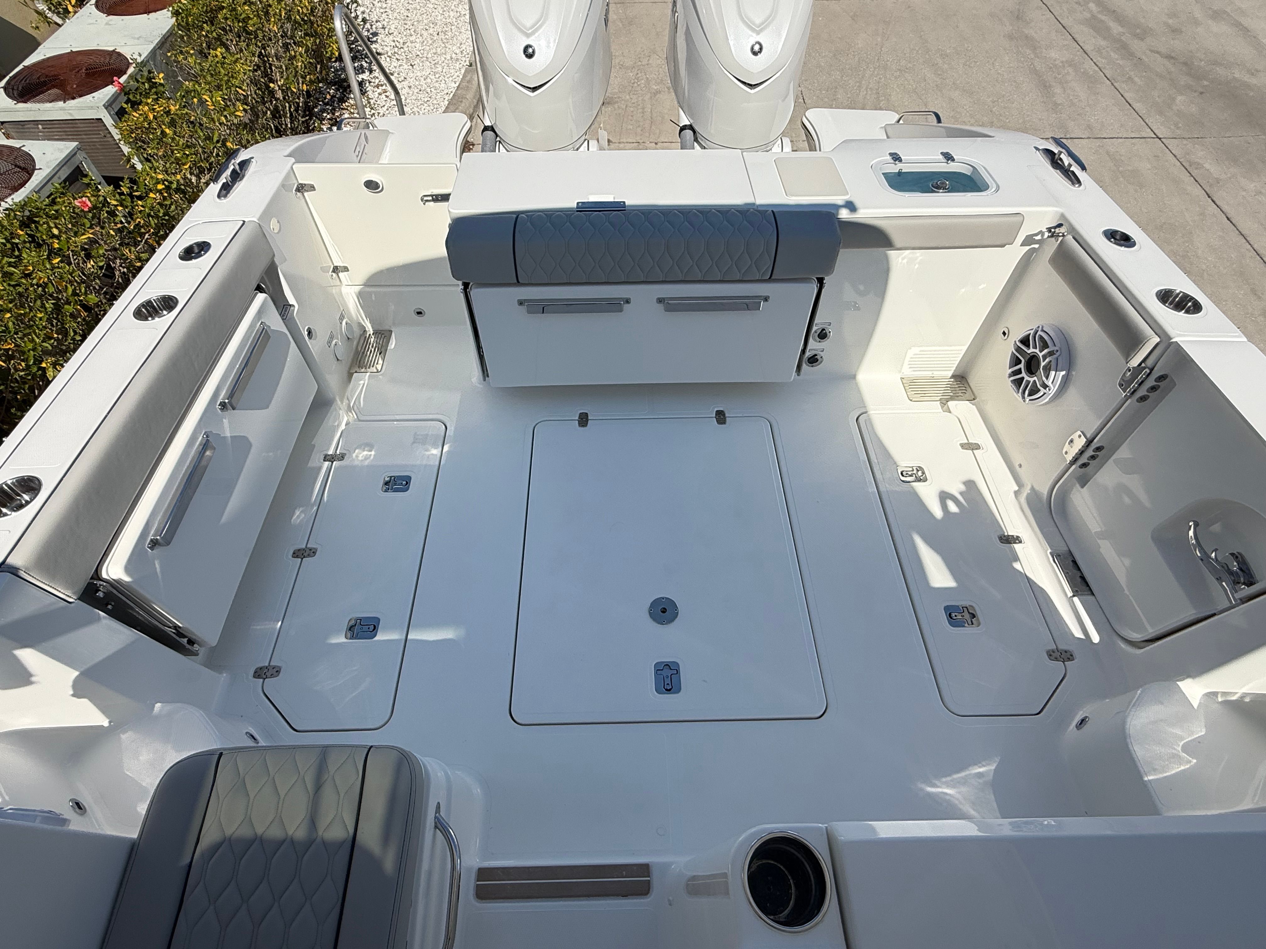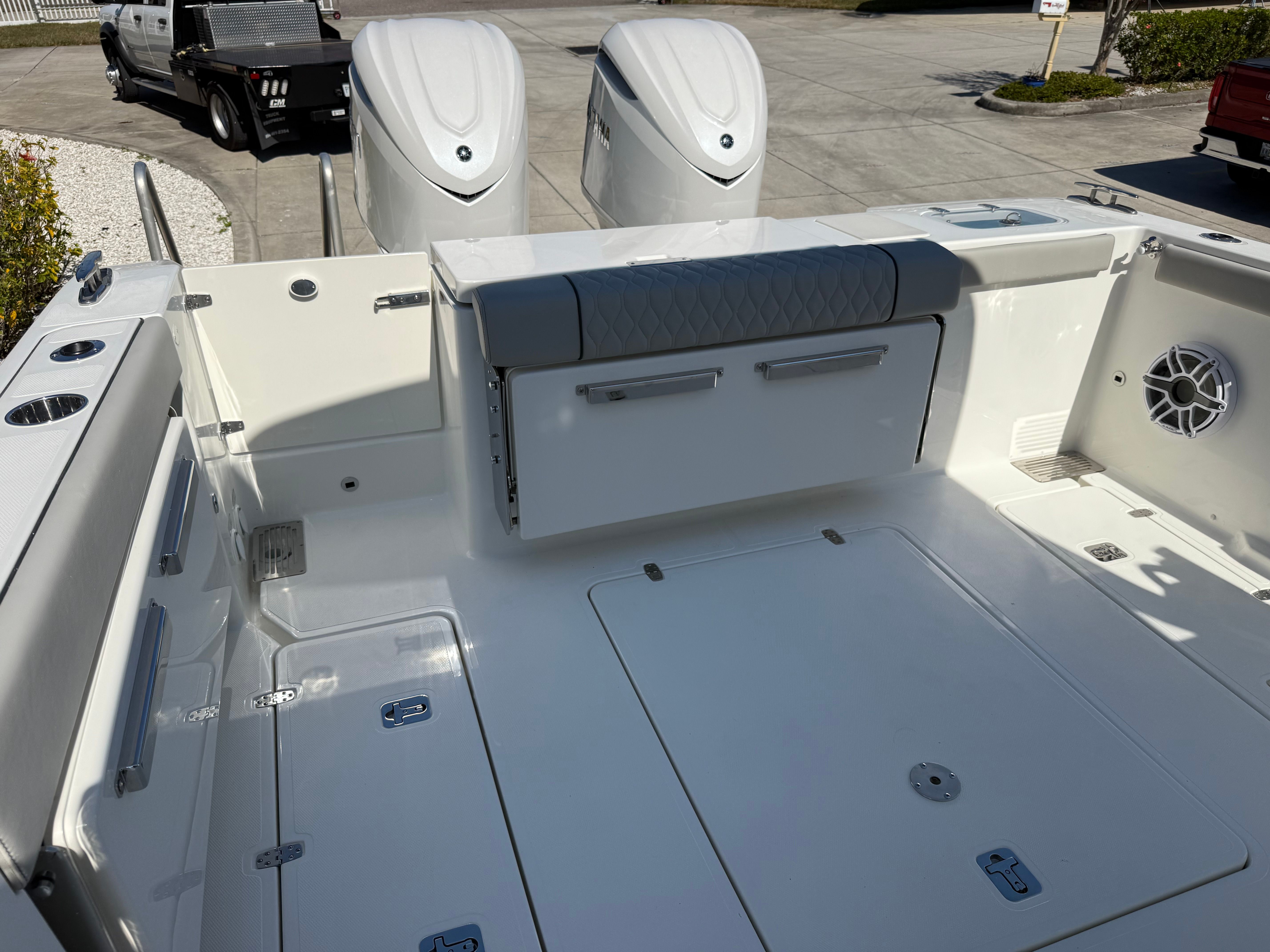 Power and precision define the performance of the Pursuit OS 325. Equipped with twin Yamaha F350 engines, this cruiser boasts a combined 700 horsepower, ensuring exhilarating speed and smooth handling in a variety of conditions. The Yamaha Joystick Control with full maneuverability offers effortless docking and precise control, making it easy to navigate tight spaces or busy harbors. Whether you are cruising along the coastline or heading offshore for a day of adventure, the OS 325 delivers a responsive and confident ride that inspires confidence in both seasoned captains and newcomers alike.