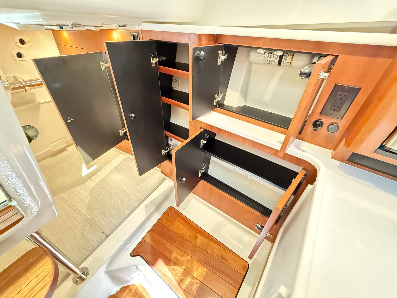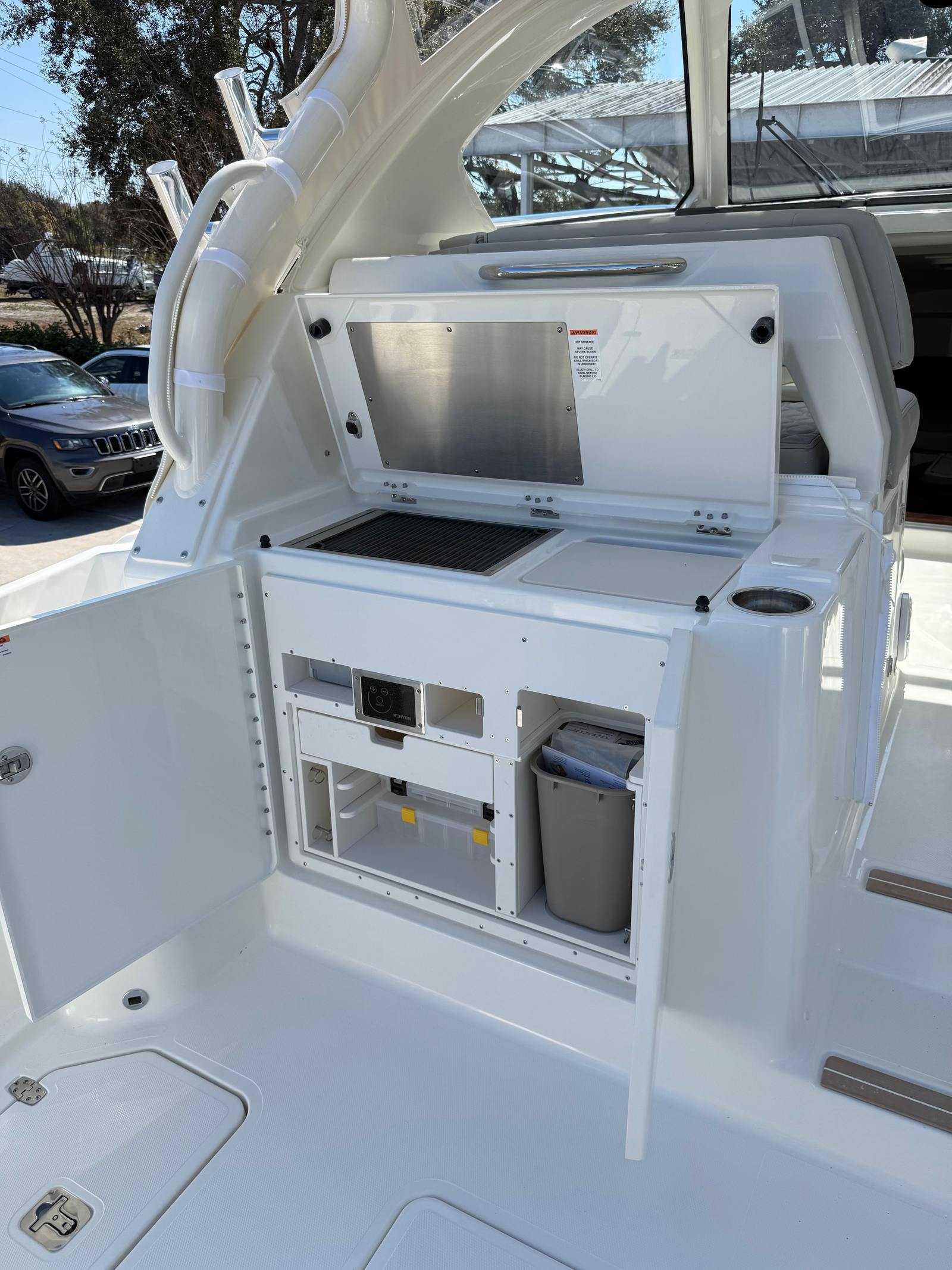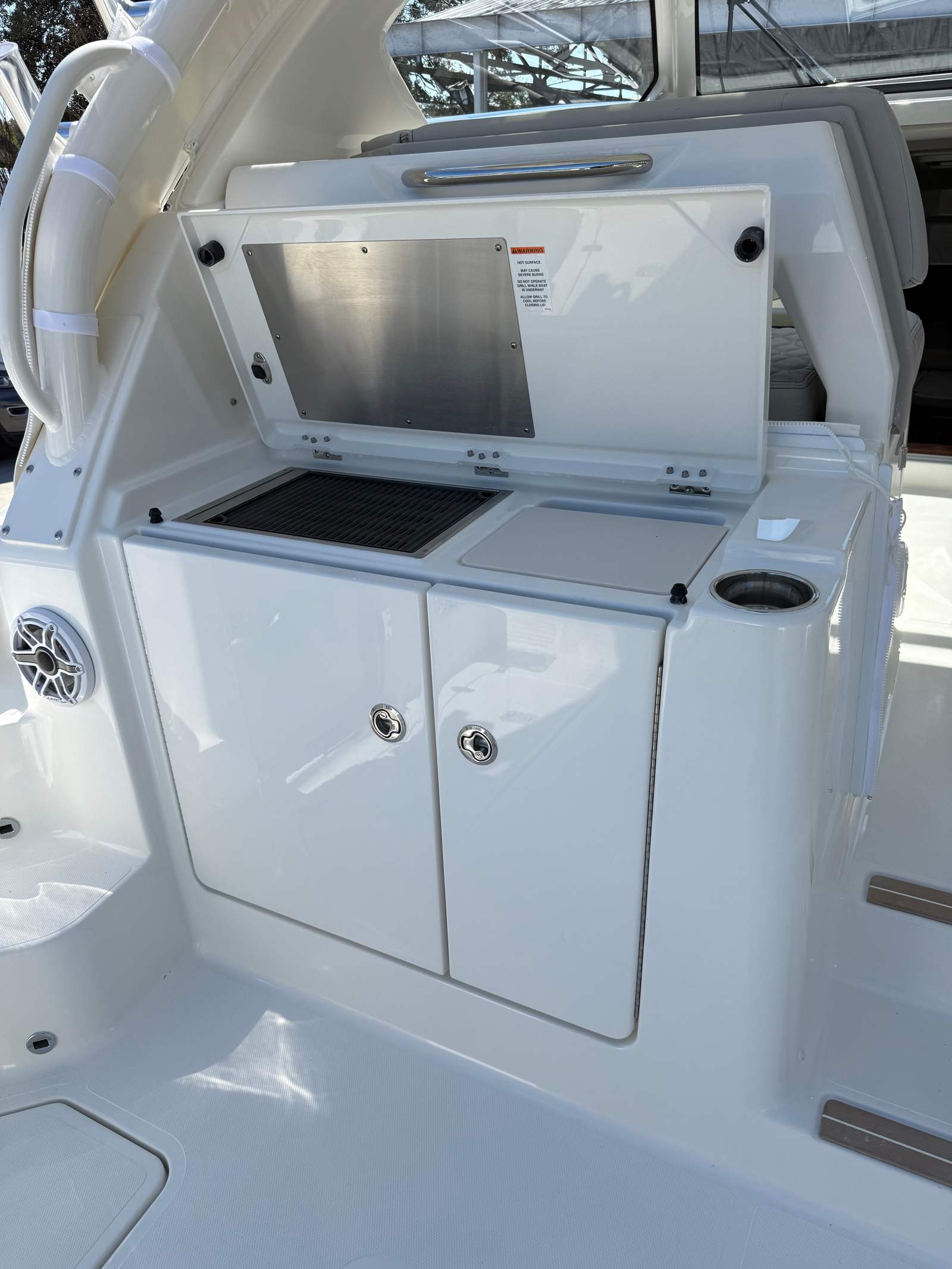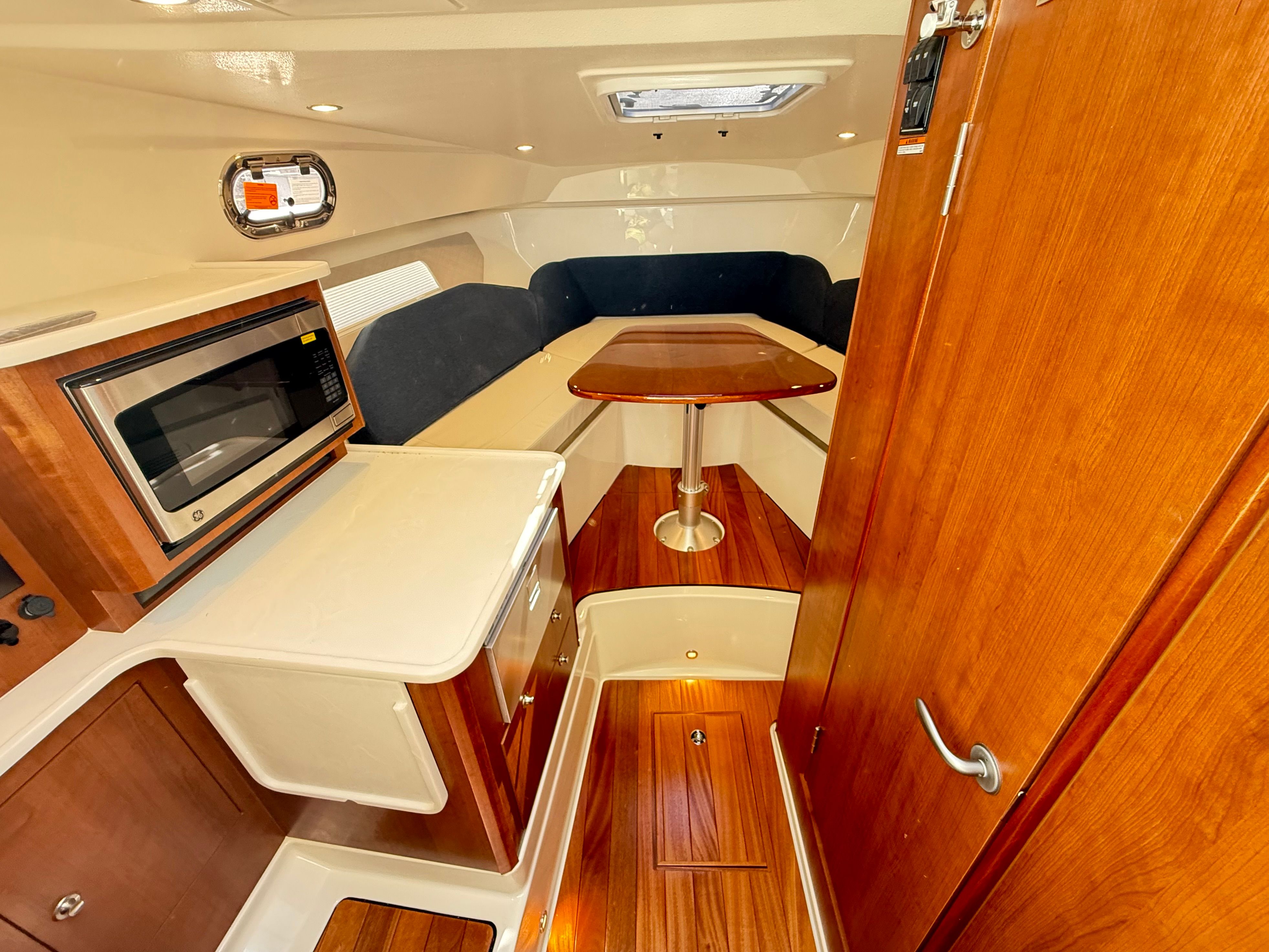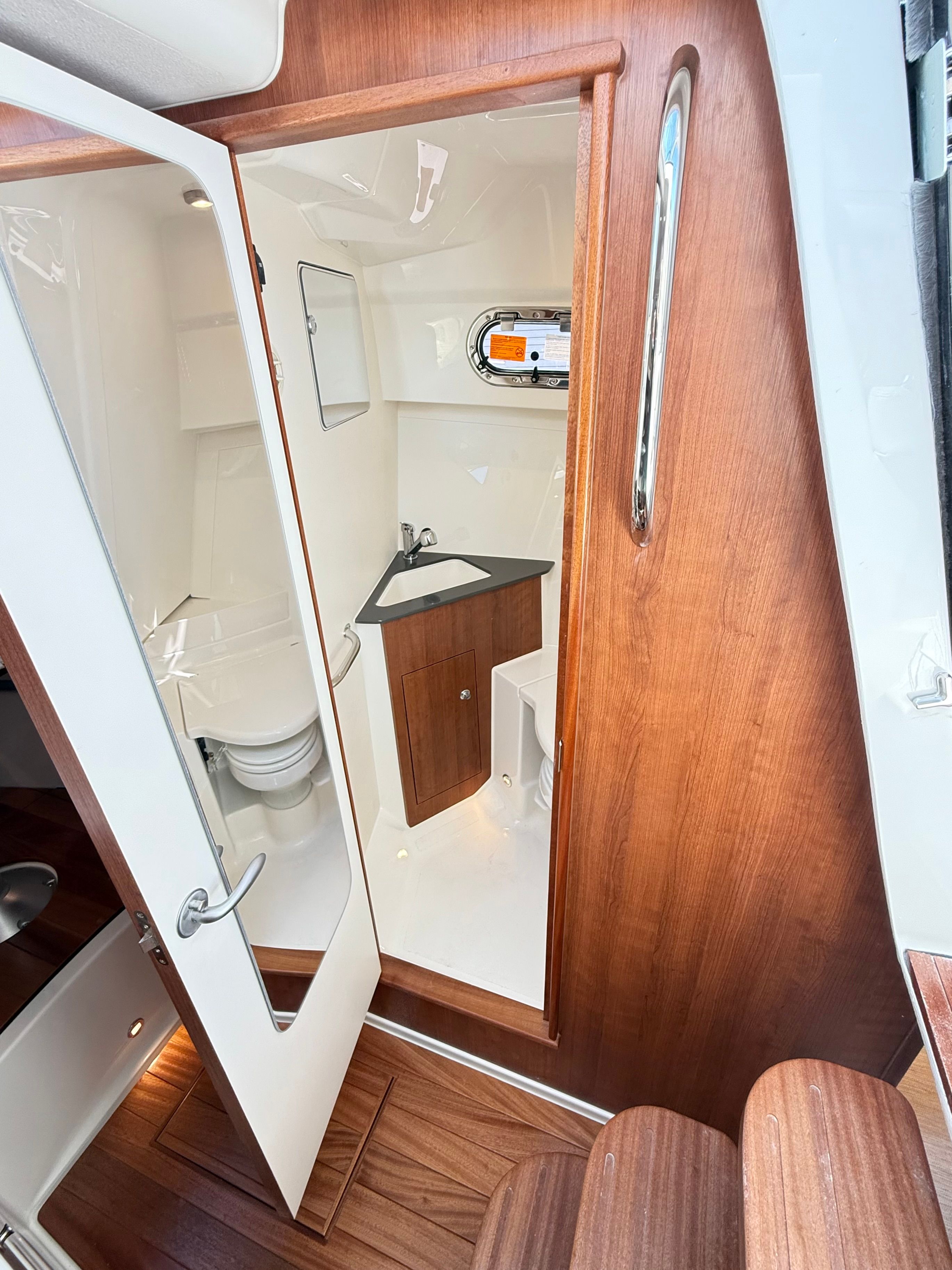 Practicality meets luxury in the Pursuit OS 325. The intuitive Yamaha Joystick Control simplifies docking and maneuvering, reducing stress and making it accessible for boaters of all experience levels. Dedicated storage solutions, such as the bridgedeck teak table compartment, help keep the deck organized and clutter-free, enhancing both safety and convenience.Fuel efficiency is optimized through the advanced Yamaha engines, allowing for longer journeys and more time spent enjoying your favorite destinations. The upgraded canvas and polycarbonate windows provide reliable protection from sun, wind, and rain, ensuring comfort in all conditions. With features like the forward deck sunpad and air-conditioned cabin, the OS 325 is designed to maximize both relaxation and practicality, making ownership a truly rewarding experience.