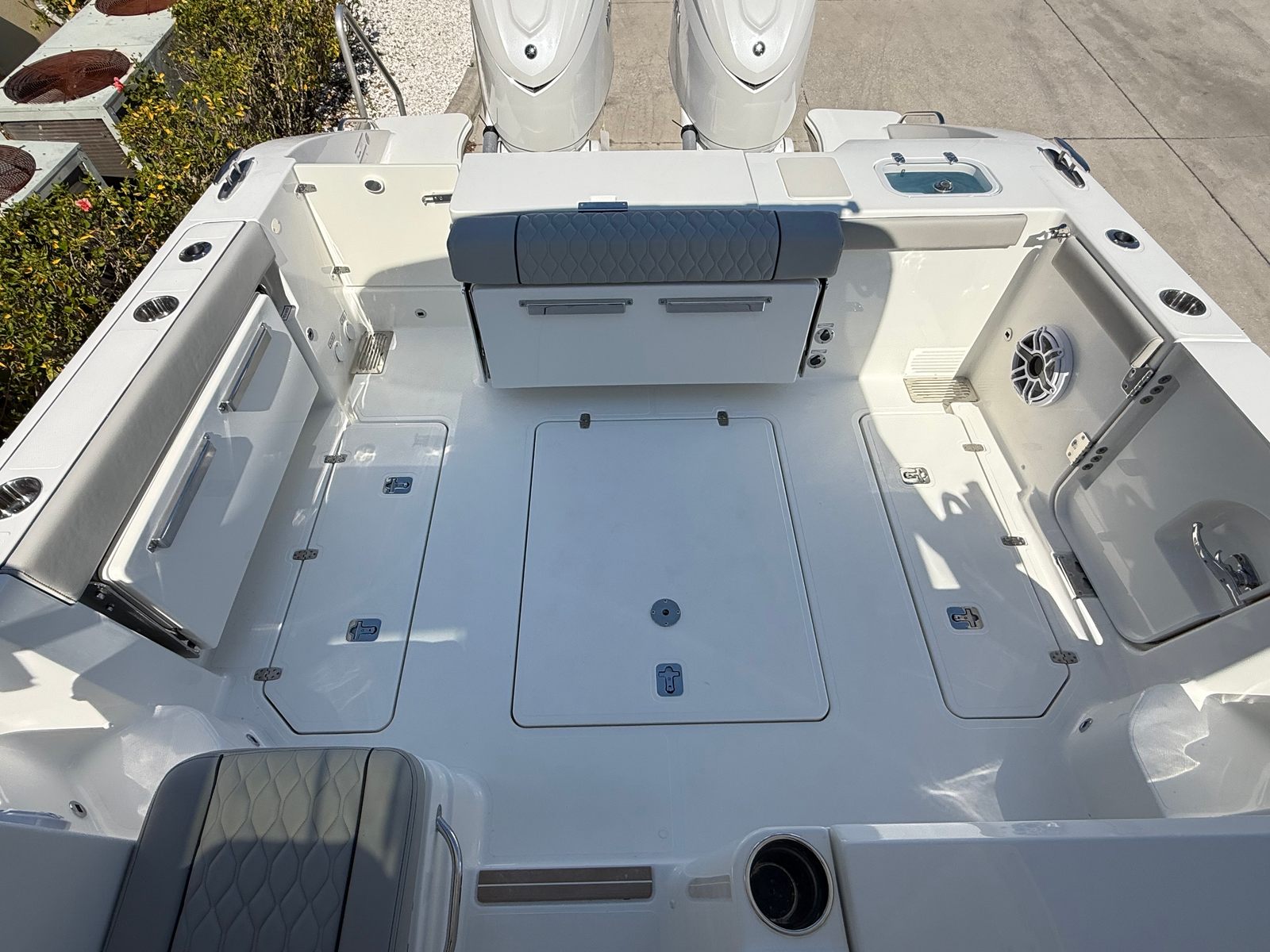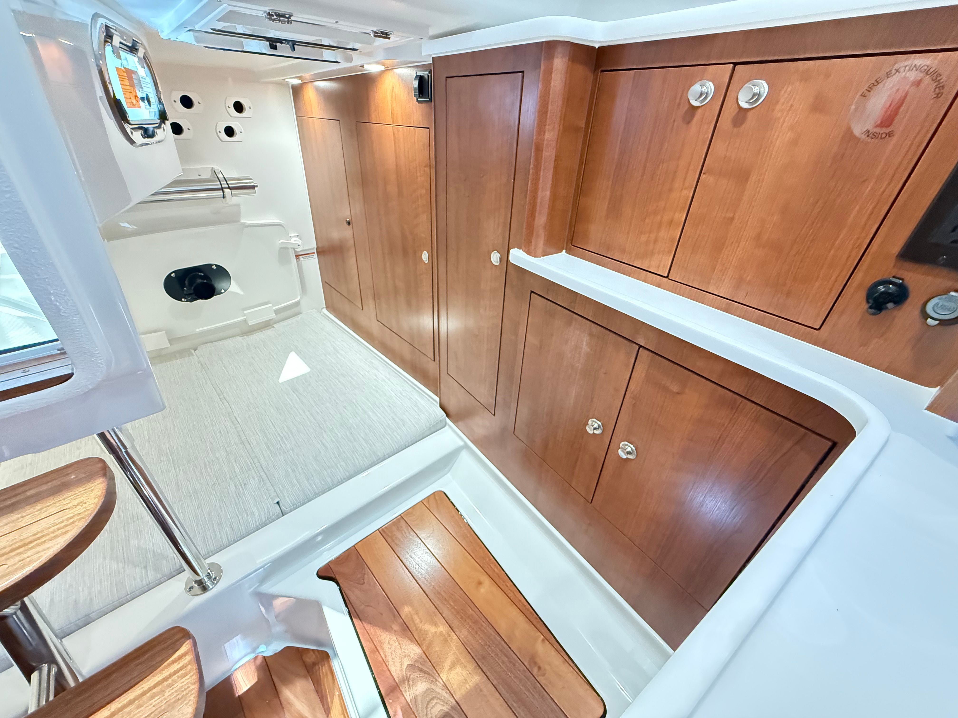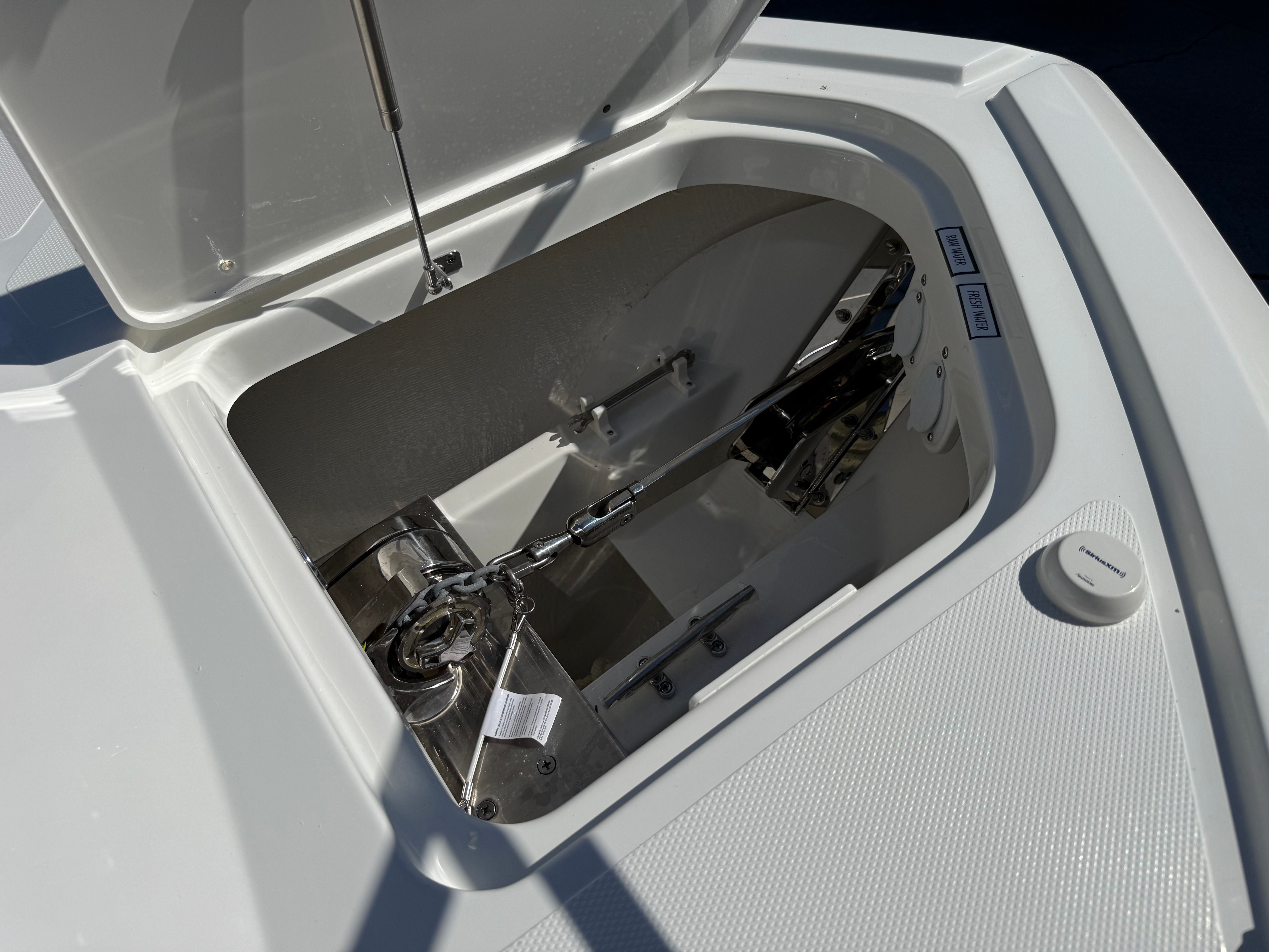 Step aboard the Pursuit OS 325 and discover a world of comfort and convenience. The interior fabric, finished in Tranquil Seas, creates a serene and inviting atmosphere, perfect for unwinding after a day on the water. The standard canvas upgrade features Stamoid material with polycarbonate windows in a crisp white finish, providing excellent protection from the elements while maintaining clear visibility and a stylish look.The bridgedeck teak table, complete with dedicated storage, offers a versatile space for dining, socializing, or simply enjoying the view. For those who love to soak up the sun, the forward deck sunpad with adjustable backrests and a Stamoid cover provides the ultimate relaxation spot. Advanced navigation is made possible with the Garmin Radar Dome GMR Fantom 24 (50 W), ensuring you stay safe and informed wherever your journey takes you.Comfort is paramount on the OS 325, with cabin air conditioning featuring reverse cycle 110v/60Hz (10,000 BTU) to keep the interior cool and comfortable in any weather. Every detail, from the hullside color to the bootstripe, has been carefully selected to enhance both aesthetics and functionality, making this Pursuit boat for sale a true standout in its class.