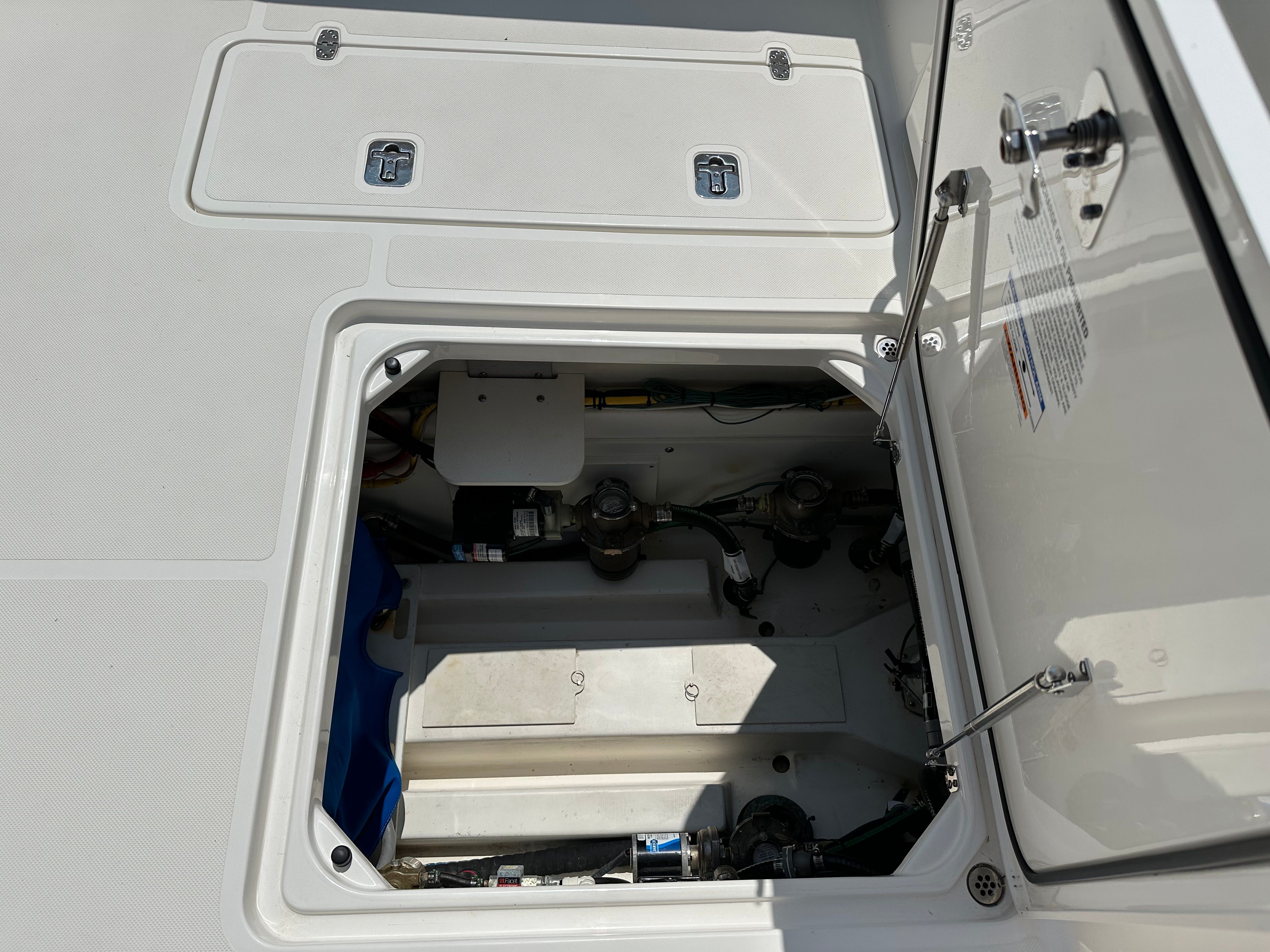 In addition to its luxurious amenities, the Pursuit 355 OS offers practical features that make ownership a pleasure. The cruiser’s design allows for easy docking and maneuverability, even in tight marinas or crowded anchorages. Thoughtful storage solutions throughout the boat provide ample space for gear, water toys, and personal belongings, keeping the deck clutter-free and organized. The efficient triple-engine configuration not only delivers impressive performance but also contributes to fuel efficiency, allowing you to spend more time on the water and less time refueling. Maintenance is straightforward, thanks to accessible engine compartments and high-quality components designed for durability and longevity.