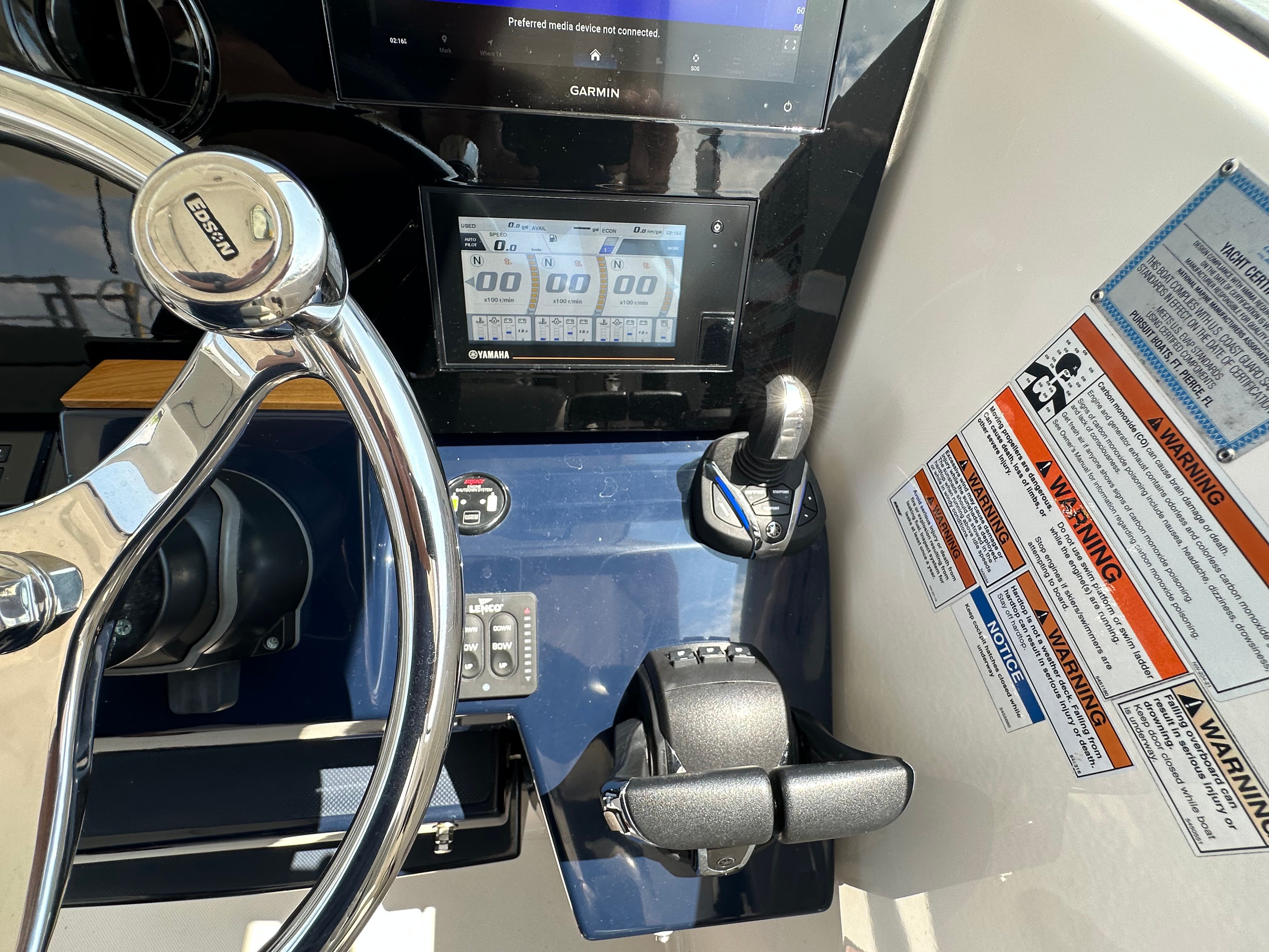 The Pursuit 355 OS is designed with both luxury and functionality in mind. Its spacious layout provides plenty of room for guests, making it ideal for social gatherings and extended trips. The cruiser’s thoughtful design maximizes comfort, with well-appointed seating areas and ample deck space for sunbathing, dining, or simply enjoying the view. The helm station is ergonomically designed for ease of use, offering excellent visibility and intuitive controls for a stress-free boating experience. Every detail of this Pursuit boat for sale reflects the brand’s commitment to quality craftsmanship and innovative design.