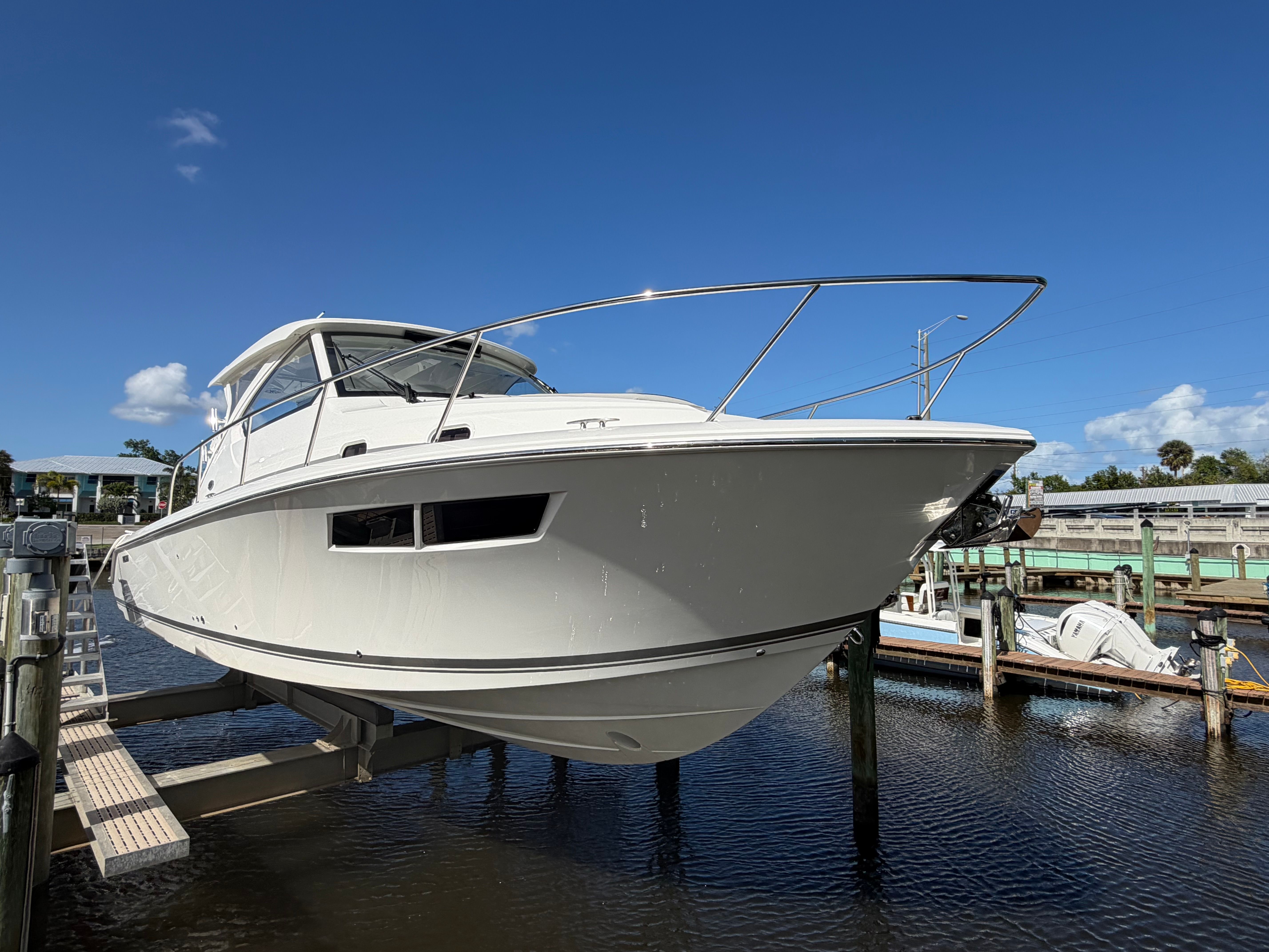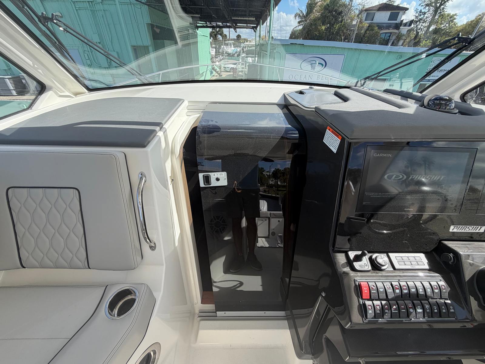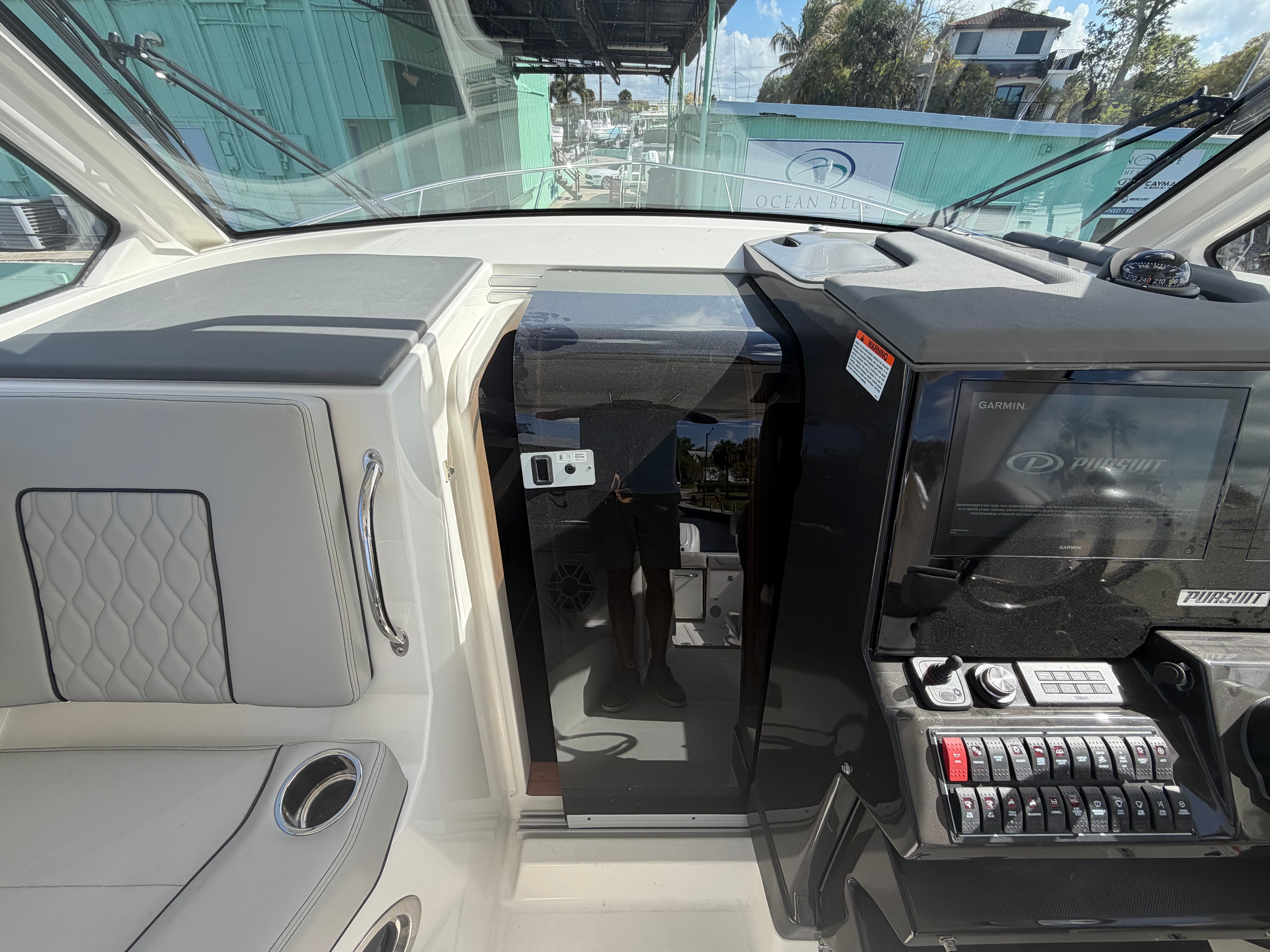 The 2026 Pursuit OS 355 is loaded with special features that set it apart from other cruiser boats for sale. The triple Yamaha F350 engines are a testament to its power and reliability, while the fresh white hull and platinum bootstripe ensure you turn heads at every marina. The carbon helm and footrest offer both style and comfort, creating an ergonomic command center for the captain. Inside, the Coastal Sunrise interior provides a relaxing retreat, perfect for unwinding after a day on the water.For those who value comfort in all seasons, the cockpit air conditioning with reverse cycle heat ensures a pleasant environment, whether you are escaping the summer sun or enjoying a crisp autumn evening. The ACR RCL-100 LED spotlight, complete with remote control at the helm, enhances safety and convenience during nighttime navigation. Underwater LED lights (Sea Blaze X2 Spectrum) add a touch of elegance and excitement, illuminating the water around your boat for evening gatherings or late-night swims.The folding gunwale seat on the starboard side maximizes seating and flexibility in the cockpit, while the forward deck sunpad invites you to soak up the sun in style. Every detail of the OS 355 is designed to enhance your boating experience, from the spacious layout to the premium finishes.