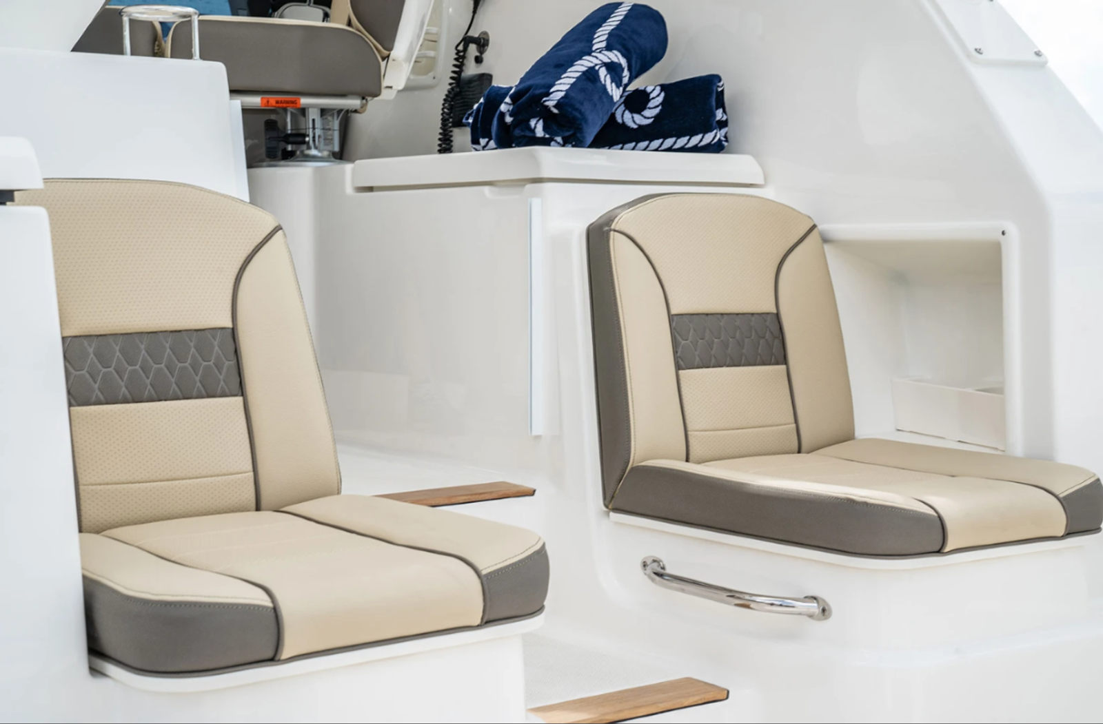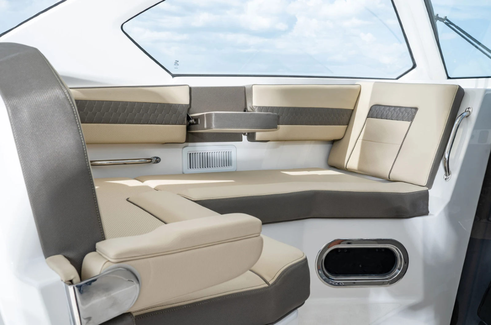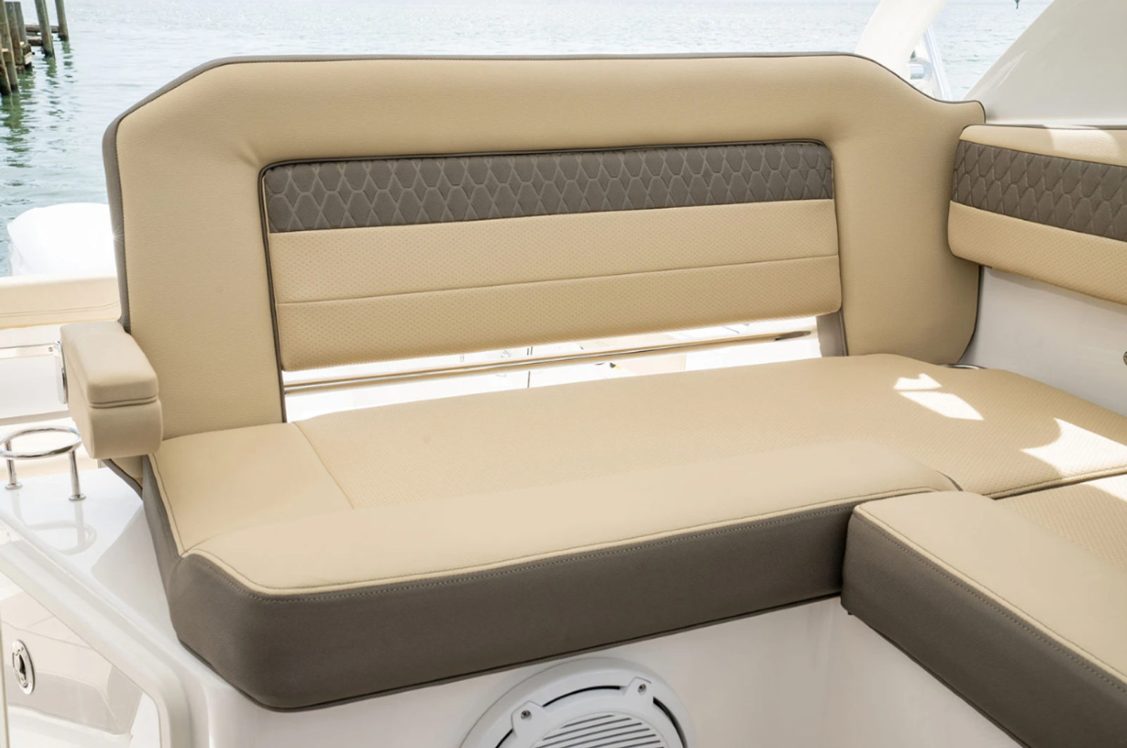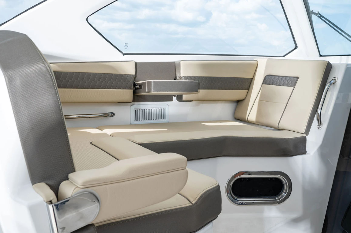 The 2026 Pursuit OS 355 measures an impressive 37.92 feet in length, offering ample space for entertaining, relaxing, and enjoying every moment on the water. As a new cruiser, it boasts a sleek and modern design, highlighted by its Flag Blue hull color and Arctic White bootstripe, which create a sophisticated and timeless profile. The Quartz Gray accents and Tranquil Seas interior fabric further enhance the boat’s inviting atmosphere, making it the ideal setting for both lively gatherings and peaceful escapes.