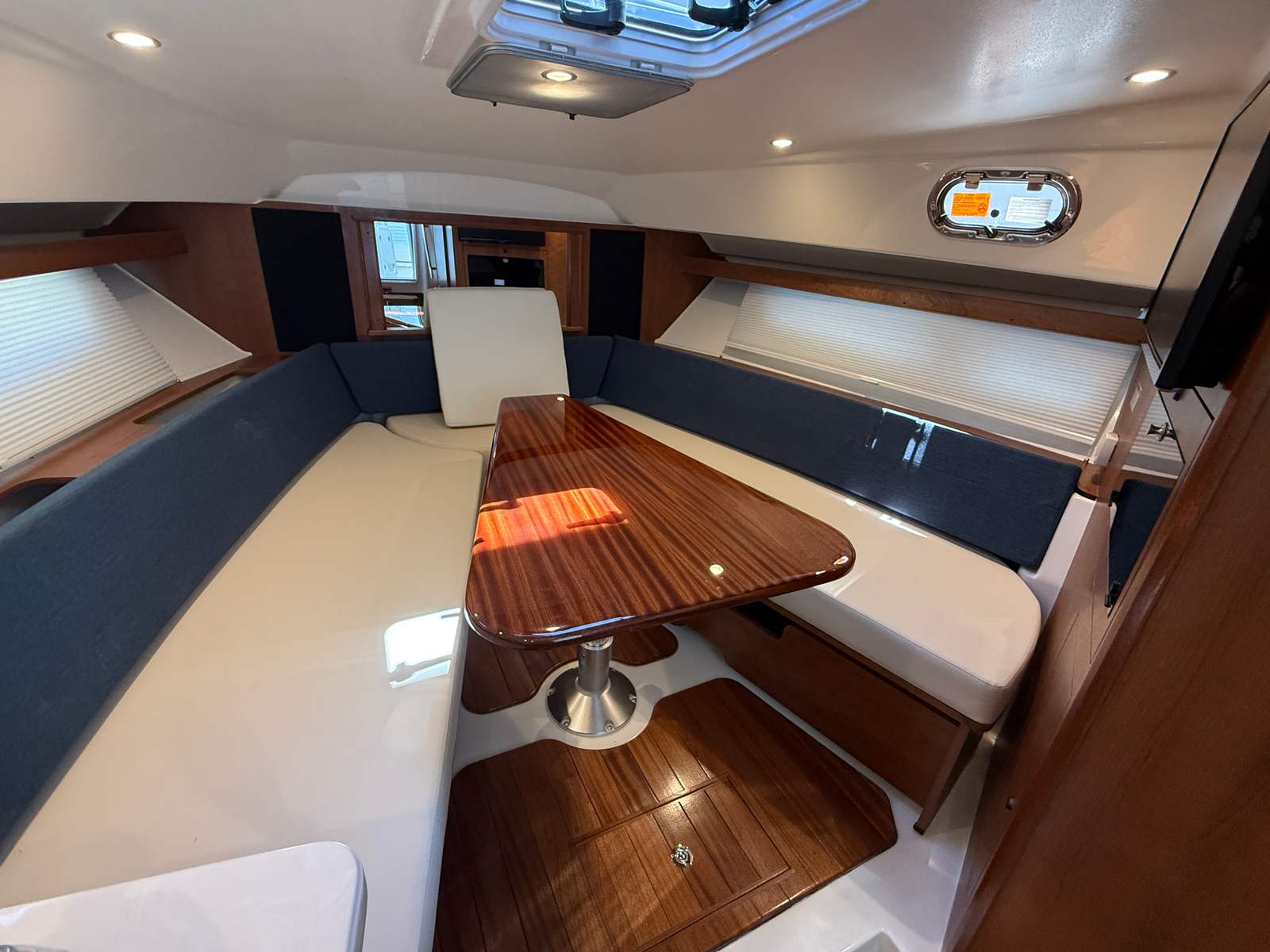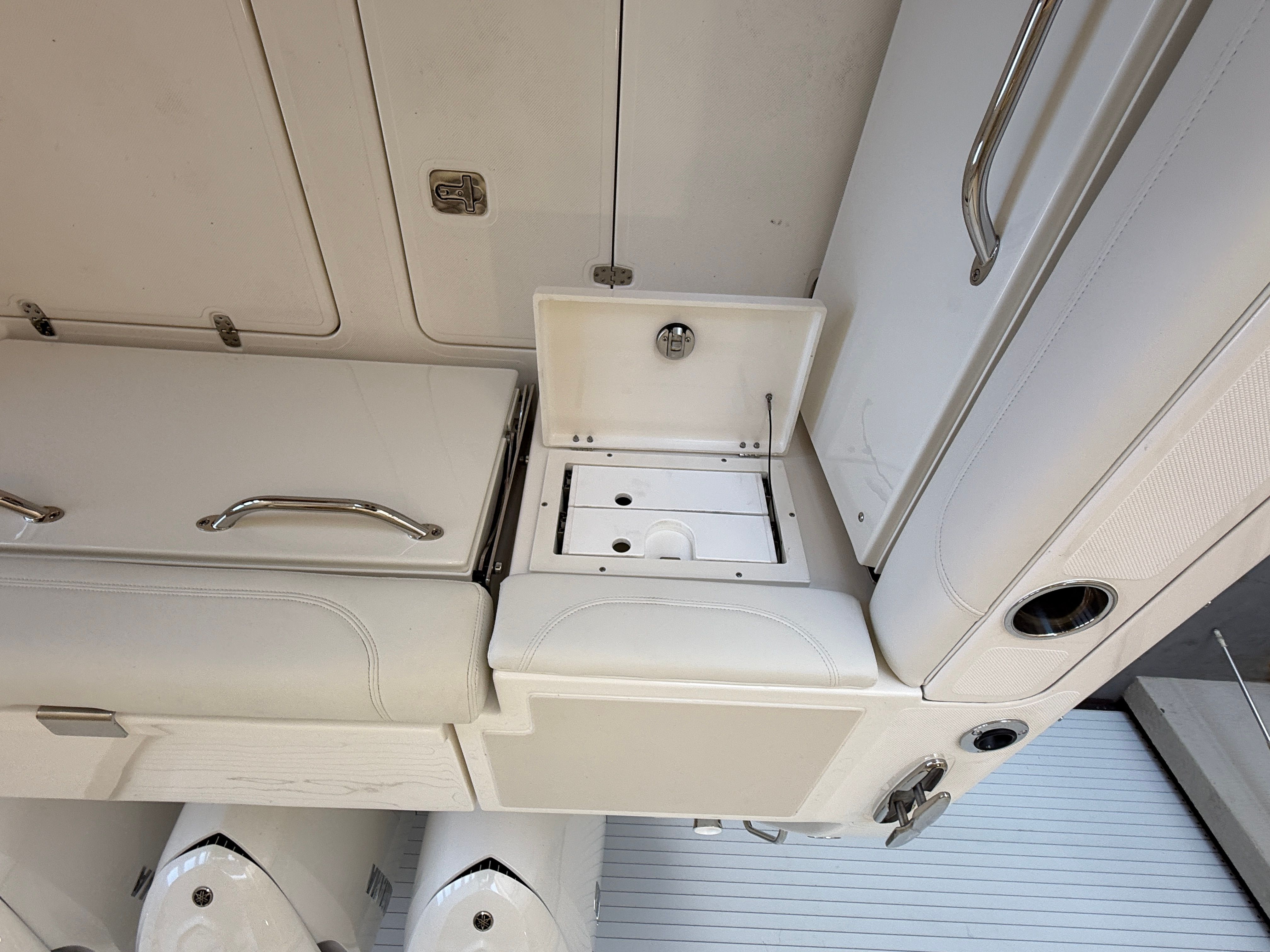 The Pursuit OS 355 is as practical as it is luxurious. Its generous length provides ample storage for gear, water toys, and provisions, making it ideal for extended trips or spontaneous outings. The efficient layout ensures easy movement throughout the boat, while the dedicated storage for the teak table keeps the deck uncluttered and ready for any activity.Docking and maneuvering are simplified by the responsive triple-engine setup, giving you precise control in tight spaces. The fuel-efficient Yamaha engines help you maximize your time on the water without frequent stops for refueling. The durable construction and high-quality materials ensure that your investment remains protected against the elements, reducing maintenance and enhancing long-term value.