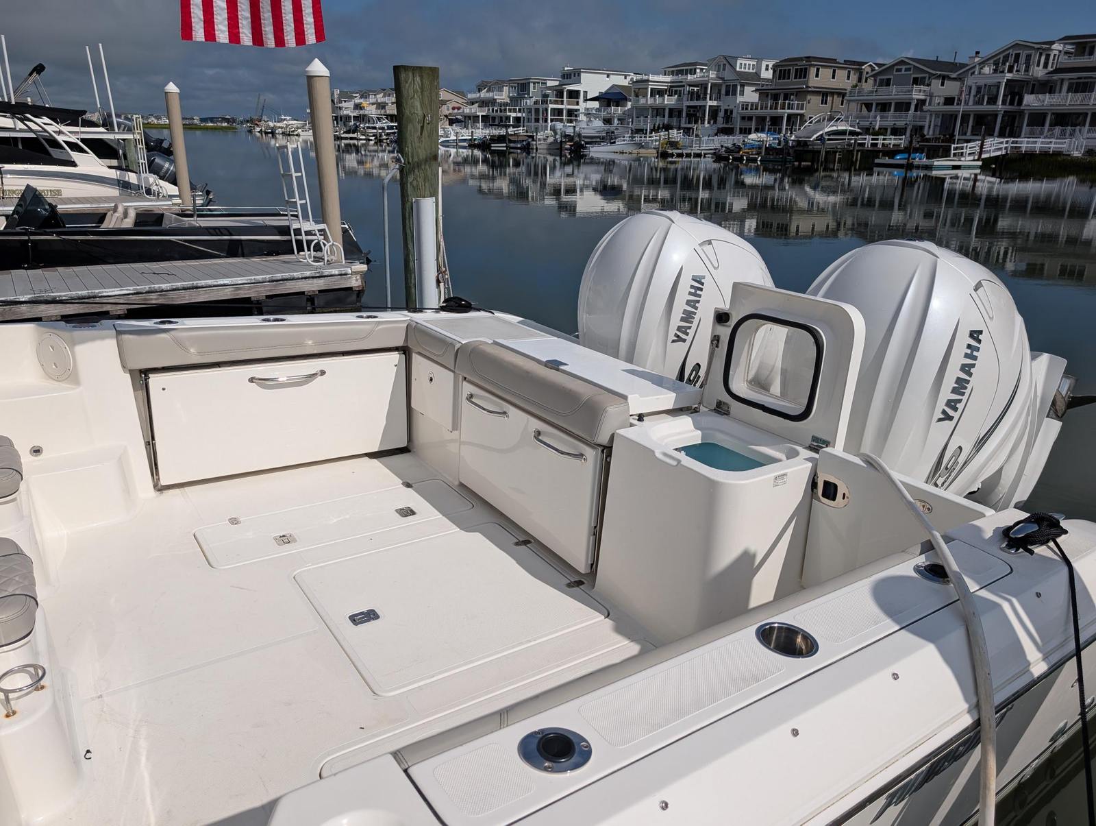 Practicality is at the heart of the Pursuit OS 355’s design. The boat’s ample storage solutions make it easy to keep your gear organized and accessible, whether you’re packing for a day trip or a weekend adventure. The intuitive layout of the cockpit and helm station simplifies docking and maneuvering, making it easier for both seasoned captains and newcomers to handle the boat with confidence.Fuel efficiency is another key advantage, thanks to the advanced engineering of the twin engines. This means you can enjoy longer journeys without worrying about frequent refueling stops. The Pursuit OS 355 is also designed for easy maintenance, allowing you to spend more time enjoying the water and less time on upkeep.