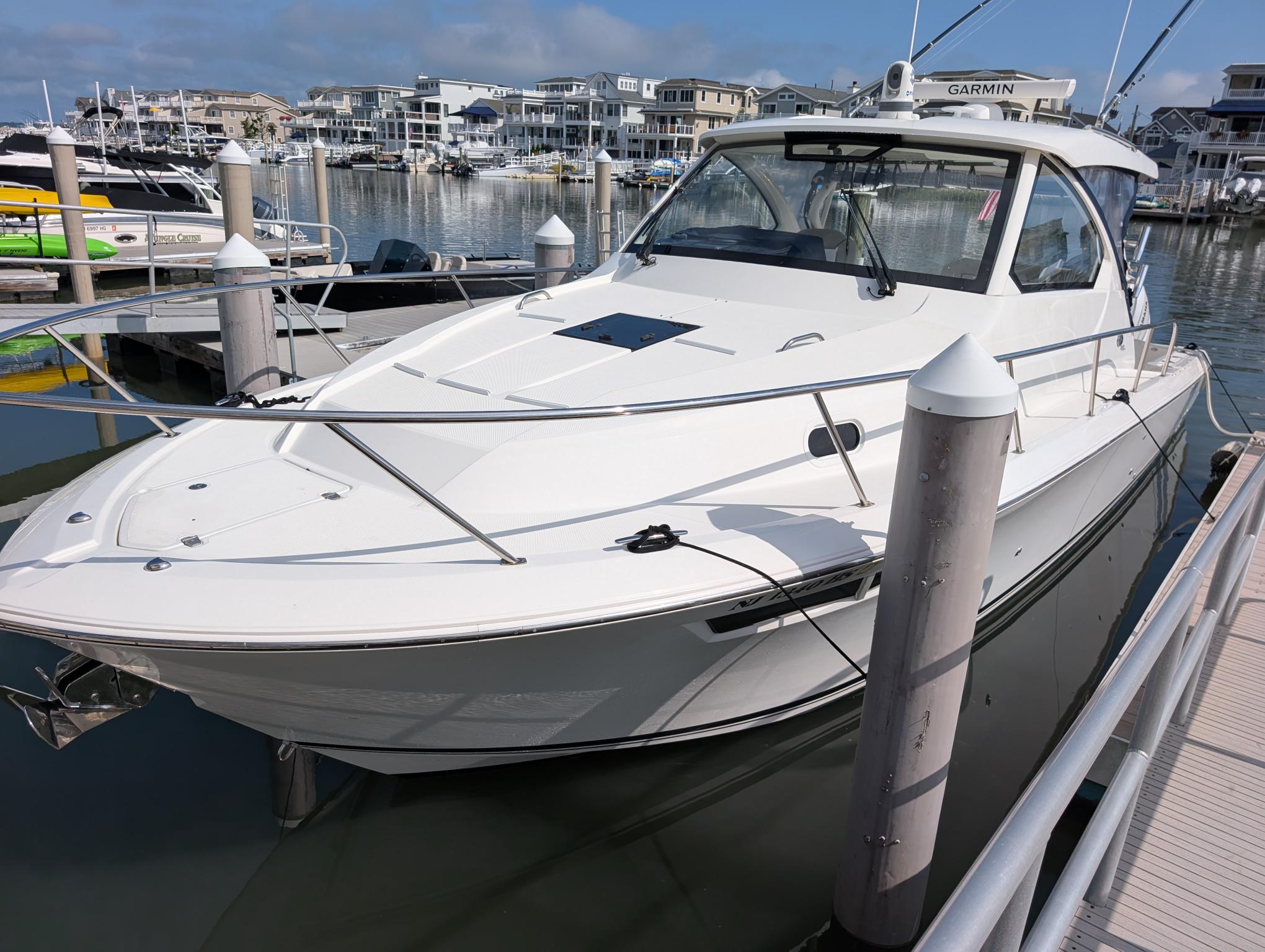 The 2022 Pursuit OS 355 is packed with features that enhance both its functionality and comfort. The spacious cockpit is designed for socializing and relaxation, providing plenty of seating for guests and family members. The helm station is equipped with intuitive controls and clear instrumentation, ensuring that the captain has everything needed for safe and enjoyable navigation. The cabin below offers a welcoming retreat, with ample headroom and well-appointed finishes that create a luxurious atmosphere.This cruiser boat for sale is built with quality materials and attention to detail, ensuring durability and longevity. The deck layout is optimized for both leisure and activity, making it easy to transition from sunbathing to fishing or entertaining. Storage compartments are thoughtfully integrated throughout the boat, providing convenient spaces for gear, equipment, and personal items.