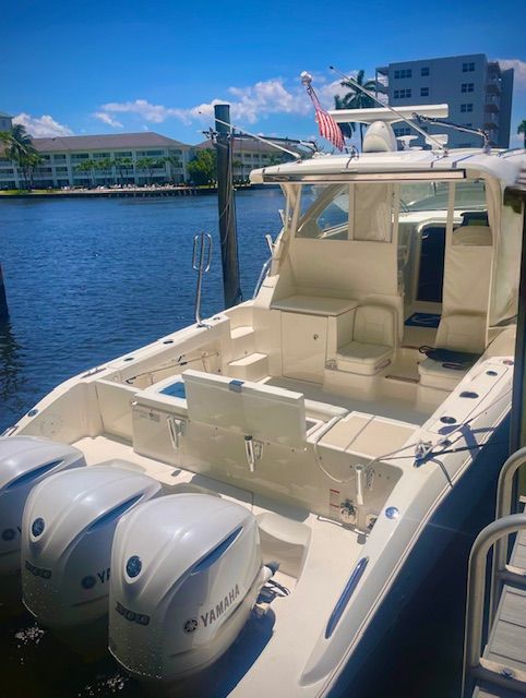 Power and precision define the performance of the Pursuit OS 355. Equipped with three robust engines, this cruiser delivers a combined 900 horsepower, ensuring exhilarating speed and smooth handling in a variety of conditions. With only 430 engine hours, the engines are in excellent condition and promise reliable performance for years to come. Whether you are cruising along the coastline, heading out for a weekend getaway, or simply enjoying a day on the water, the Pursuit OS 355 offers the power and agility you need for a thrilling boating experience.