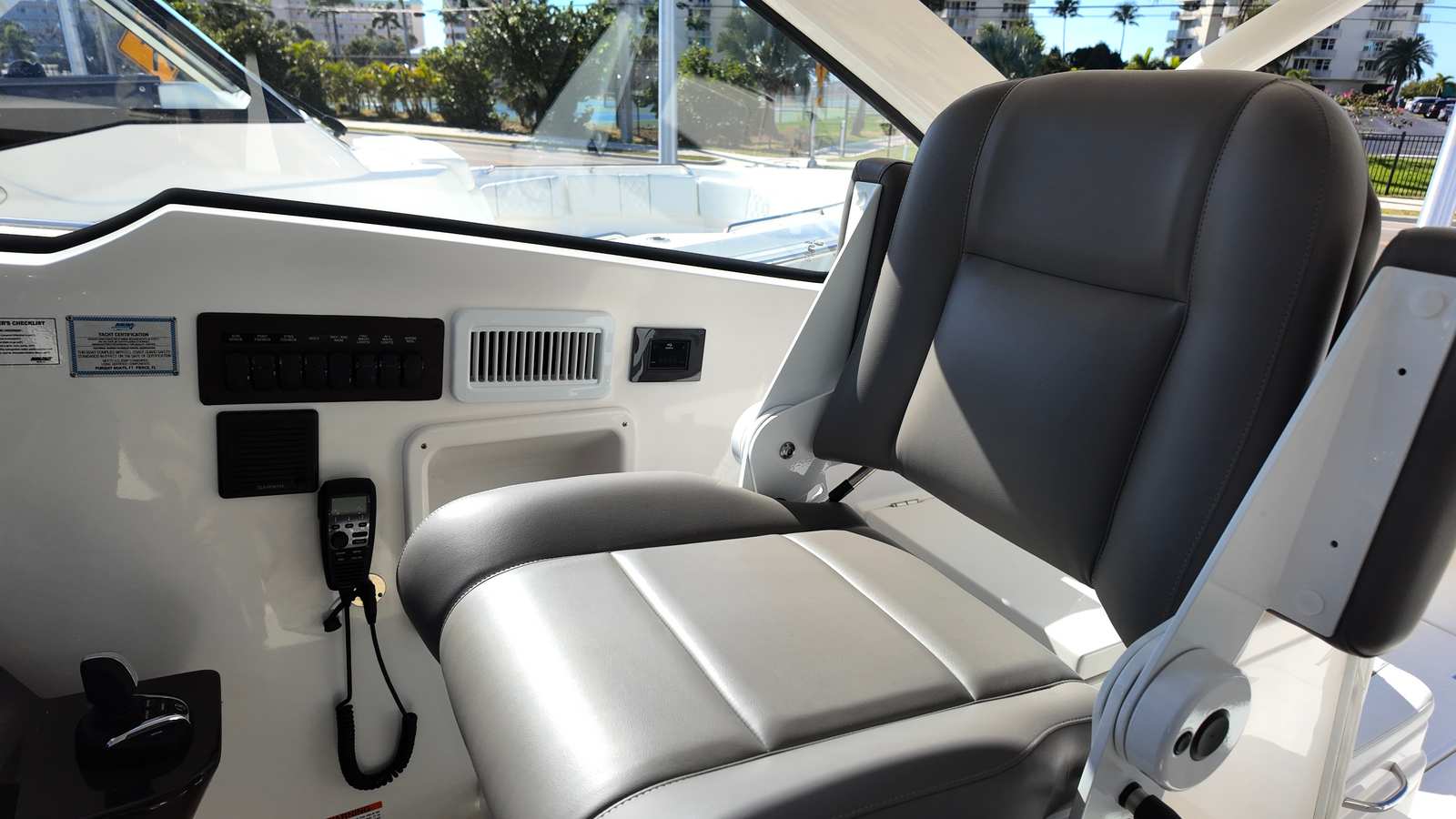 The Pursuit OS 405 Cruiser is packed with state-of-the-art features that set it apart from other cruiser boats for sale. At the helm, you’ll find a comprehensive Garmin electronics suite, including a 72Mile GMR Fantom Radar Array for superior navigation and safety, a GXM 54 SiriusXM Weather Receiver to keep you informed of changing conditions, and a second widescreen 22" display for expanded visibility and control. The Garmin Widescreen 22" Display Package ensures that all critical information is at your fingertips, enhancing your boating experience.For those who appreciate advanced technology, the FLIR Thermal Camera integrates seamlessly with the Garmin system, providing enhanced situational awareness during nighttime or low-visibility conditions. The OS 405 also features all color spectrum underwater lights (four in total), creating a mesmerizing ambiance for evening cruises and dockside gatherings. The upgraded speakers and subwoofer with Sirius capability deliver crystal-clear sound, transforming your boat into a floating entertainment hub.Aesthetically, the Pursuit OS 405 boasts a white exterior cockpit upholstery for a clean, sophisticated look, complemented by the tranquil sea interior that exudes relaxation and elegance. The boot stripe delete adds a modern touch to the vessel’s exterior, while the overall design reflects Pursuit’s attention to detail and commitment to luxury.