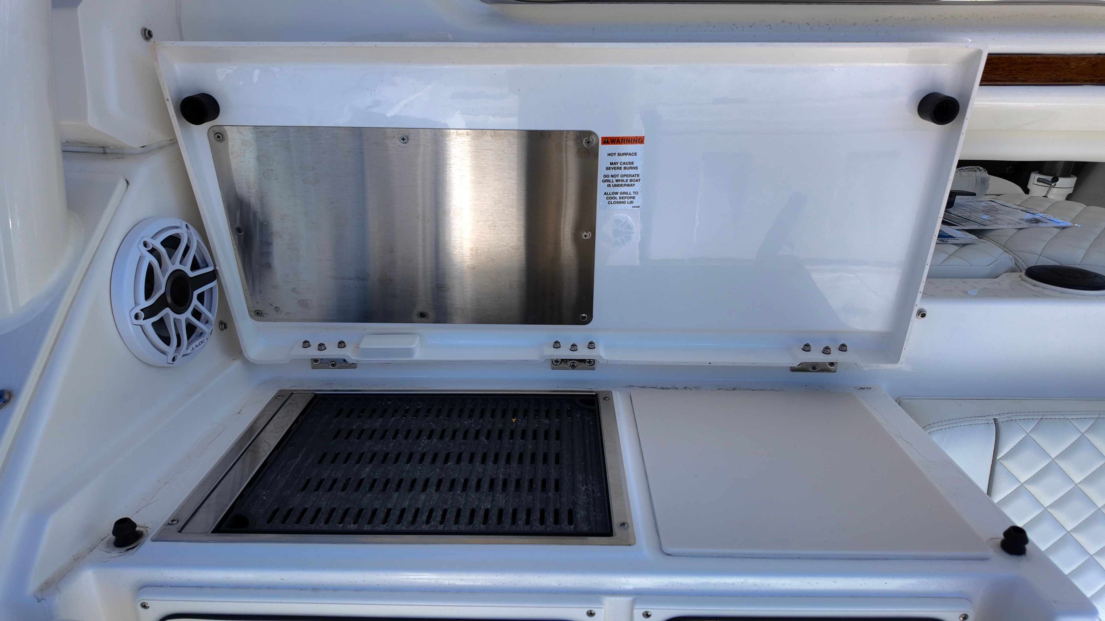 Owning the Pursuit OS 405 Cruiser means embracing a lifestyle of comfort, excitement, and social connection. The spacious deck and thoughtfully arranged seating areas invite you to unwind with family and friends, whether you’re soaking up the sun, enjoying a meal, or simply taking in the scenic views. The advanced entertainment system, including upgraded speakers and subwoofer, ensures that every moment on board is accompanied by your favorite tunes, setting the perfect mood for any occasion.The OS 405’s innovative features, such as the Garmin electronics suite and FLIR Thermal Camera, provide peace of mind and convenience, allowing you to focus on enjoying your time on the water. The underwater lights create a captivating atmosphere for evening cruises, while the tranquil sea interior offers a serene retreat after a day of adventure. With its powerful engines and agile handling, this Pursuit boat for sale delivers both excitement and reliability, making every outing memorable.
