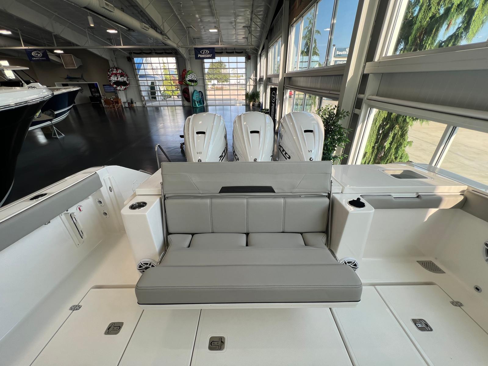 Powering the Pursuit 405 OS are three high-performance engines, delivering a combined 1350 horsepower. This formidable setup ensures exhilarating acceleration, smooth cruising, and reliable handling in a variety of conditions. Whether you are navigating coastal waters or embarking on longer journeys, the triple-engine configuration provides the confidence and power needed for any adventure. The advanced engineering behind the 405 OS guarantees a responsive and agile ride, making every outing both exciting and enjoyable.