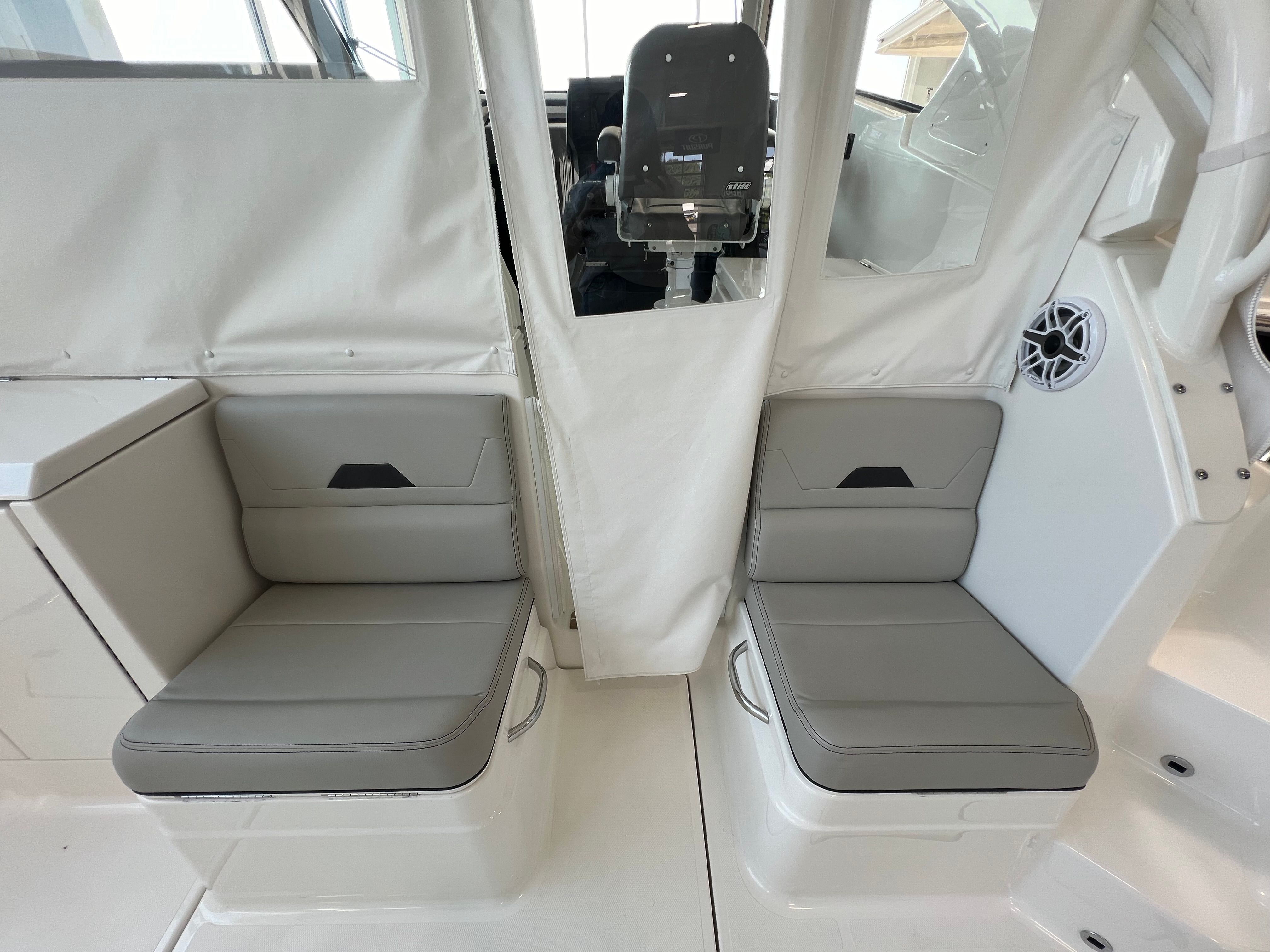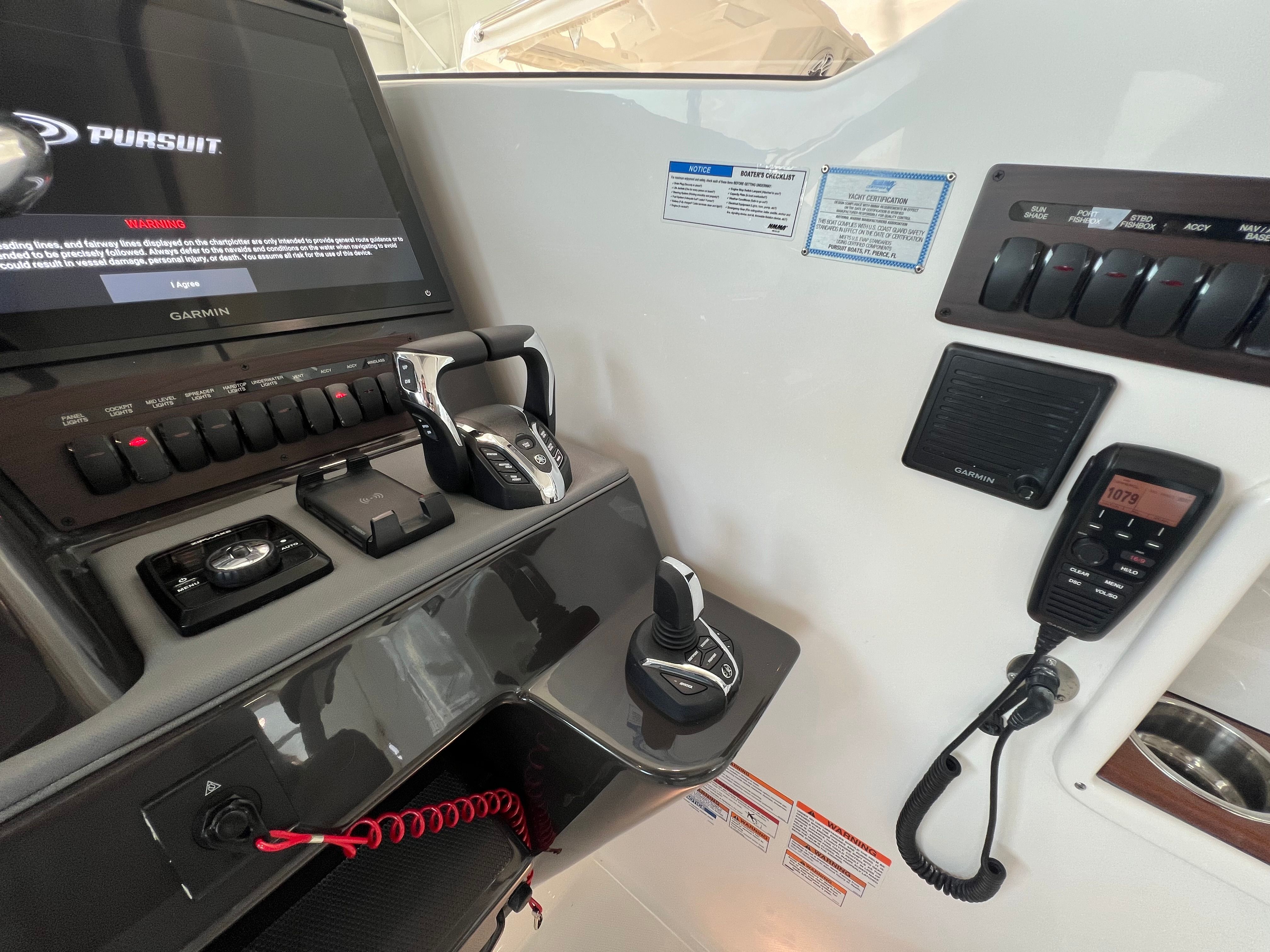 The 2025 Pursuit 405 OS is loaded with premium features designed to enhance your boating experience. Among its standout amenities are bolt-on hardtop rod holders, perfect for anglers seeking convenience and organization. The hull has been meticulously prepared with mask, sand, prep, de-wax, barrier coat epoxy, and antifouling paint, ensuring long-lasting protection and optimal performance in the water. The Driftwood Interior Package - Sport adds a touch of refined elegance to the cabin, creating a warm and inviting atmosphere for all onboard.For those who value comfort and convenience, the electric retractable cockpit sun shade offers adjustable protection from the sun, allowing you to enjoy the outdoors in comfort. The exterior ceramic coating provides an extra layer of durability and shine, keeping your cruiser looking pristine season after season. Navigation is a breeze with the Garmin 2nd Widescreen 22" Display and Garmin Widescreen 22" Display Package, offering state-of-the-art technology for safe and efficient travel. The helm and footrest feature a stylish carbon color, complementing the striking carbon hull color for a cohesive and modern appearance.Additional features include freight, prep, fuel, USCG gear, PDI, and orientation, ensuring that your new Pursuit 405 OS is ready for immediate enjoyment upon delivery.