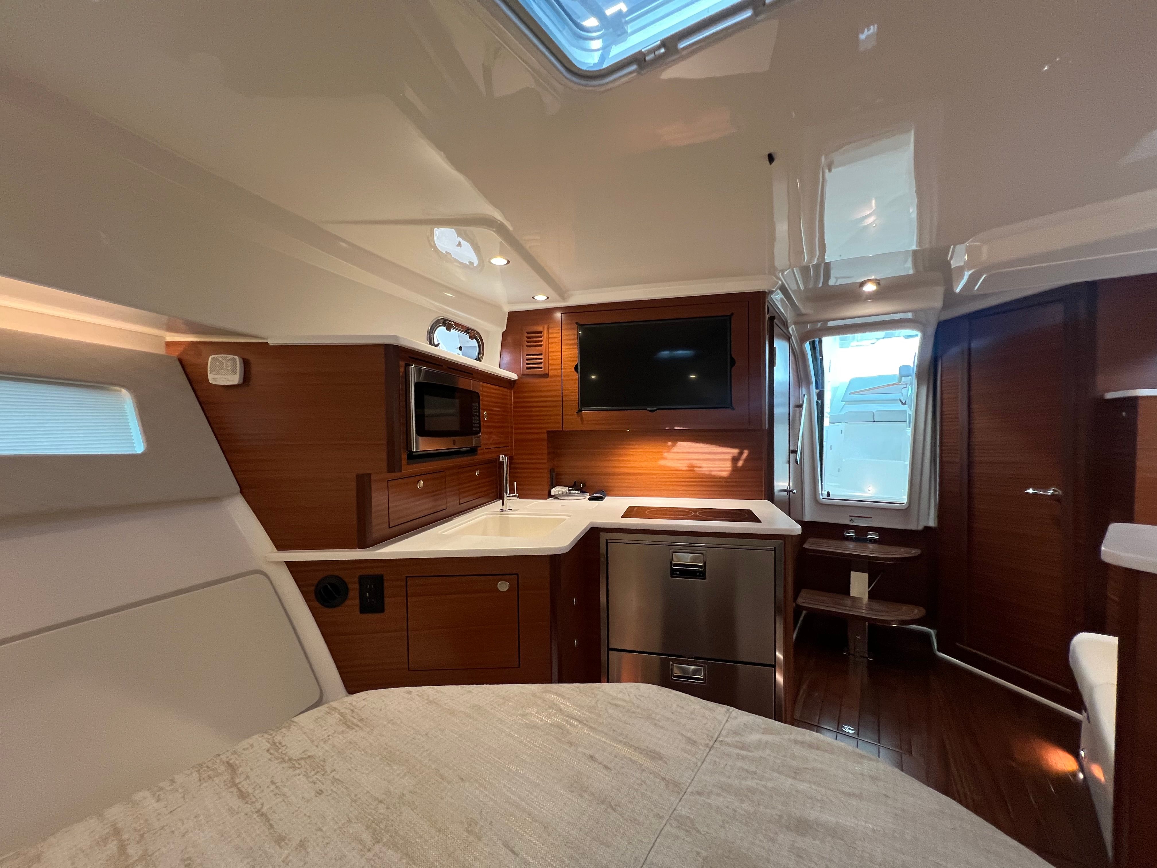 Practicality is at the heart of the Pursuit 405 OS. The boat's generous storage options make it easy to stow gear, supplies, and personal items, keeping the deck clutter-free and organized. The advanced hull preparation and antifouling paint ensure minimal maintenance and maximum longevity, allowing you to spend more time enjoying the water and less time on upkeep. Docking and maneuvering are simplified by the responsive triple-engine setup, making it easy to handle in marinas and tight spaces.Fuel efficiency is another key advantage, with the powerful engines delivering impressive performance without sacrificing economy. The Pursuit 405 OS is designed to make ownership as enjoyable and hassle-free as possible, so you can focus on making memories with family and friends.