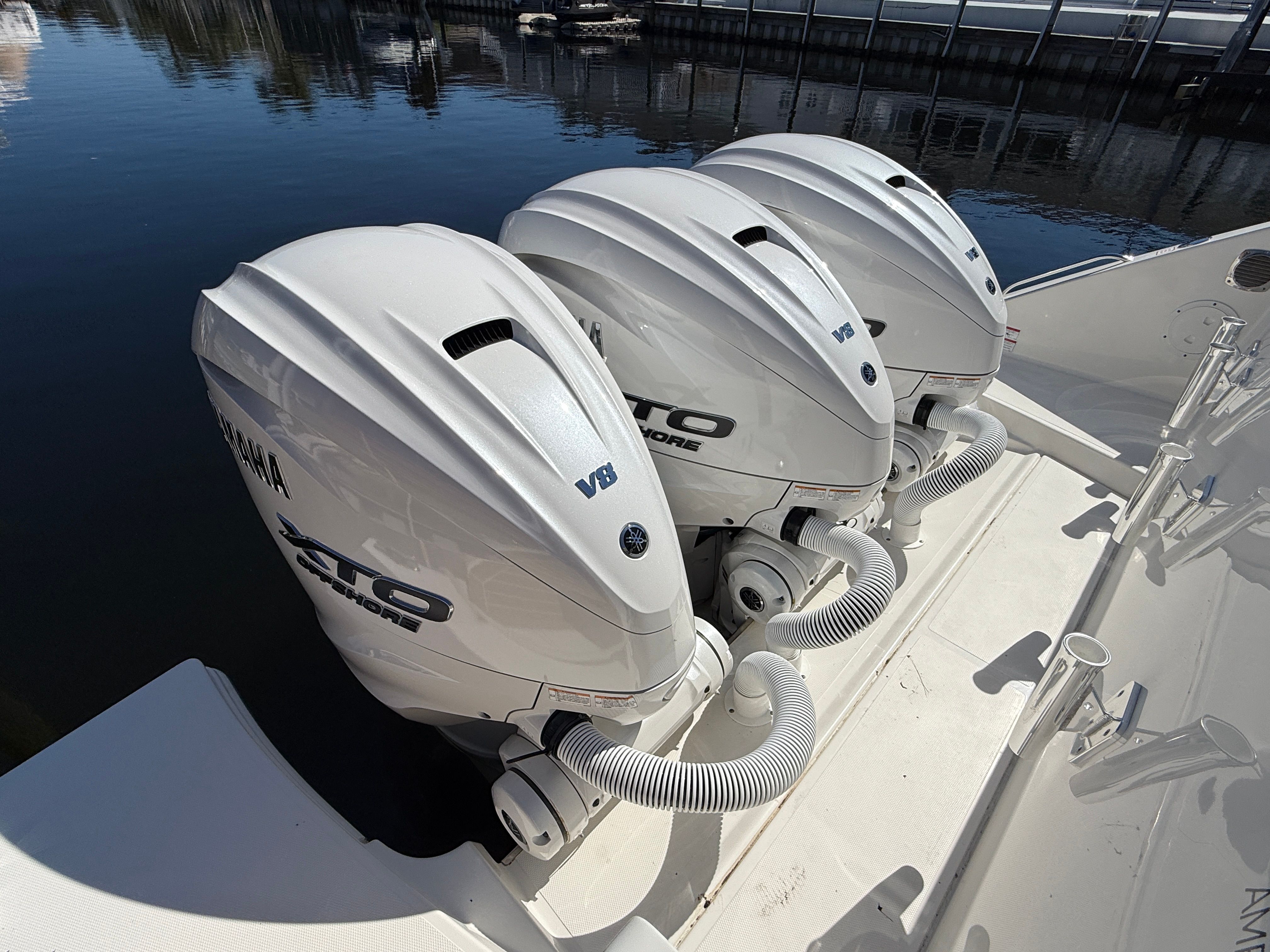 Check out this beautiful 2024 Pursuit 445 OS powered with triple Yamaha 450 XTO's with less than 100 hours of use! This is the flagship model from Pursuit and one heck of a deal! Fresh Bottom Paint Job, Engine Services, Generator and Seakeeper services just performed in January of 2026!!! Yamaha warranty runs all the way through May of 2031!!! Seakeeper6, FLIR, Yamaha Helm Master, Bow Thruster and much much more!!! Don't spend retail on a new boat when you could save hundreds of thousands on one that is barely broken in!! Full list of factory upgrades are listed below.