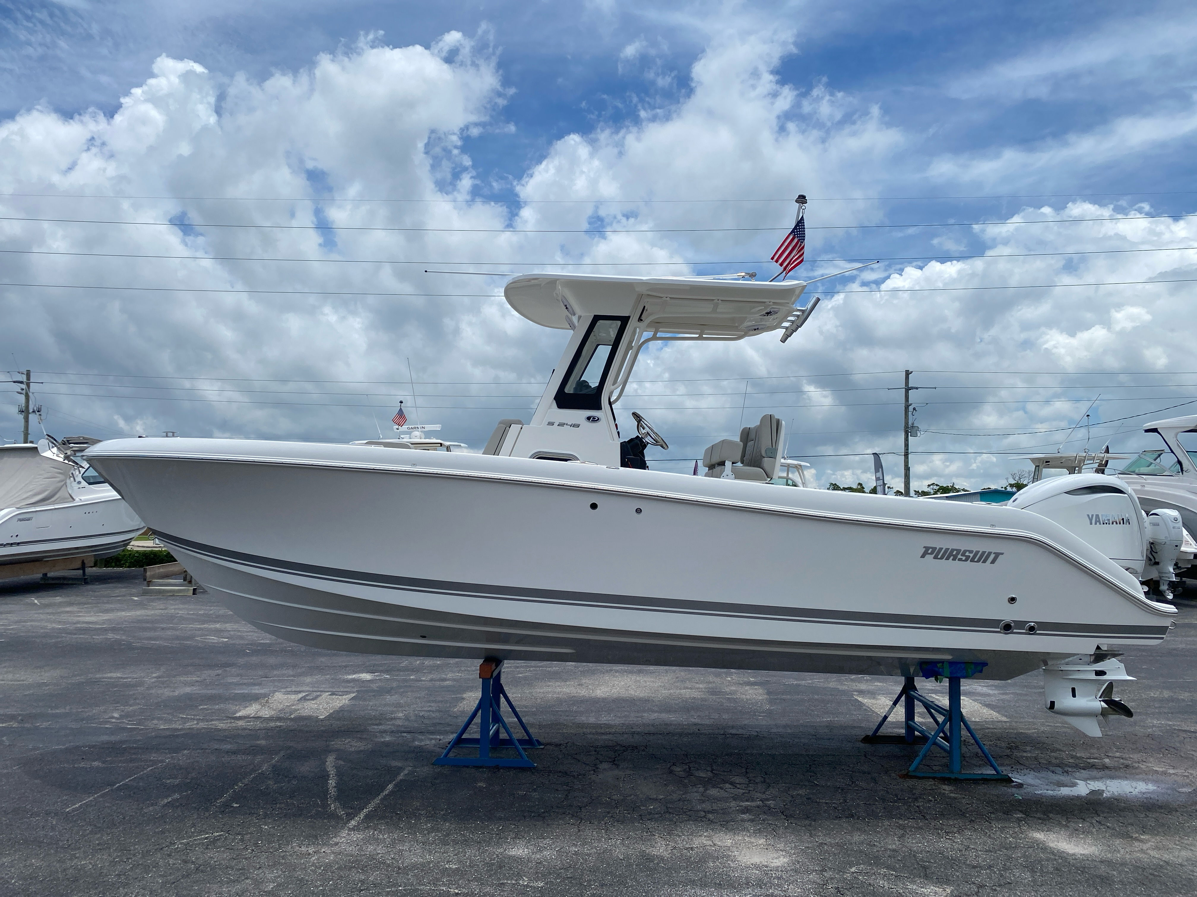 Practicality meets luxury in the Pursuit S 248. The Center Console design provides ample storage for gear, tackle, and personal items, keeping the deck clutter-free and organized. The anchor windlass simplifies docking and anchoring, saving you time and effort when arriving at your favorite destinations. The fresh water system and cockpit shower make it easy to rinse off after swimming or water sports, ensuring you and your guests stay comfortable throughout the day.The efficient Yamaha engine is designed for reliability and fuel economy, allowing you to explore further without frequent stops at the fuel dock. The boat’s manageable size makes it easy to trailer, launch, and dock, whether you are a seasoned captain or a first-time owner. The Pursuit S 248’s thoughtful design ensures that every aspect of ownership is as enjoyable and hassle-free as possible.