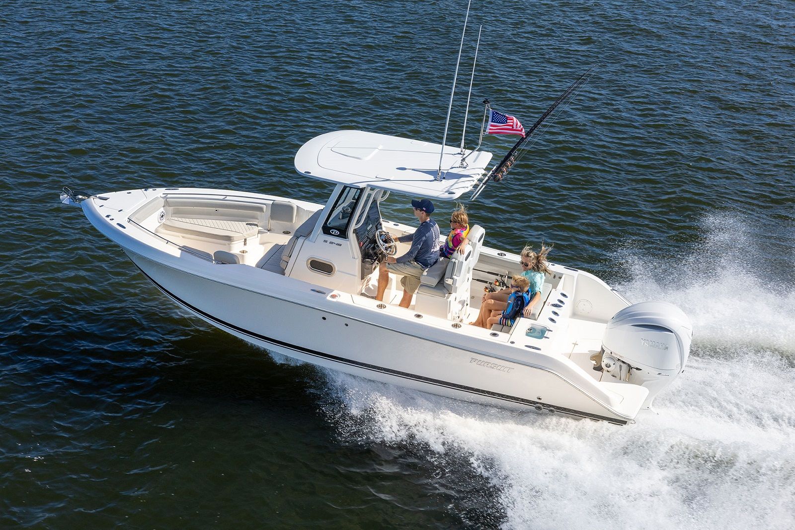 The Pursuit S 248 Center Console is as practical as it is stylish. Its manageable size makes docking and trailering straightforward, while the efficient hull design contributes to smooth handling and fuel economy. The ample storage compartments help keep your essentials organized, from fishing gear to water toys and picnic supplies. The fresh water system and cockpit shower make it easy to clean up after a swim or rinse off equipment, adding convenience to your boating routine.The boat’s versatile seating arrangements and convertible bow area mean you can easily switch between fishing, lounging, and entertaining, making it a true all-purpose vessel. Whether you’re heading out for a solo fishing trip, a family day on the water, or a sunset cruise with friends, the Pursuit S 248 adapts to your needs with ease.