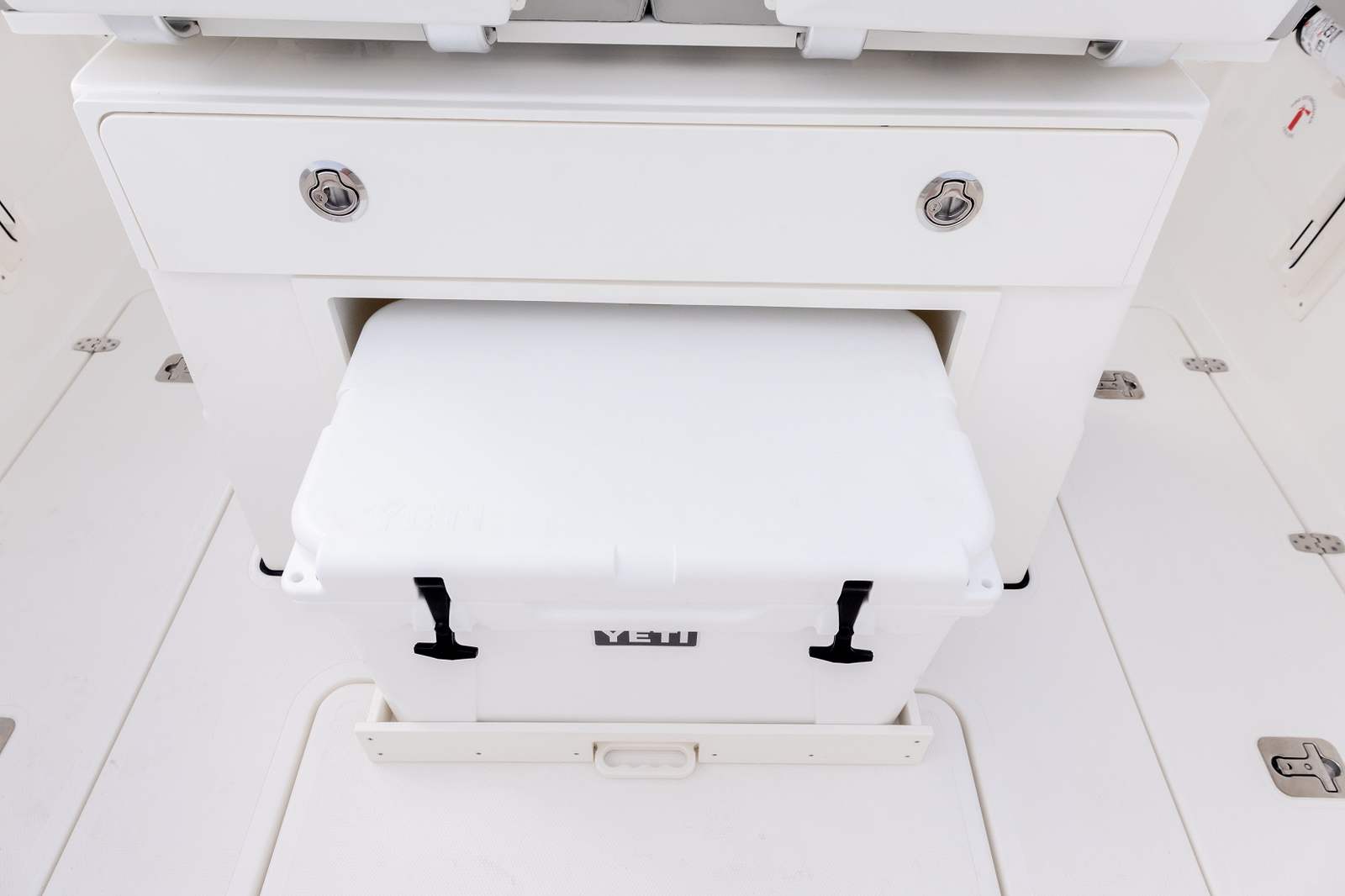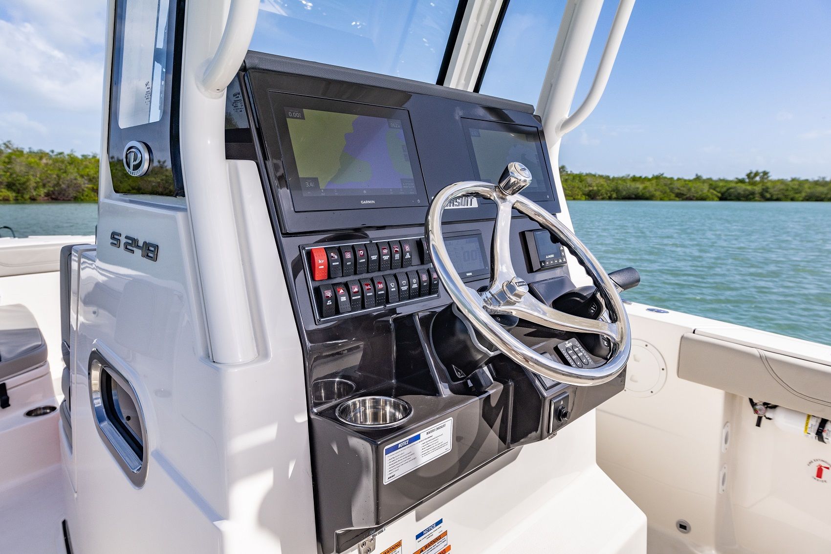 At the heart of the Pursuit S 248 is the powerful Yamaha Digital F350 V6 Offshore engine, finished in a pearlescent white that perfectly complements the boat’s overall look. With an impressive 350 horsepower at your command, this center console boat is engineered for exhilarating performance, smooth acceleration, and reliable offshore capability. The integrated Digital Electric Steering (DES) and Helm Master EX Digital Electronic Control (DEC) system provide precise handling and effortless control, making navigation a breeze whether you’re cruising at high speeds or maneuvering in tight spaces. The CL 5 Display offers clear, intuitive access to vital engine data and navigation information, enhancing your confidence and safety on every journey.