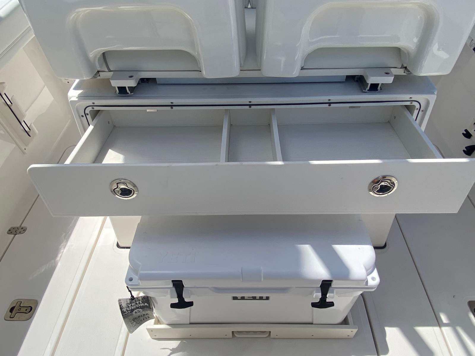 At the heart of the Pursuit S 248 is a powerful single engine, delivering an impressive 300 horsepower. This robust engine ensures that you have all the power you need for quick acceleration, smooth cruising, and efficient handling in a variety of water conditions. Whether you are navigating coastal waters, exploring inland lakes, or heading offshore for a day of fishing, the Pursuit S 248’s performance capabilities make every journey enjoyable and worry-free. The combination of advanced hull design and responsive steering allows for precise maneuvering, giving you confidence at the helm.