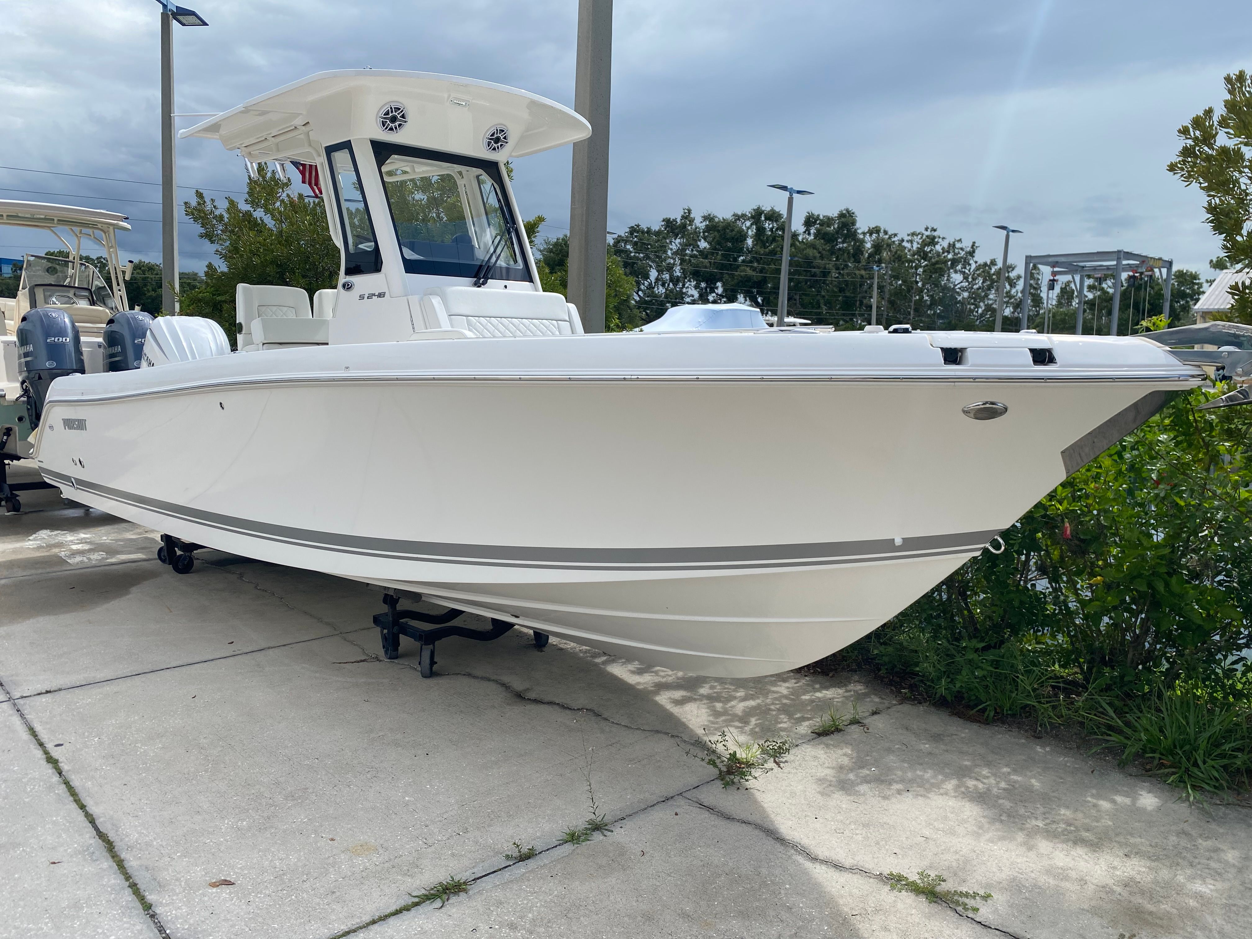 This center console boat is as practical as it is stylish. The fresh water system with an 18-gallon tank is perfect for rinsing off after a swim or keeping everyone refreshed during long trips. The stowable sunshade and hardtop make it easy to adapt to changing weather conditions, while the advanced navigation system ensures you always know where you are and where you are headed.Docking and storage are made simple thanks to the Pursuit S 248’s manageable size and thoughtful design. The single-engine setup not only provides powerful performance but also contributes to fuel efficiency, helping you make the most of every outing without breaking the bank. The durable construction and protective features, such as the instrumentation cover, ensure your investment stays in top condition for years to come.