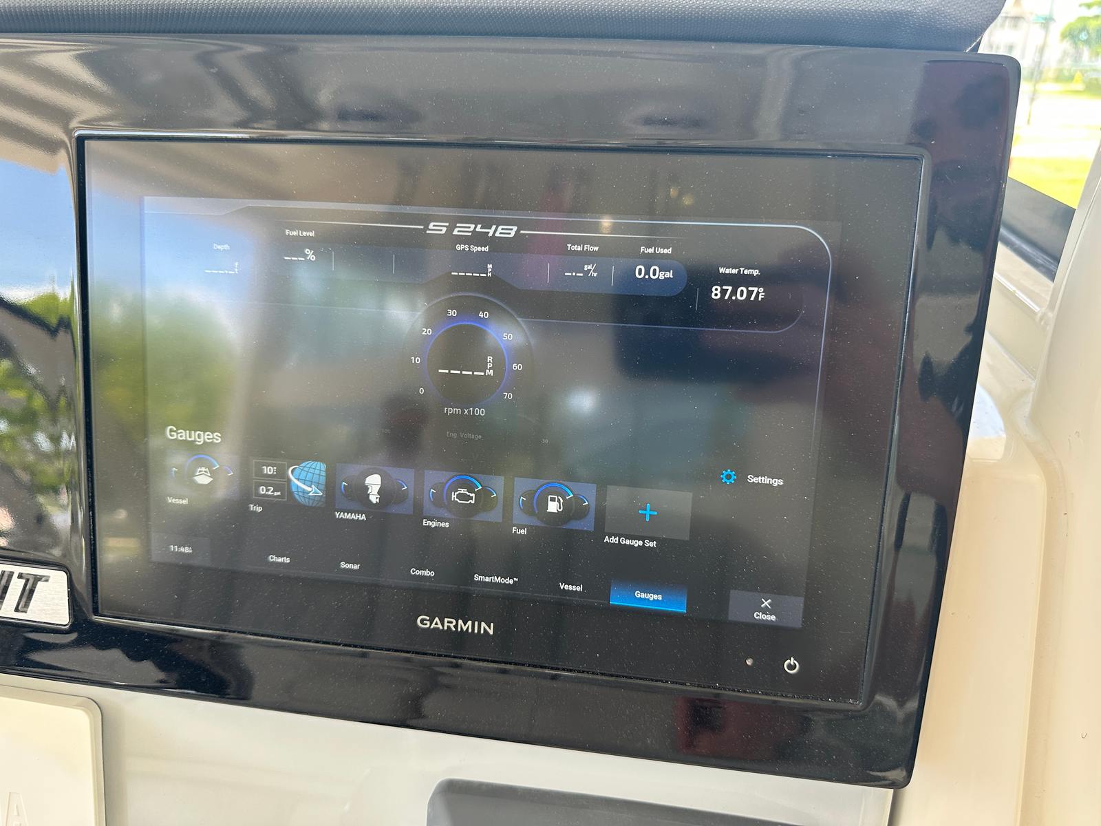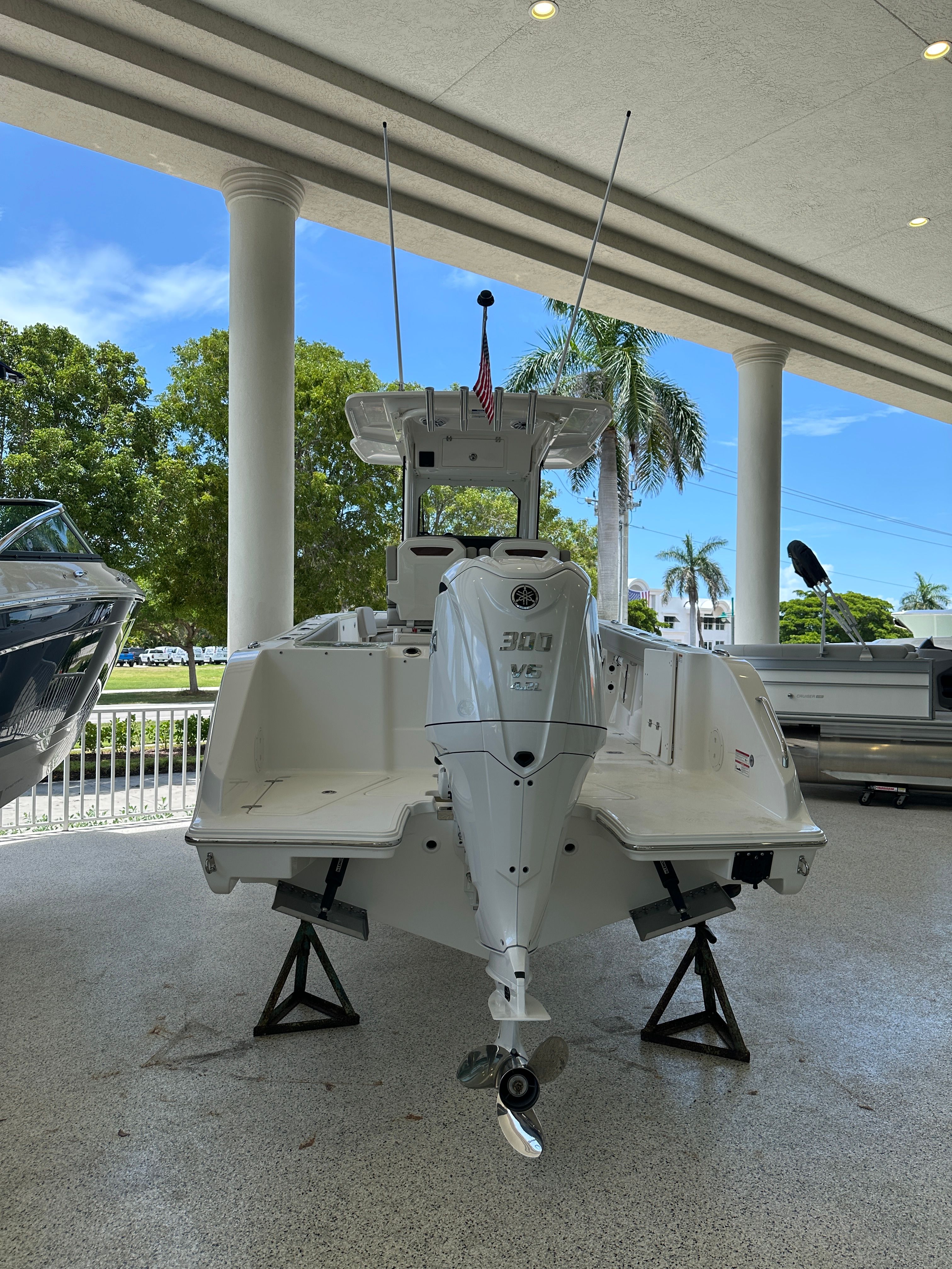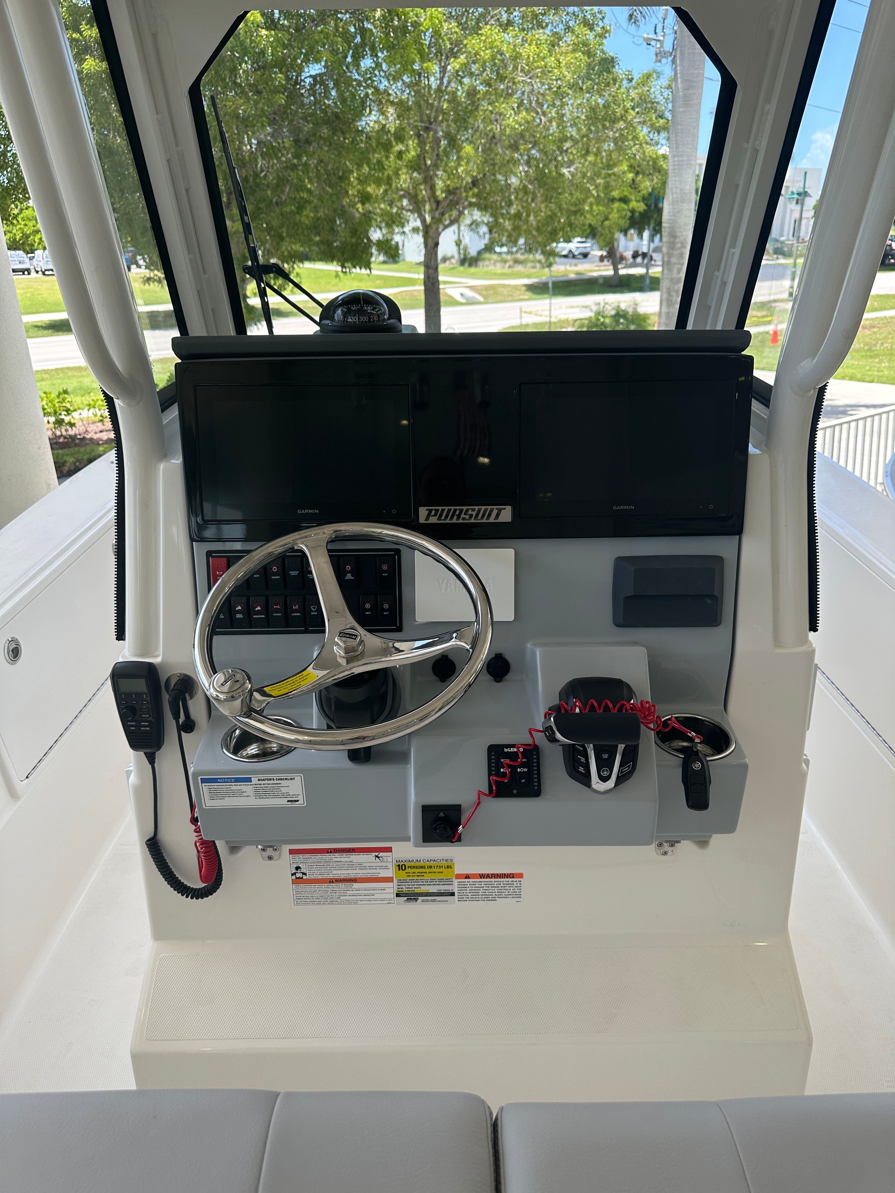 At the heart of the Pursuit S 248 is a powerful Yamaha F300 engine, delivering an impressive 300 horsepower. This single-engine setup is renowned for its reliability, smooth operation, and fuel efficiency, making it an ideal choice for both long-distance cruising and quick trips to your favorite fishing spot. The Yamaha F300 ensures that this center console boat for sale offers responsive handling and exhilarating acceleration, allowing you to navigate coastal waters, bays, and offshore environments with confidence and ease. Whether you are chasing the next big catch or enjoying a leisurely cruise, the Pursuit S 248’s performance capabilities are sure to exceed your expectations.