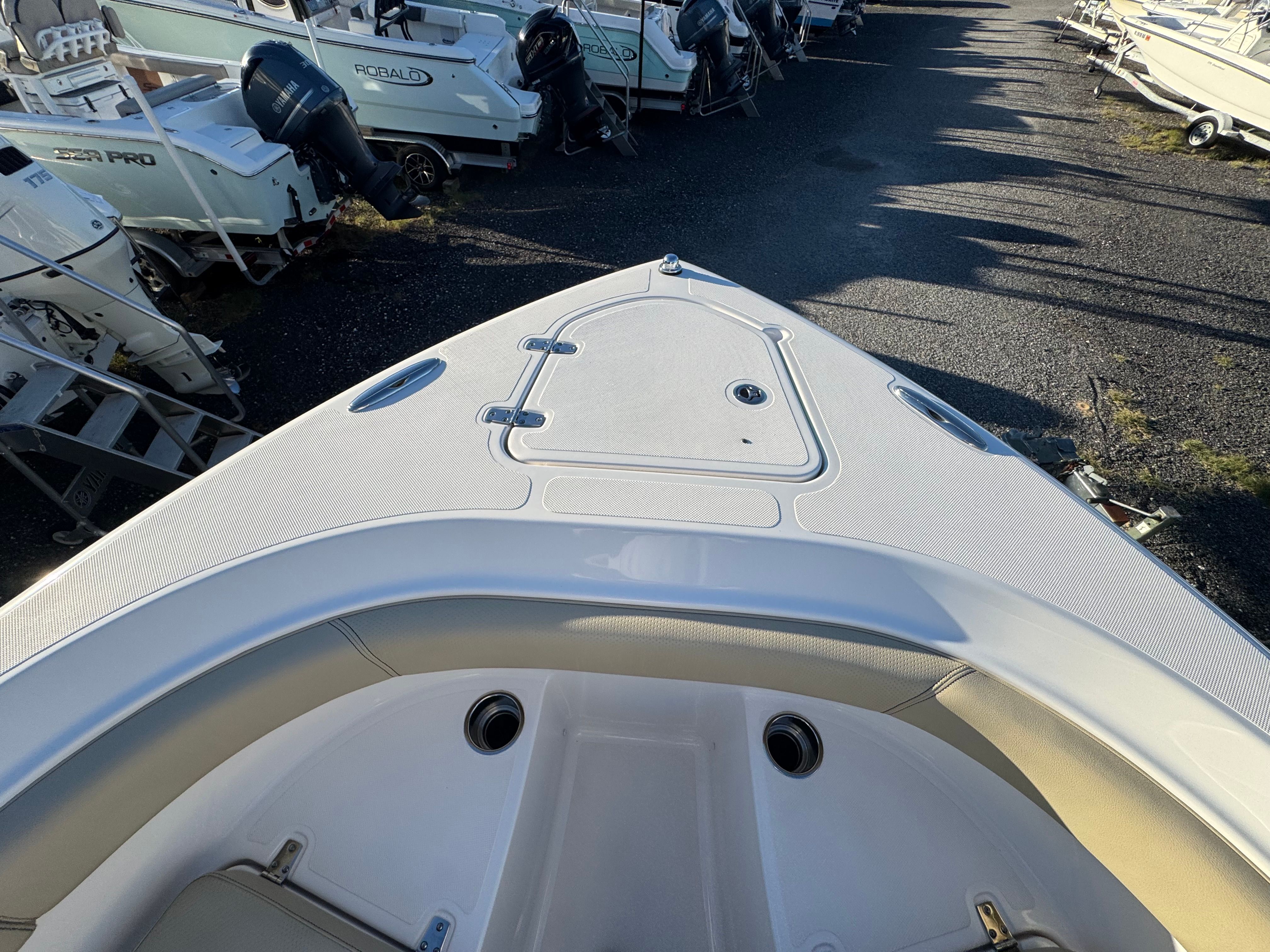 Equipped with twin engines boasting a combined 300 horsepower, the Pursuit S 260 Center Console is engineered for exhilarating performance on the water. The dual-engine setup provides impressive acceleration, smooth cruising, and the confidence to tackle a variety of conditions, from calm lakes to choppy coastal waters. Whether you’re heading out for an early morning fishing expedition or enjoying a leisurely sunset cruise, this Pursuit boat for sale delivers the power and responsiveness you need for a truly enjoyable boating experience. The efficient engine configuration also contributes to better fuel economy, allowing you to spend more time on the water and less time at the pump.