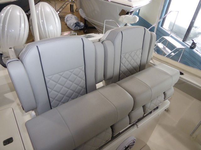 - Premium Helm Seating w/Four (4) Folding Armrests, Articulating Flip-up Bolsters, Upgraded Seat Slide with Fore/Aft Adjustments, and Edson® 316L SS Steering Wheel with Control Knob and Non-Slip Grip