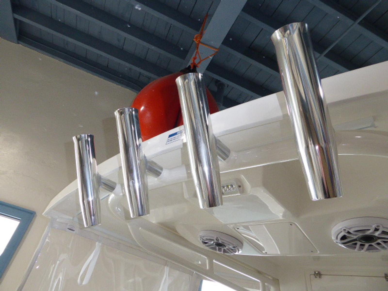 The Pursuit S 268 Center Console is packed with premium features designed to enhance your boating experience. The anchor windlass system with remote makes anchoring simple and efficient, while the three all-color Sea Blaze Quattro Spectrum underwater lights create a vibrant ambiance for evening cruises or dockside gatherings. Four LED blue mid-level cockpit accent lights add a touch of elegance and visibility, ensuring your cockpit remains inviting after sunset.Audiophiles will appreciate the stereo premium upgrade, featuring a custom-tuned 6-channel DSP amp, an 8" subwoofer, four 6.5" JL Audio speakers, and blue backlighting. With SiriusXM and an external antenna included, plus a three-month subscription, you’ll enjoy crystal-clear sound and endless entertainment options while on the water. The backlighting is excluded from hardtop speakers forward of the windshield, ensuring optimal visibility and comfort for all passengers.