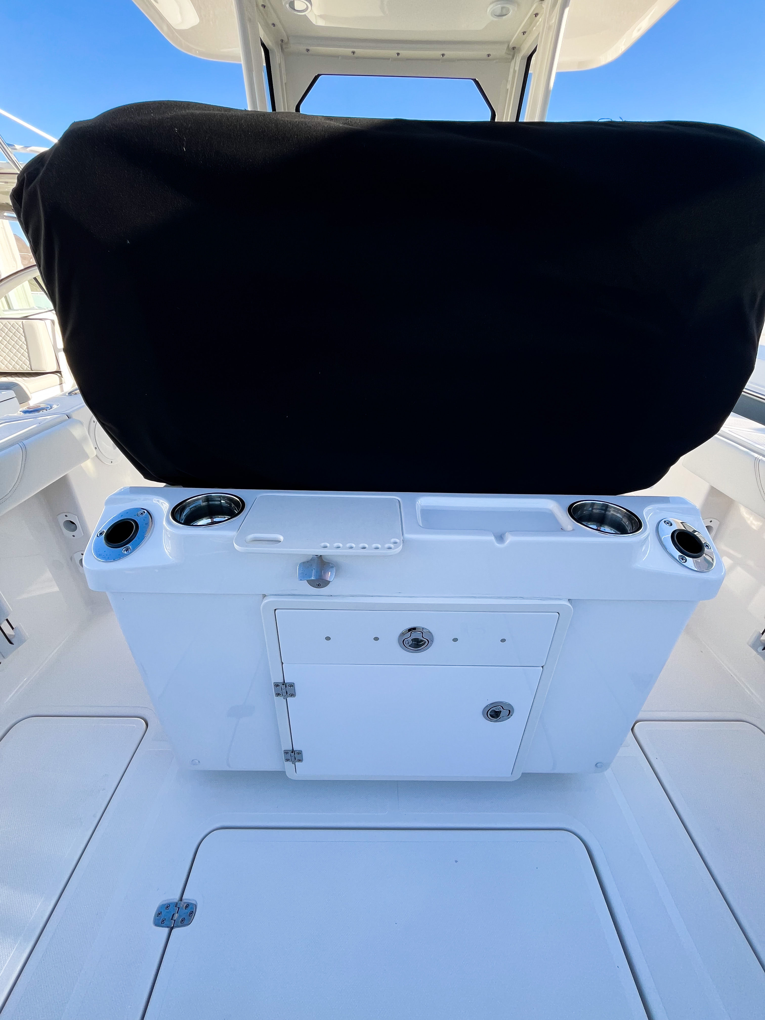 The Pursuit S 268 is loaded with premium features that elevate your boating experience. Notable highlights include FREIGHT, Captain Orientation, PDI Prep and Delivery, and an instrument cover to protect your vital controls. The bow seating area is designed for maximum comfort, featuring folding backrests on both port and starboard sides, allowing you to customize your lounging space with ease. The striking white boot stripe and quartz accents add a touch of elegance to the boat’s exterior, while the leaning post cover ensures your seating area remains protected from the elements. One of the standout features is the premium hardtop with windshield and wiper, offering superior protection from sun, wind, and spray while maintaining excellent visibility. The anchor windlass system with remote provides effortless anchoring, making it simple to secure your position whether you are fishing, swimming, or relaxing at your favorite spot. The full bottom gelcoat to keel in Sea Mist not only enhances the boat’s durability but also gives it a unique and stylish look that sets it apart from other center console boats for sale.
