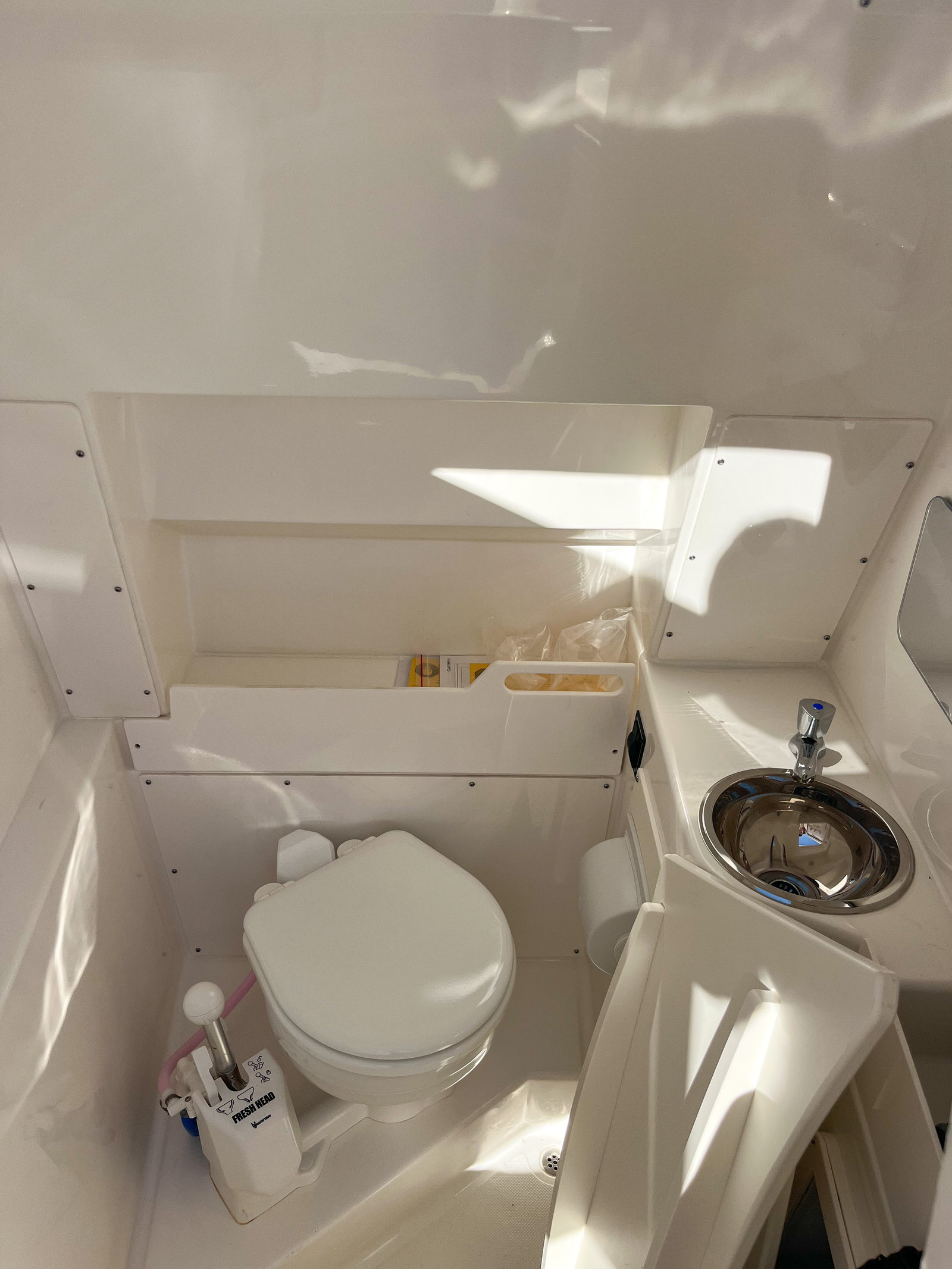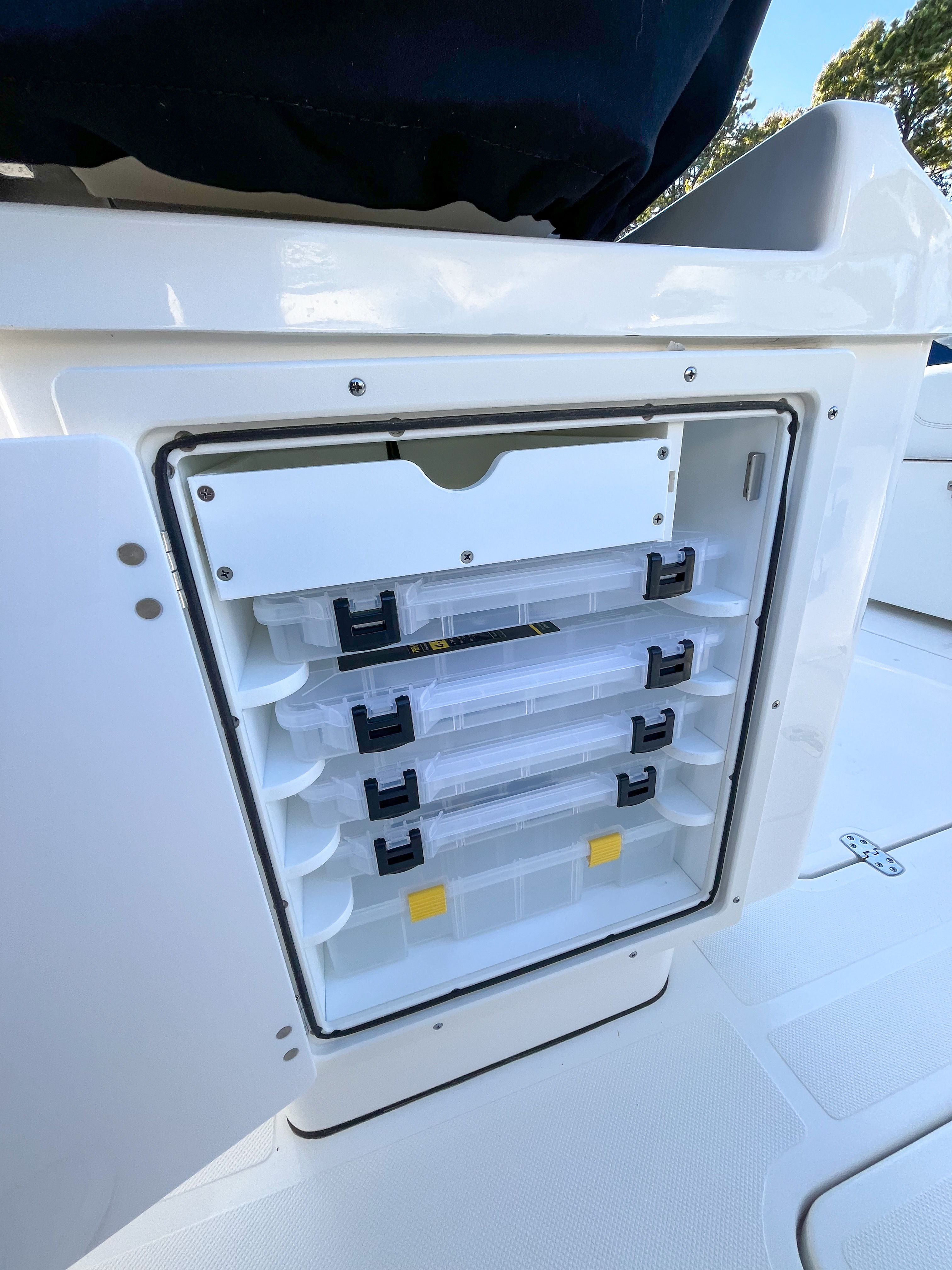 The Pursuit S 268 is designed with practicality in mind, making boat ownership more enjoyable and less stressful. The instrument cover and leaning post cover help protect your investment from sun and salt, preserving the boat’s appearance and functionality. The efficient twin-engine configuration not only delivers impressive power but also offers peace of mind with added redundancy and reliability. Docking and maneuvering are simplified thanks to the responsive handling and balanced design, making it easy for boaters of all experience levels to operate with confidence. The anchor windlass system with remote streamlines the anchoring process, saving time and effort so you can focus on enjoying your day. With its generous length and smart layout, the S 268 provides ample storage for gear, water toys, and essentials, keeping the deck clutter-free and organized.