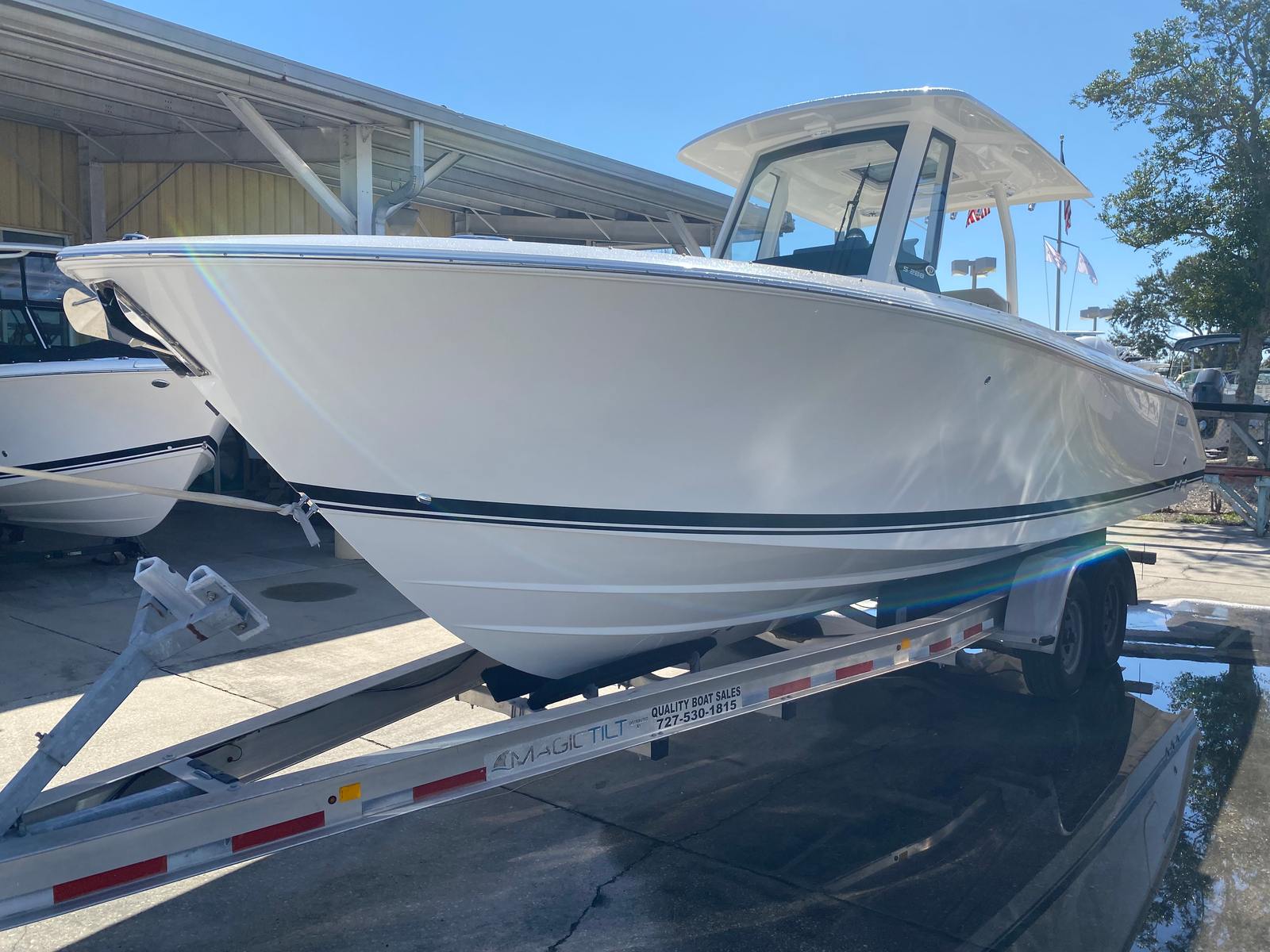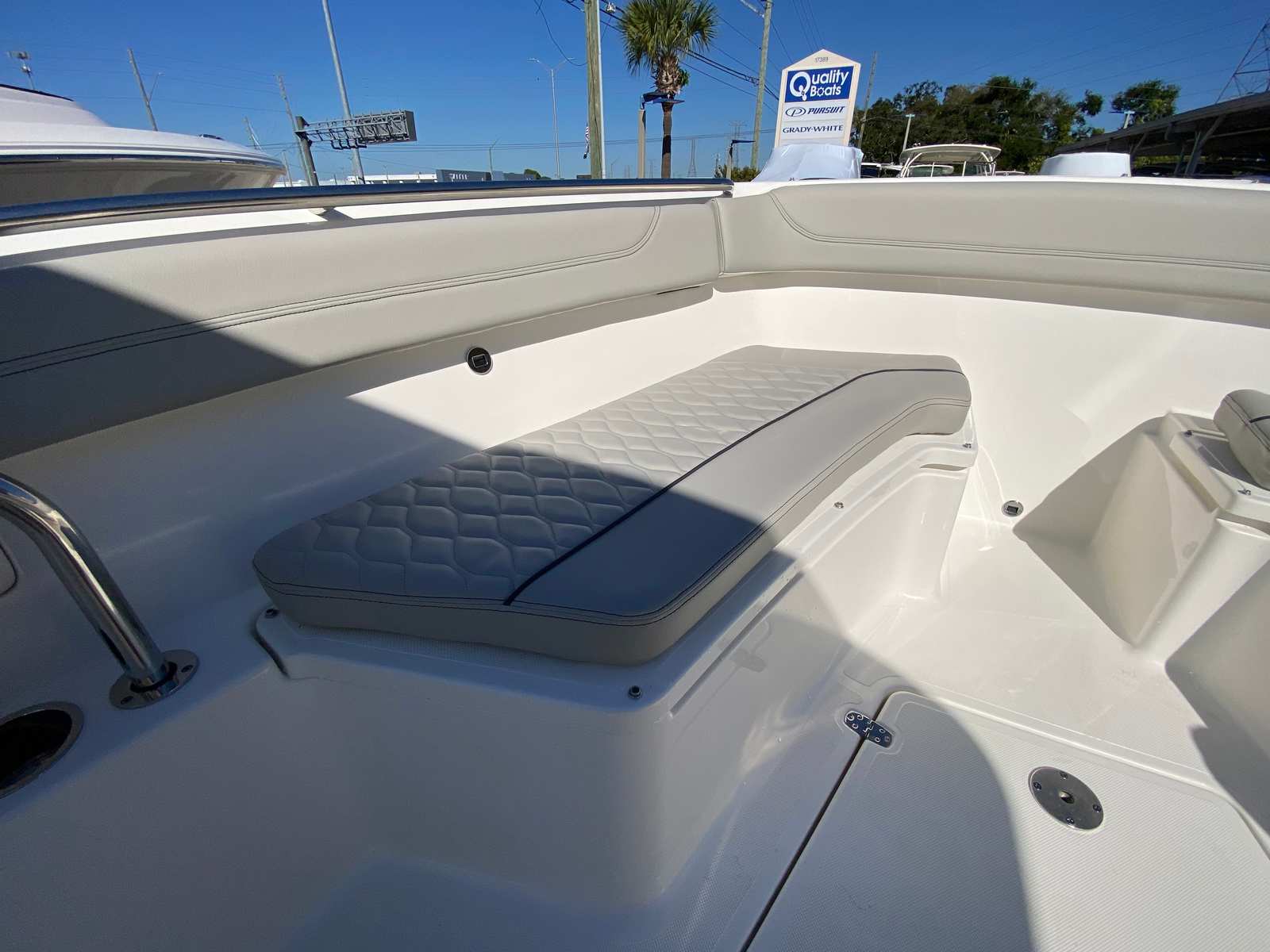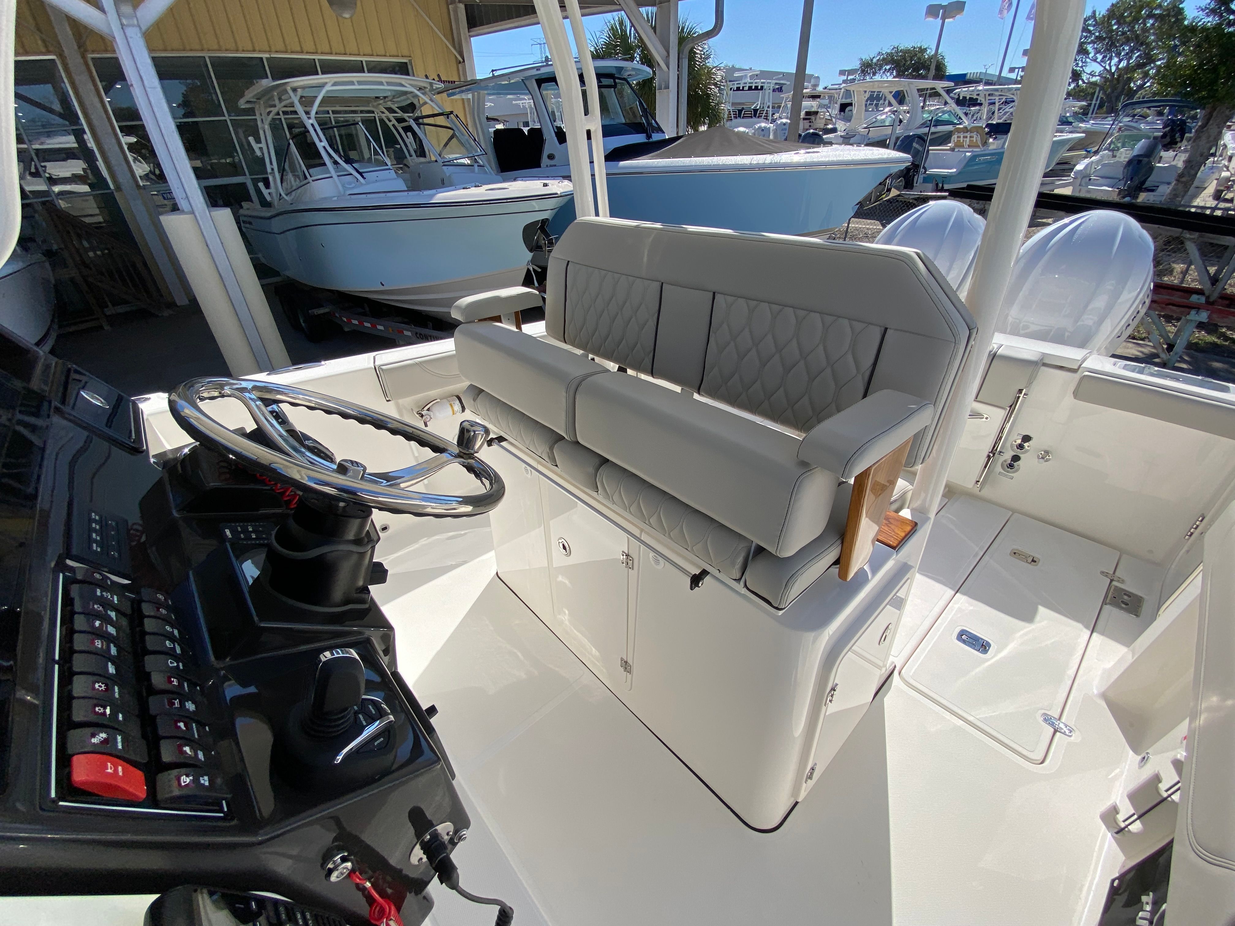 The Pursuit S 288 is as practical as it is stylish. The center console design provides excellent visibility and easy access to all areas of the boat, making it ideal for both novice and experienced boaters. The joystick control system simplifies docking, even in challenging conditions, while the side door boarding ladder ensures that everyone can get on and off the boat safely.Storage solutions are thoughtfully integrated throughout the boat, including dedicated space for the cockpit table and sunshade. The efficient layout allows you to bring along all the gear and supplies you need for a day on the water without sacrificing comfort or mobility. The combination of performance, maneuverability, and user-friendly features makes the S 288 a smart choice for anyone seeking a versatile and reliable center console boat for sale.