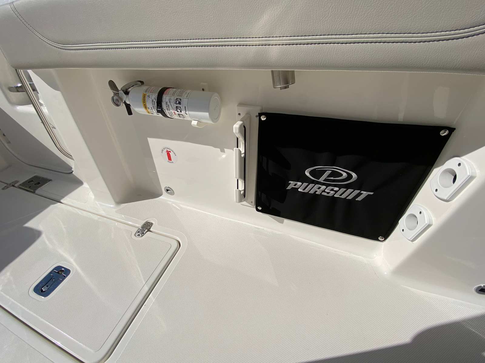 The Pursuit S 288 is loaded with features designed to enhance your boating experience. The twin Yamaha F300 engines are complemented by the advanced Yamaha® Joystick Control system, which includes Set PointTM and Autopilot for unparalleled maneuverability. The hull’s fresh white color and black bootstripe create a visually striking profile, while the carbon-colored helm adds a modern touch to the cockpit.For entertaining and relaxation, the S 288 includes a fiberglass bow/cockpit table with dedicated storage, perfect for serving snacks or drinks while anchored in your favorite cove. The bow Mediterranean style sunshade is stowable, providing flexible protection from the sun when you need it most. Anglers will appreciate the hardtop-mounted rod holders, with six positions for keeping your gear organized and ready for action.The mid-level cockpit accent lights, featuring four blue LEDs, create an inviting atmosphere for evening cruises or late-night fishing trips. Boarding is made easy with the stainless steel side door boarding ladder, ensuring safe and convenient access for all passengers.