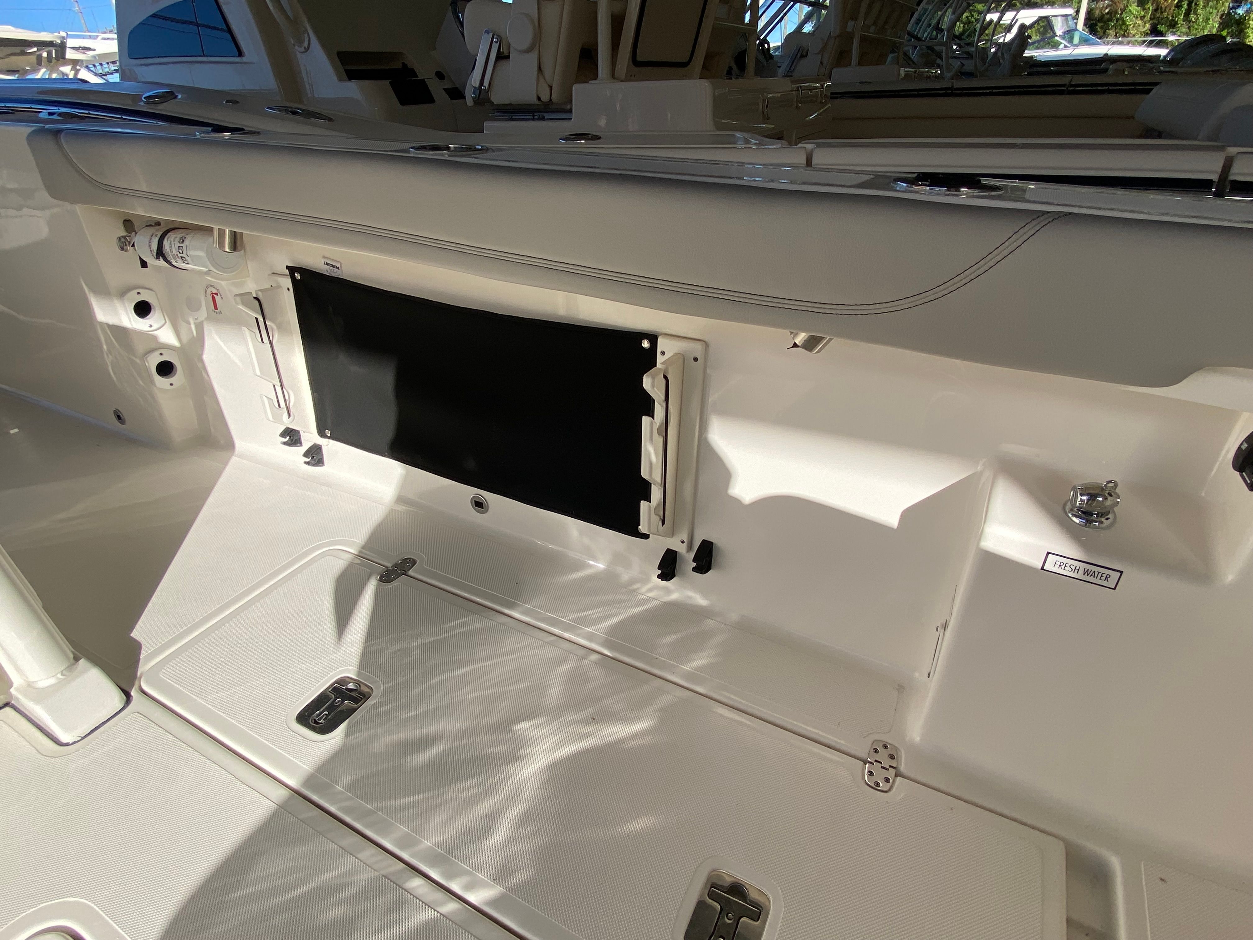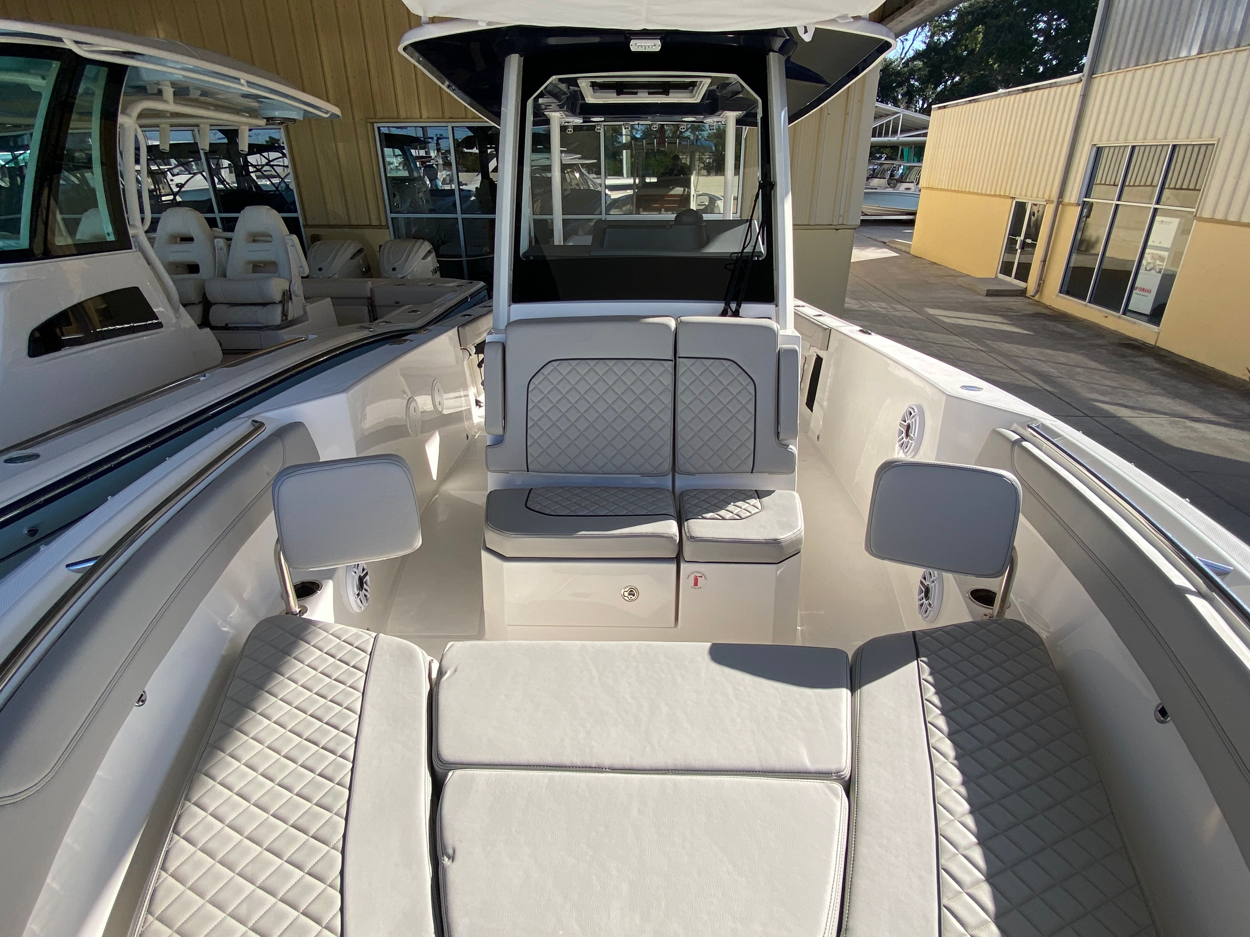Owning the Pursuit S 288 Center Console boat means embracing a lifestyle of fun, relaxation, and adventure. The spacious layout provides plenty of room for family and friends to gather, socialize, and enjoy the water together. The comfortable seating and sunpad cushion invite you to unwind and soak up the sun, while the advanced electronics and navigation systems ensure you are always in control. The twin Yamaha engines offer the perfect balance of power and efficiency, allowing you to explore farther and faster without compromise.The Pursuit S 288 is designed for both serious anglers and leisure seekers. Its versatile deck layout accommodates fishing gear, water sports equipment, and all the essentials for a day on the water. The hullside boarding door ladder makes swimming and water activities more accessible, while the joystick control simplifies docking and maneuvering, even in challenging conditions. The blue LED accent lights add a touch of sophistication and ambiance, making every evening on board memorable.