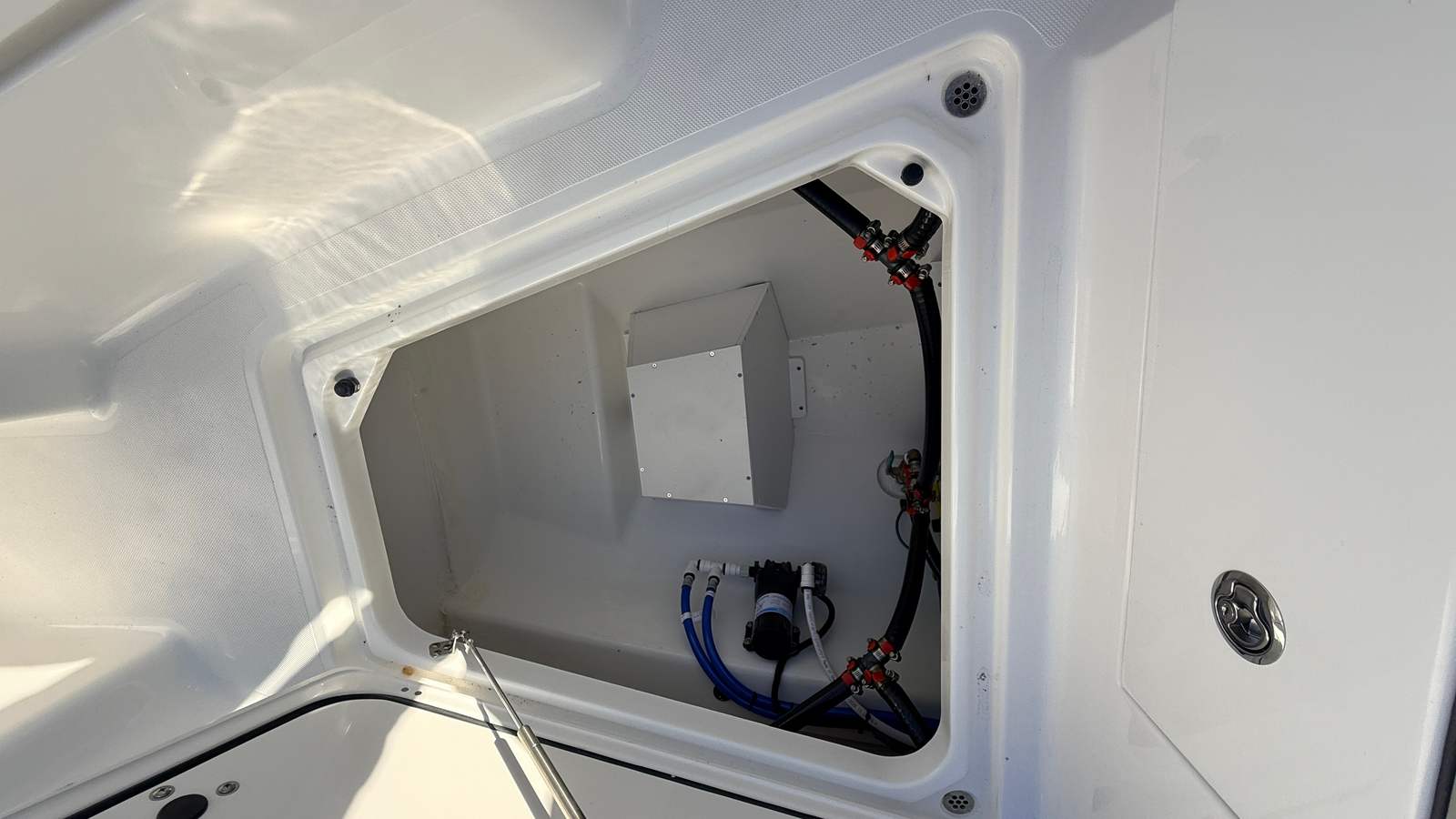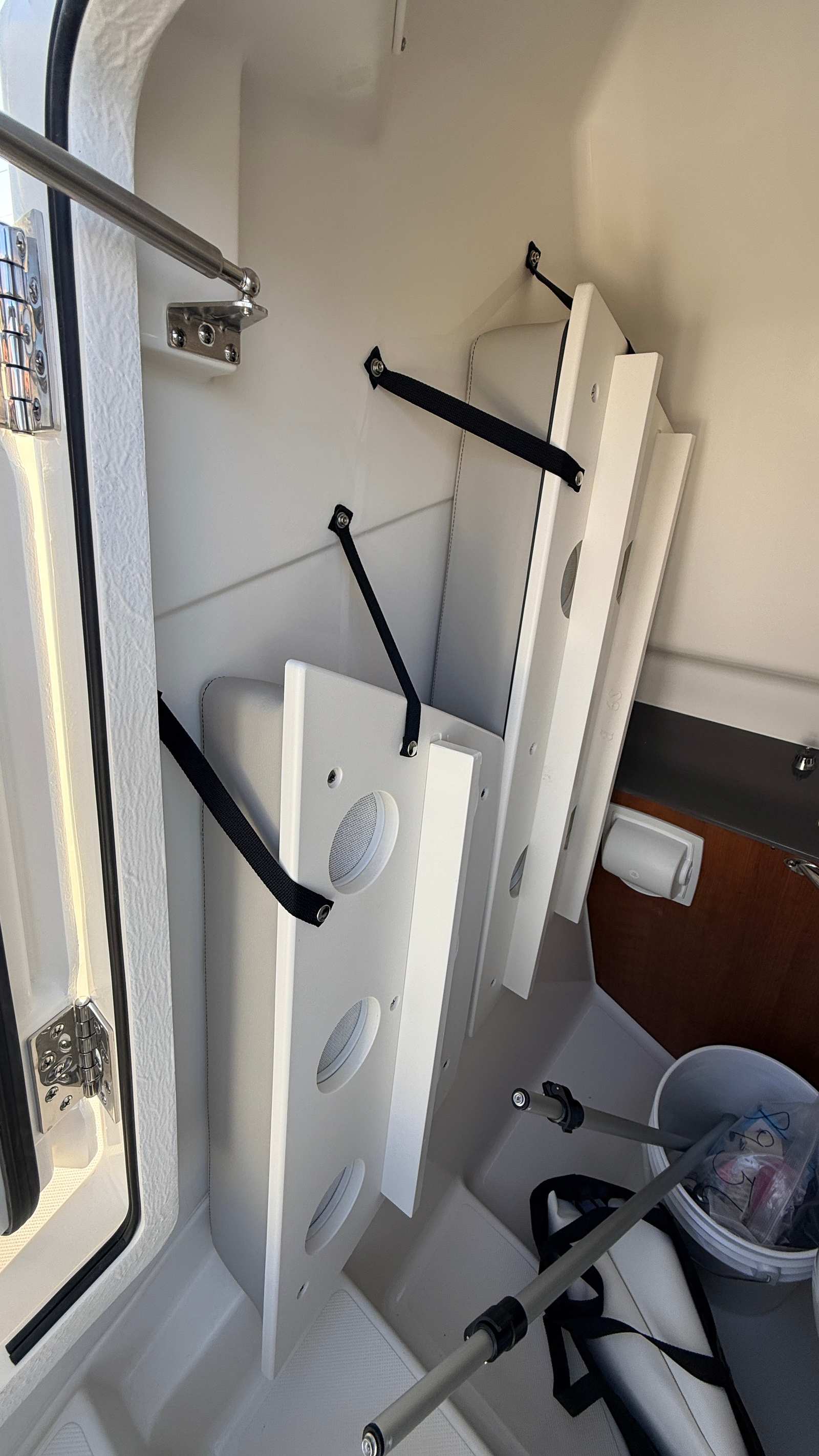 The Pursuit S 288 Center Console is loaded with special features that enhance both functionality and comfort. The Arctic Blue hull and hardtop underside create a cohesive and eye-catching aesthetic, while the black boostripe adds a bold accent. The helm, finished in carbon, provides a modern and ergonomic command center for the captain.For entertaining and relaxation, the boat includes a fiberglass bow/cockpit table with dedicated storage, perfect for serving snacks or drinks during social gatherings. The stowable Bow Mediterranean Style Sunshade offers protection from the sun, allowing you to enjoy extended hours on the water in comfort. Anglers will appreciate the hardtop-mounted rod holders (six in total), which keep gear organized and accessible. Mid-level cockpit accent lights and four LED blue lights create an inviting ambiance for evening cruises or dockside parties.
