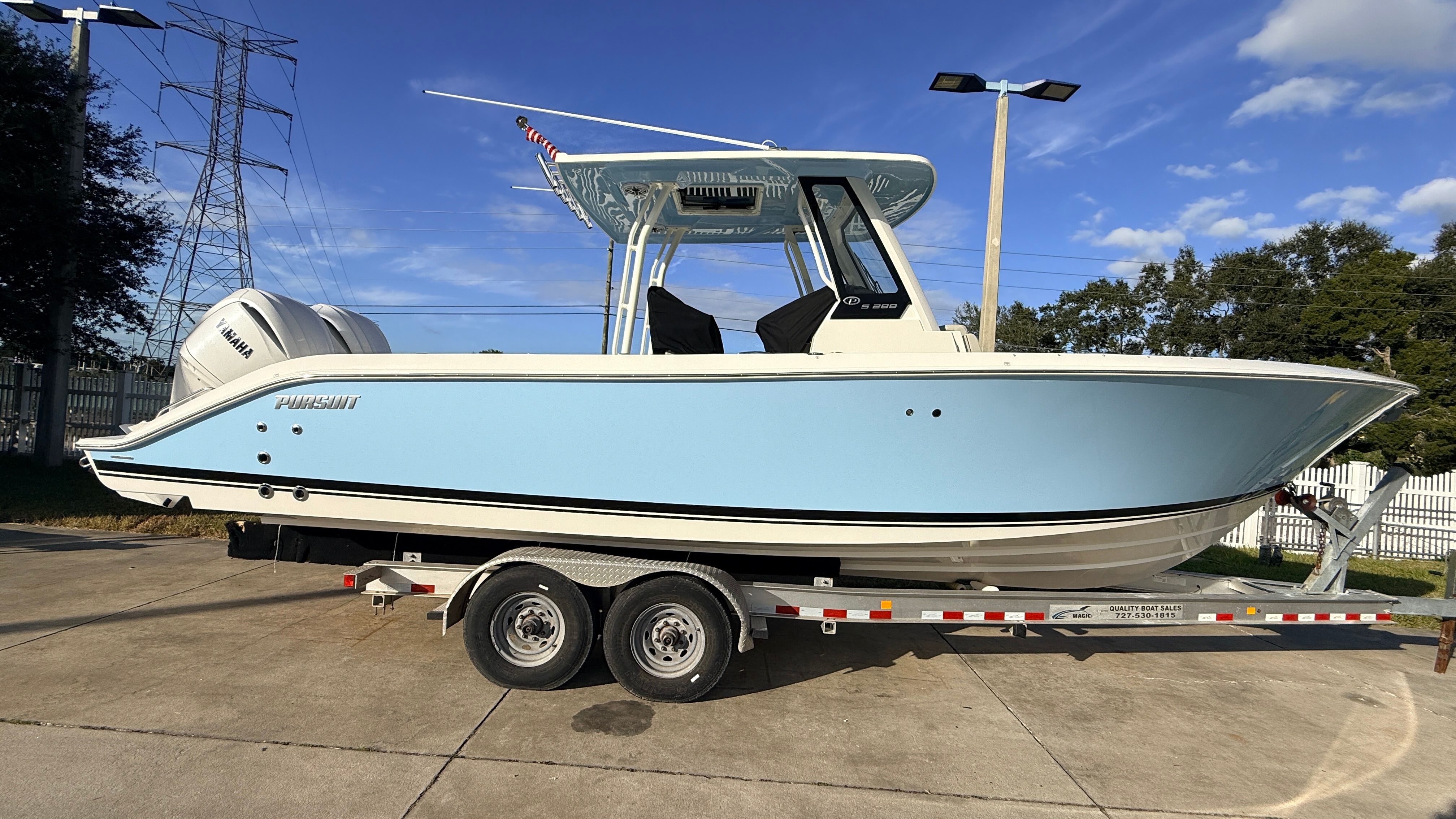The 2026 Pursuit S 288 Center Console is a remarkable vessel that combines power, style, and versatility in one stunning package. With twin Yamaha F300XSB2 engines, advanced joystick control, and a host of premium features—including Arctic Blue hull and hardtop, carbon helm, stowable sunshade, fiberglass table, rod holders, and LED accent lighting—this Pursuit boat for sale is ready to elevate your boating experience.Whether you’re seeking adventure, relaxation, or the perfect platform for entertaining, the S 288 delivers on every front. Don’t miss the opportunity to own a new Center Console boat that sets the standard for performance and luxury. Contact the dealer today to learn more about the Pursuit S 288 and start your journey toward unforgettable days on the water.