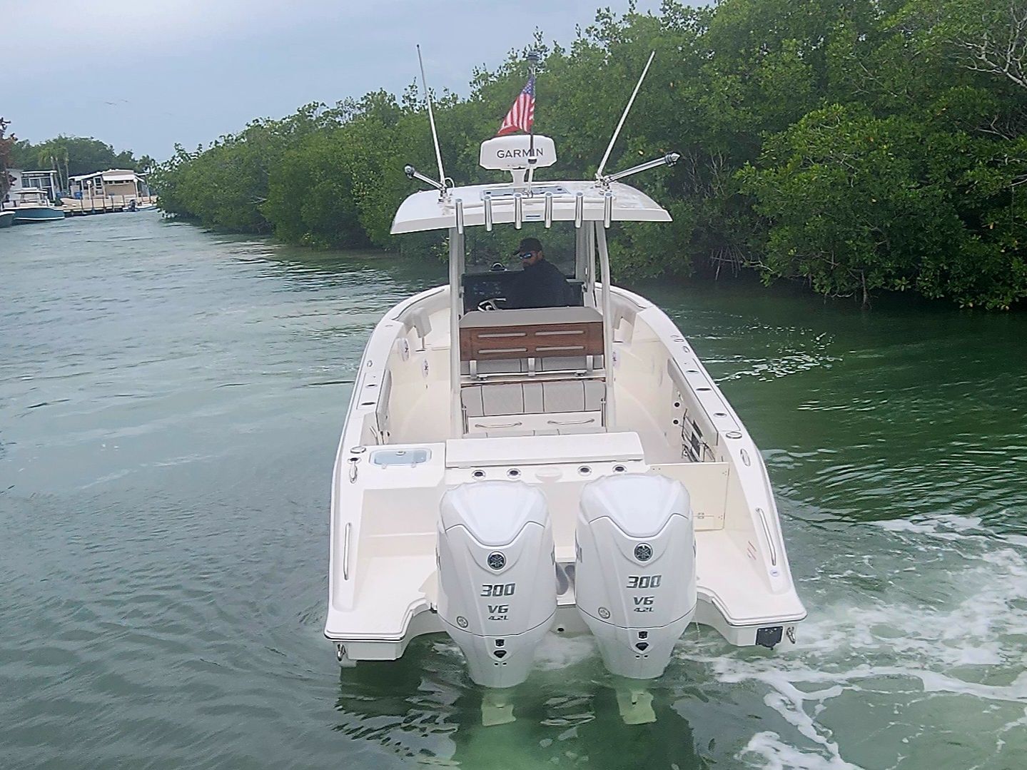 Owning the Pursuit S 288 means embracing a lifestyle of fun, relaxation, and adventure. This center console boat is designed for maximum enjoyment, offering a spacious and versatile deck layout that encourages socializing, sunbathing, and water sports. The stowable sunshades provide customizable comfort, allowing you to create the perfect environment for any activity, from lounging in the shade to soaking up the sun. The dedicated storage for the fiberglass table ensures your deck remains clutter-free, while the LED accent lighting transforms evening outings into memorable events.The Pursuit S 288’s powerful twin Yamaha engines not only deliver thrilling performance but also inspire confidence with their reliability and efficiency. Whether you’re chasing the next big catch or exploring new destinations, you’ll appreciate the smooth ride and responsive handling that make every trip enjoyable. The advanced joystick control system takes the stress out of docking and maneuvering, so you can spend more time having fun and less time worrying about logistics.