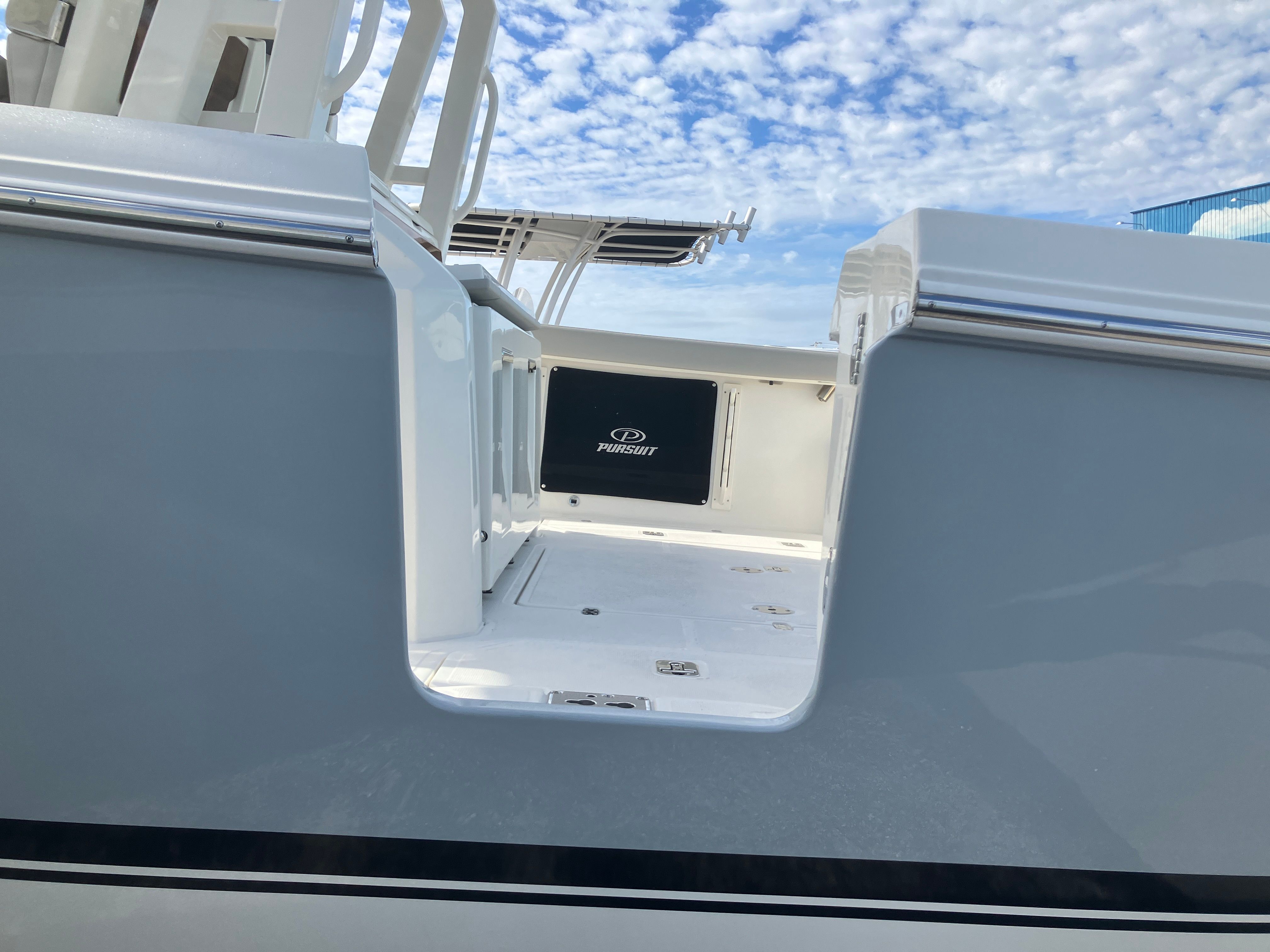 The Pursuit S 328 is packed with premium features that elevate your boating experience. The helm is finished in sleek carbon, offering a modern and ergonomic command center for the captain. The interior fabric, dubbed Tranquil Sea, creates a serene and inviting atmosphere, perfect for relaxing after a day of excitement on the water. Black canvas elements, including the instrument cover, helm/comp seat cover, and bow tonneau cover, provide both style and protection, ensuring your boat remains in pristine condition. For anglers, the installed cockpit tackle locker is a game-changer, offering organized storage for all your fishing gear and making it easy to switch between rods and tackle. Every detail of the S 328 has been thoughtfully designed to maximize comfort, convenience, and enjoyment.