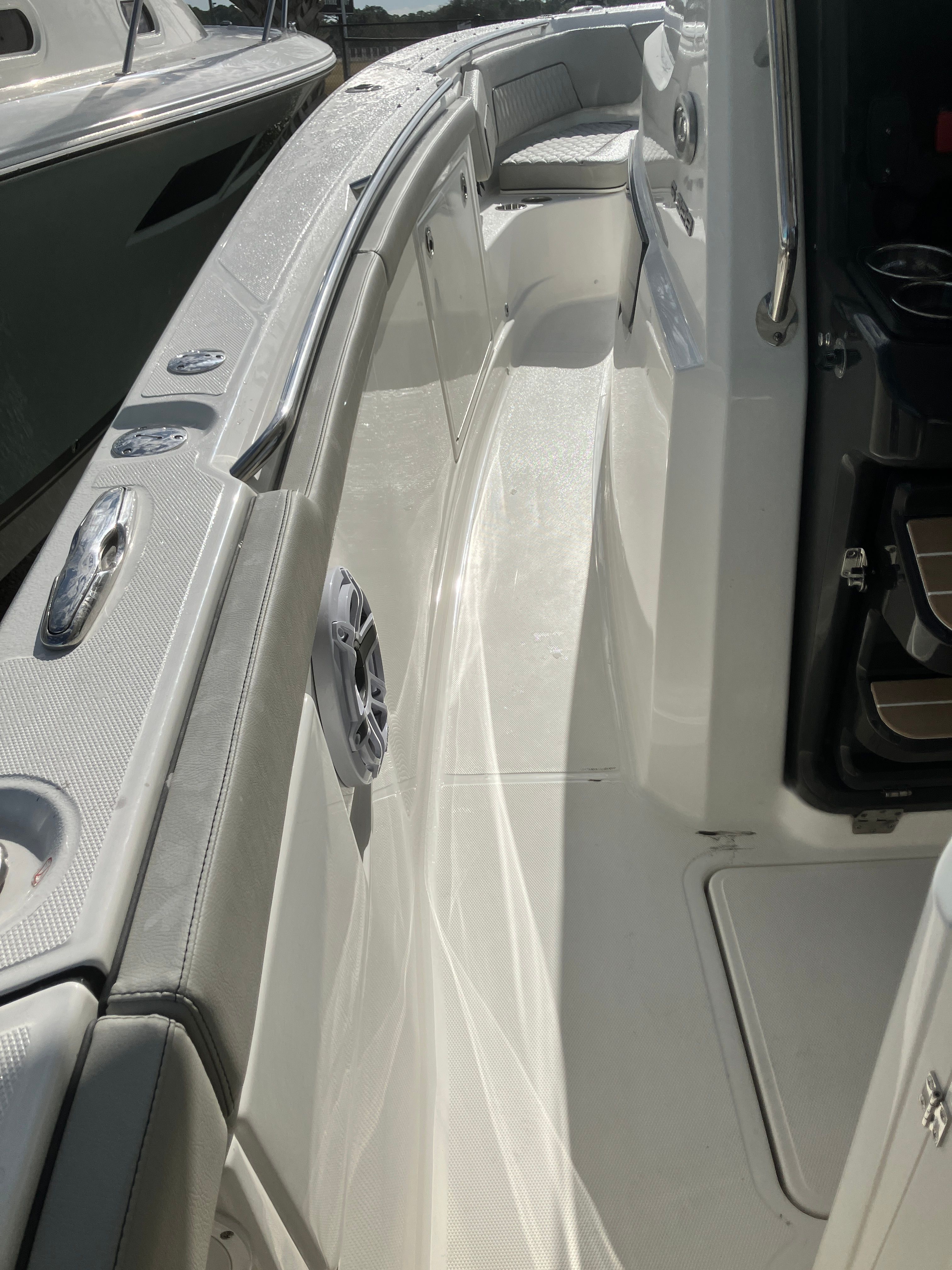 Power and precision are at the heart of the Pursuit S 328’s design. Equipped with twin Yamaha F350 engines in a striking Pearlescent White finish, this Center Console boat delivers a total of 700 horsepower. The advanced Yamaha engines are renowned for their reliability, smooth operation, and impressive acceleration, ensuring you have all the power you need for offshore excursions, watersports, or leisurely cruises. The dual-engine setup not only enhances speed and agility but also provides added safety and maneuverability, making docking and navigating tight spaces a breeze. With this level of performance, the S 328 is ready to tackle any adventure you have in mind.