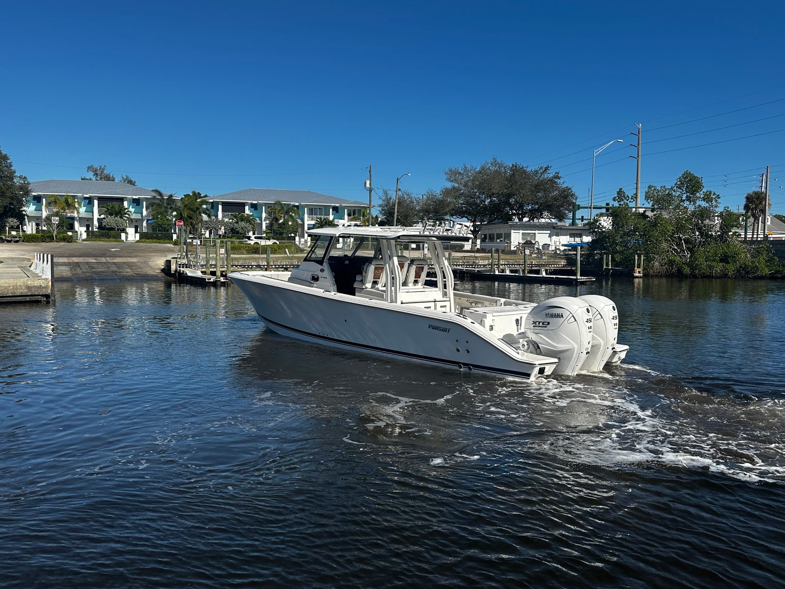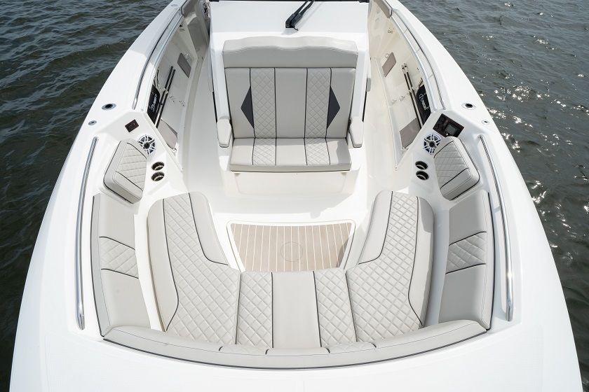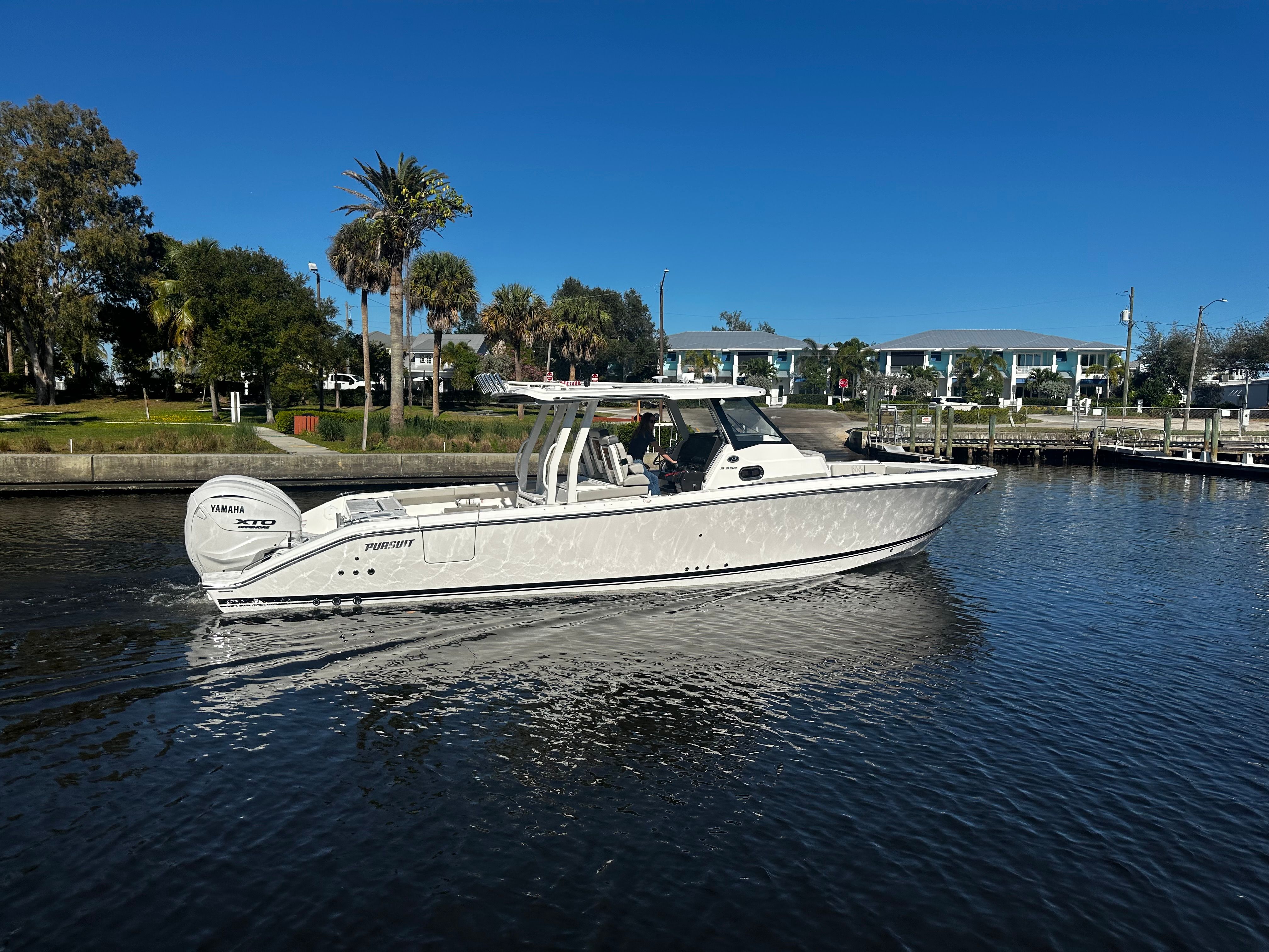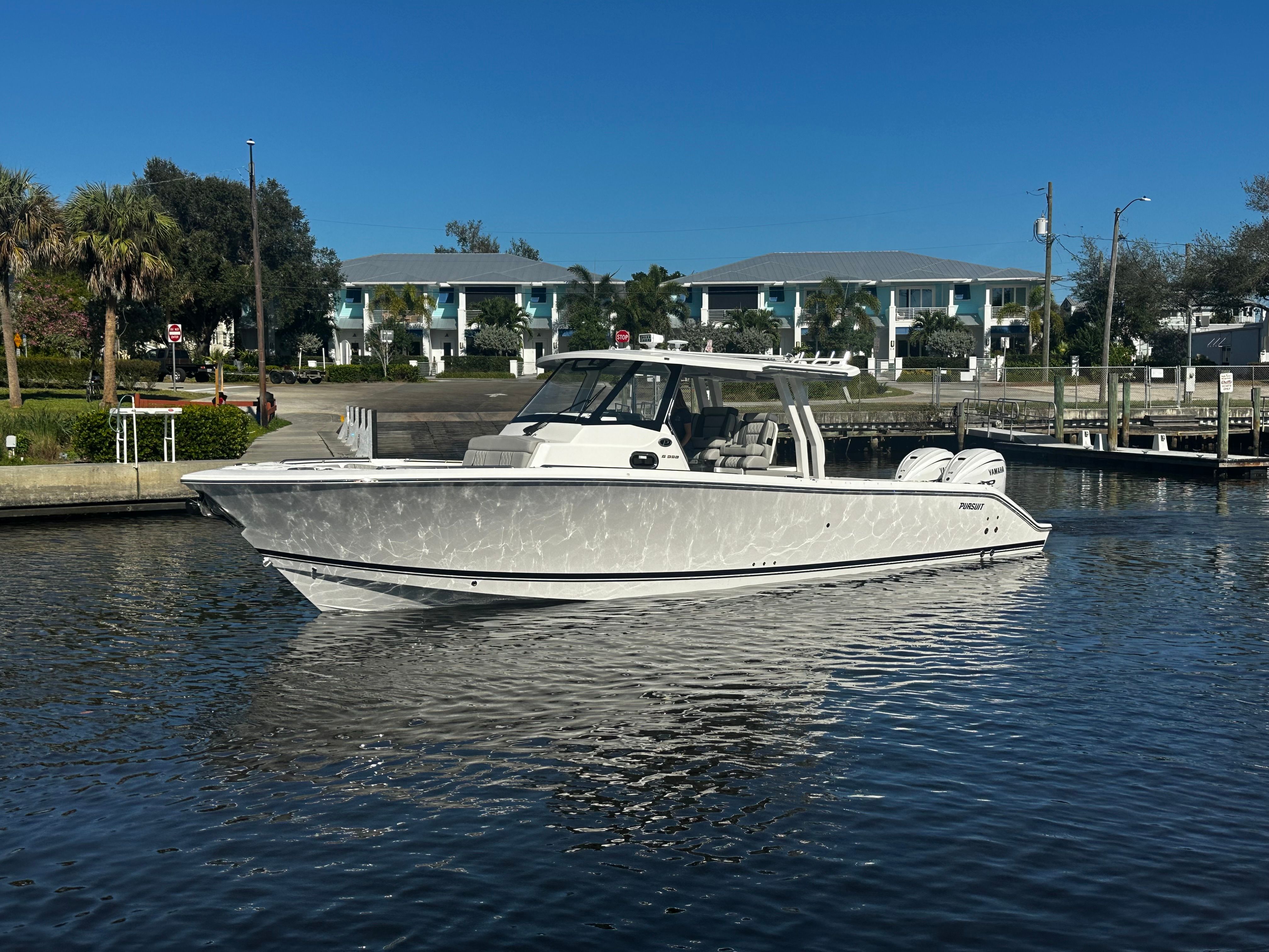 Power and precision are at the heart of the Pursuit S 358. Equipped with twin Yamaha XF450XTO engines, this center console delivers a combined 900 horsepower, providing exhilarating acceleration and smooth handling in a variety of conditions. The Yamaha Twin XF450XTO Full Maneuverability system ensures effortless docking and precise control, making it easy to navigate tight marinas or busy waterways. Whether you are cruising at high speeds or enjoying a leisurely ride, the S 358’s advanced propulsion system guarantees a responsive and enjoyable experience every time you take the helm.