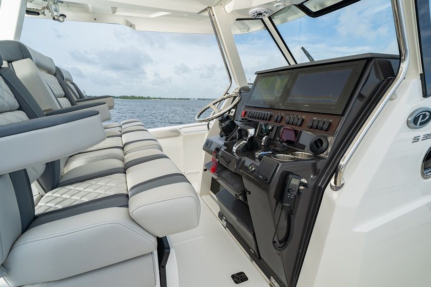 The Pursuit S 358 is engineered for convenience and ease of ownership. The Yamaha Twin XF450XTO Full Maneuverability system simplifies docking and close-quarters maneuvering, reducing stress and making every outing more enjoyable. The diesel genset ensures you have reliable power for all your onboard systems, while the air-conditioned cabin offers a comfortable escape from the elements. Thoughtful design details, such as the ergonomic helm and durable upholstery, contribute to a hassle-free boating experience. With its spacious deck and smart storage solutions, you will have plenty of room for gear, water toys, and provisions, making it easy to prepare for any adventure.
