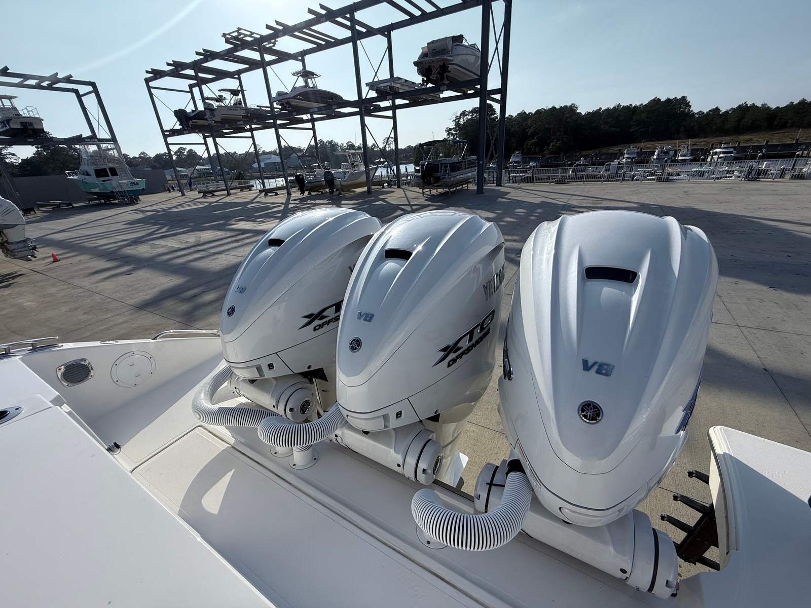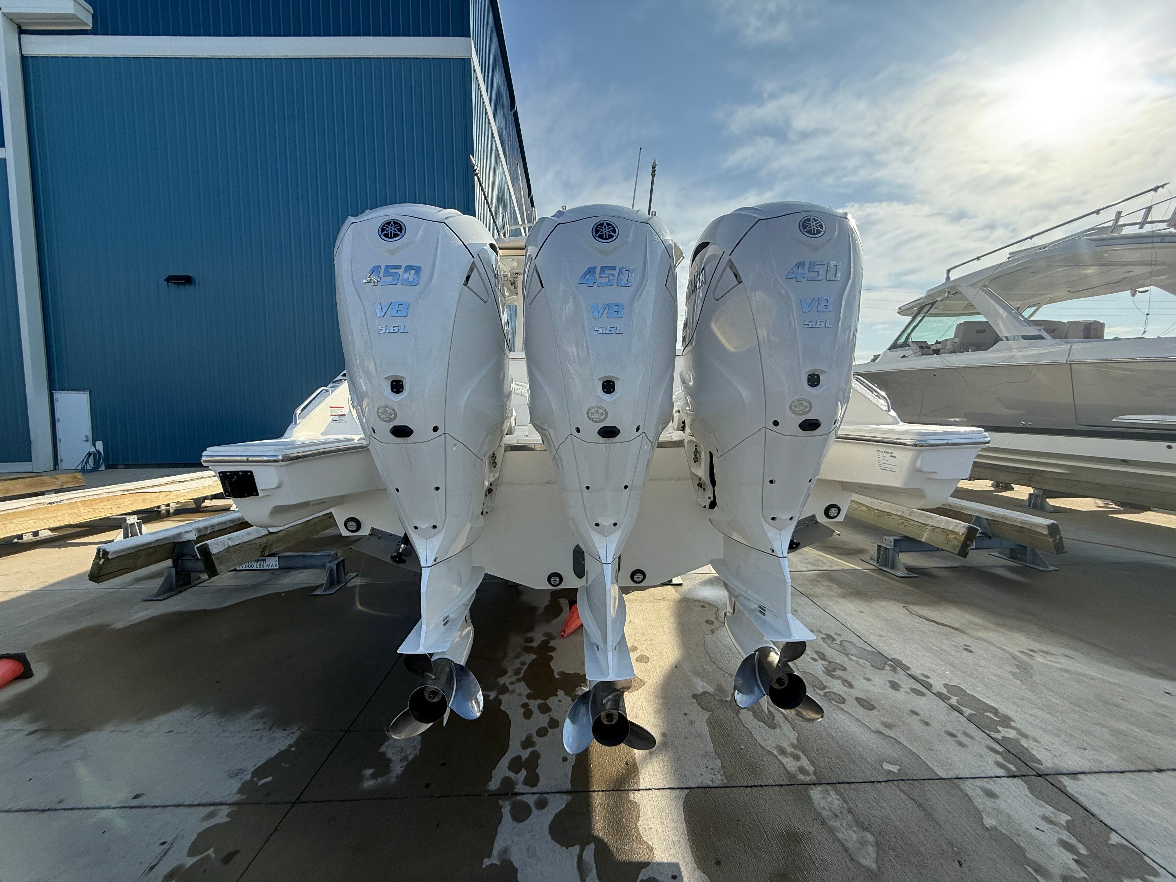 - Triple Yamaha XF450XTO - Pearlescent White w/ Integrated Electric Steering, Helm Master® EX Digital Electronic Control and Yamaha® Joystick Control w/ Full Maneuverability, Multifunction Display Interface and Manual Engine Flushing System