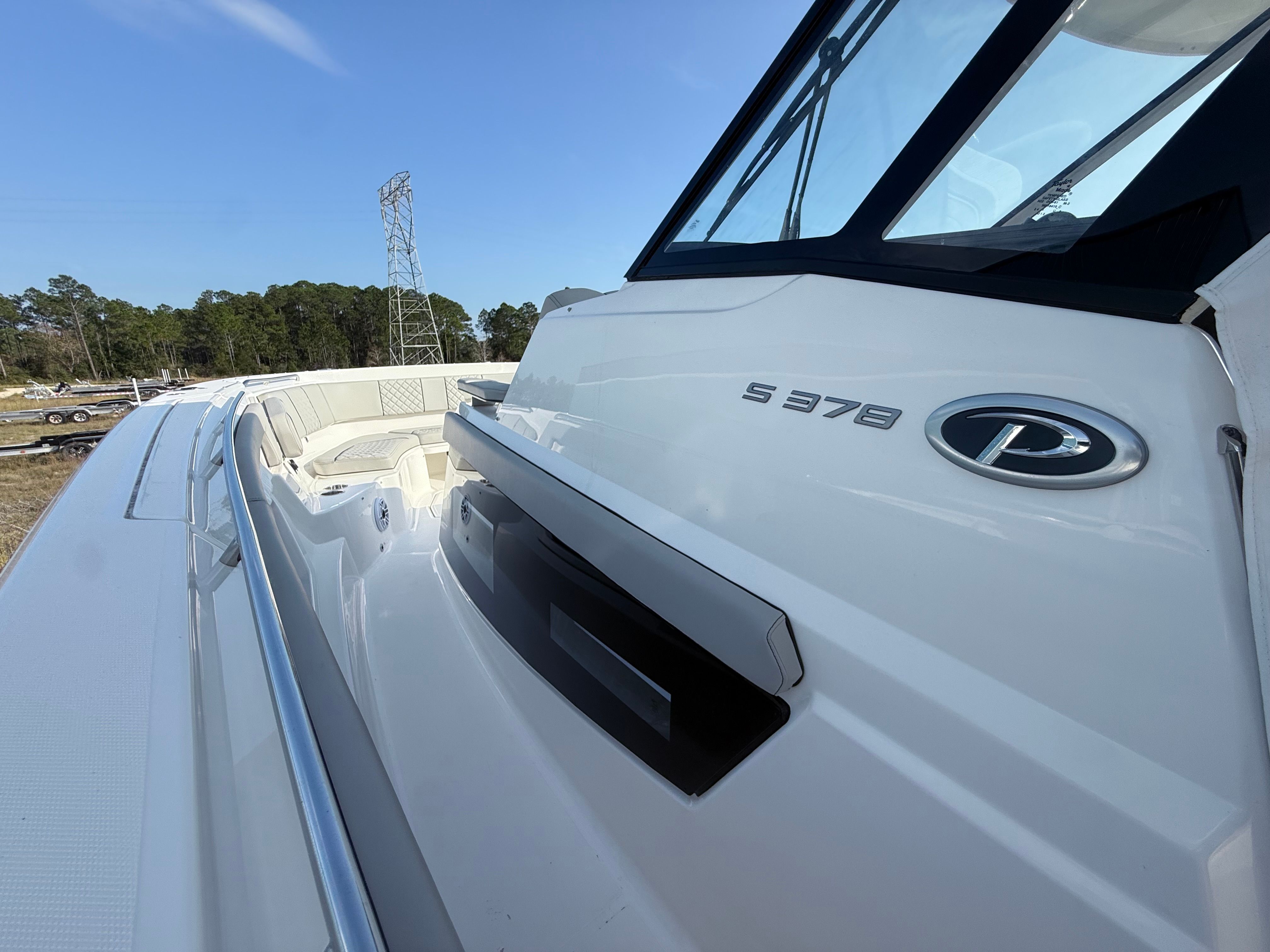 Step aboard the Pursuit S 378 and discover a world of comfort and convenience. The interior upholstery, finished in Tranquil Sea, creates a serene and inviting atmosphere, while the exterior upholstery in Sea Salt adds a touch of elegance and sophistication. The helm area features composite decking in Smoke, providing both durability and a modern aesthetic. For those hot summer days, the 240v/60Hz cockpit AC keeps the onboard environment cool and comfortable, ensuring everyone can relax in style.Fishing enthusiasts will appreciate the hardtop-mounted rod holders, with six available for easy access and organization. Stay informed and safe on the water with the SiriusXM® Receiver for Weather, offering real-time updates and entertainment. The bow Mediterranean style sunshade provides ample protection from the sun, allowing you to enjoy the outdoors without compromise. The underside of the hardtop is finished in Fresh White, enhancing the boat’s clean and contemporary look.Music lovers will be thrilled with the premium stereo upgrade, delivering crystal-clear sound throughout the vessel. For added convenience, the electric retractable cockpit sunshade offers customizable shade at the touch of a button, making it easy to adapt to changing weather conditions or personal preferences.