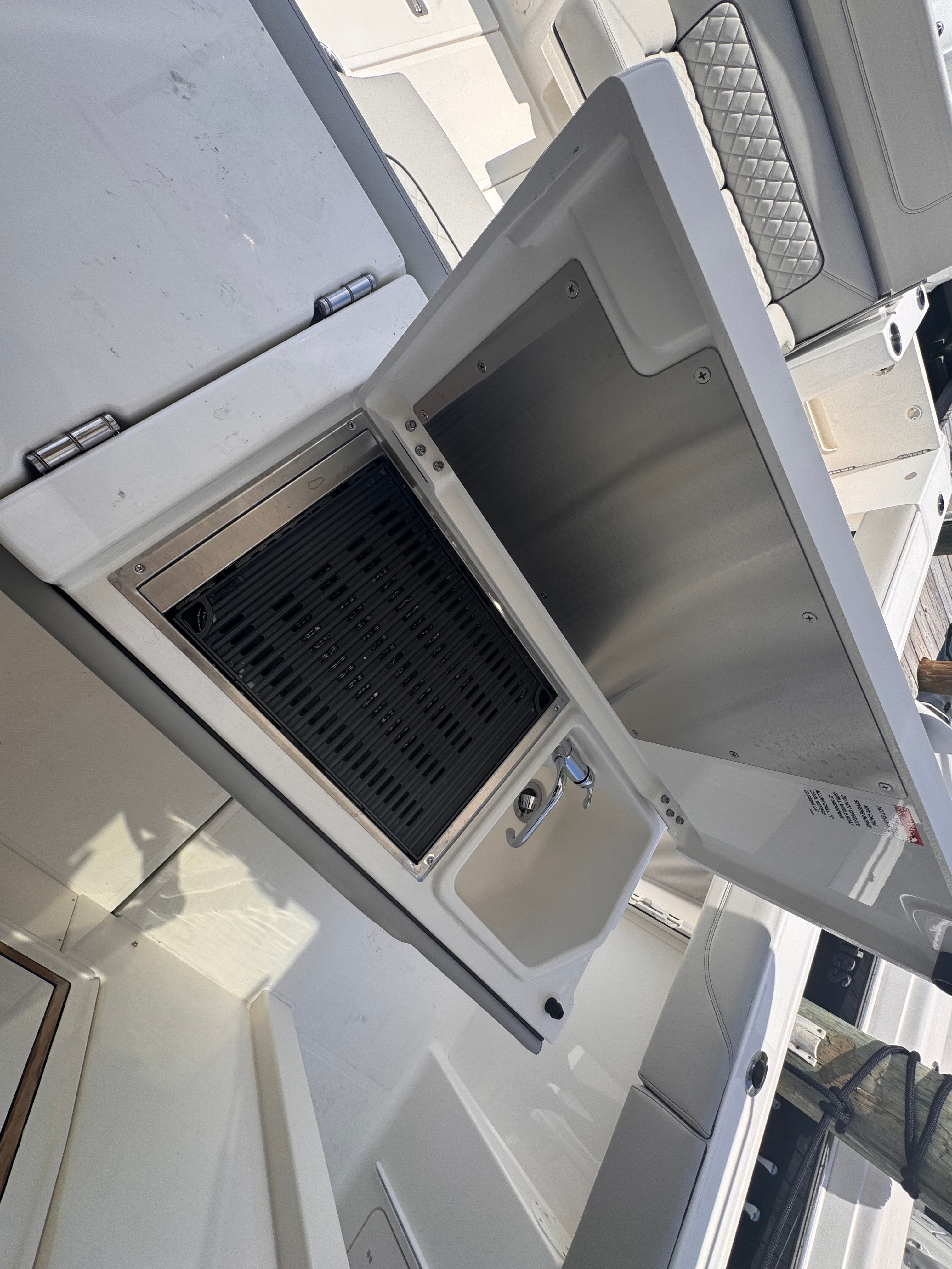 The Pursuit S 378 is designed with practicality in mind, offering features that make ownership both enjoyable and hassle-free. The spacious deck provides ample room for storing gear, coolers, and personal items, keeping the boat organized and clutter-free. Docking is simplified by the boat’s responsive handling and thoughtful layout, allowing for easy maneuvering in tight spaces.Fuel efficiency is a hallmark of the S 378’s triple-engine configuration, ensuring that you can spend more time on the water and less time refueling. The durable composite decking and high-quality upholstery materials are easy to clean and maintain, preserving the boat’s pristine appearance over time. With advanced weather monitoring and customizable sun protection, you can confidently plan outings in a variety of conditions, knowing that your boat is equipped to handle whatever comes your way.