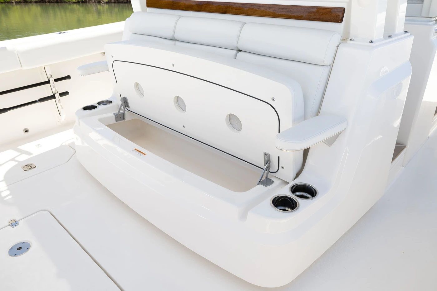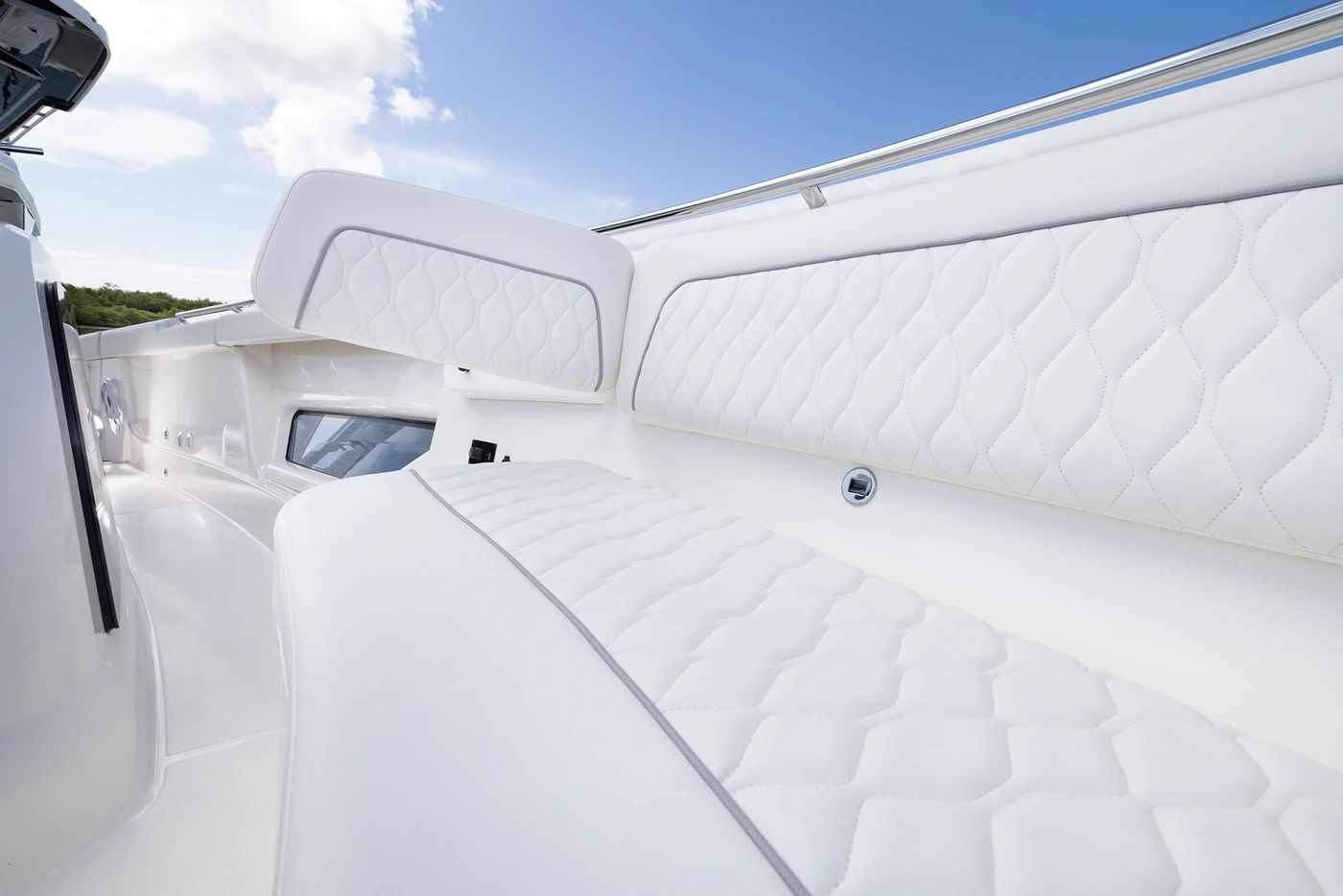 Owning the Pursuit S 388 means embracing a lifestyle of fun, relaxation, and excitement. This center console boat is designed to bring people together, whether you are hosting a sunset cruise, embarking on a fishing expedition, or enjoying a day of water sports. The spacious deck layout offers plenty of room for socializing, sunbathing, or casting a line, making every outing memorable.The advanced features and thoughtful design elements ensure that every moment on board is comfortable and enjoyable. The air-conditioned cockpit keeps you cool on hot summer days, while the stylish interior invites you to unwind in luxury. The Seakeeper stabilization system guarantees a smooth ride, so you can focus on making memories without worrying about rough seas.