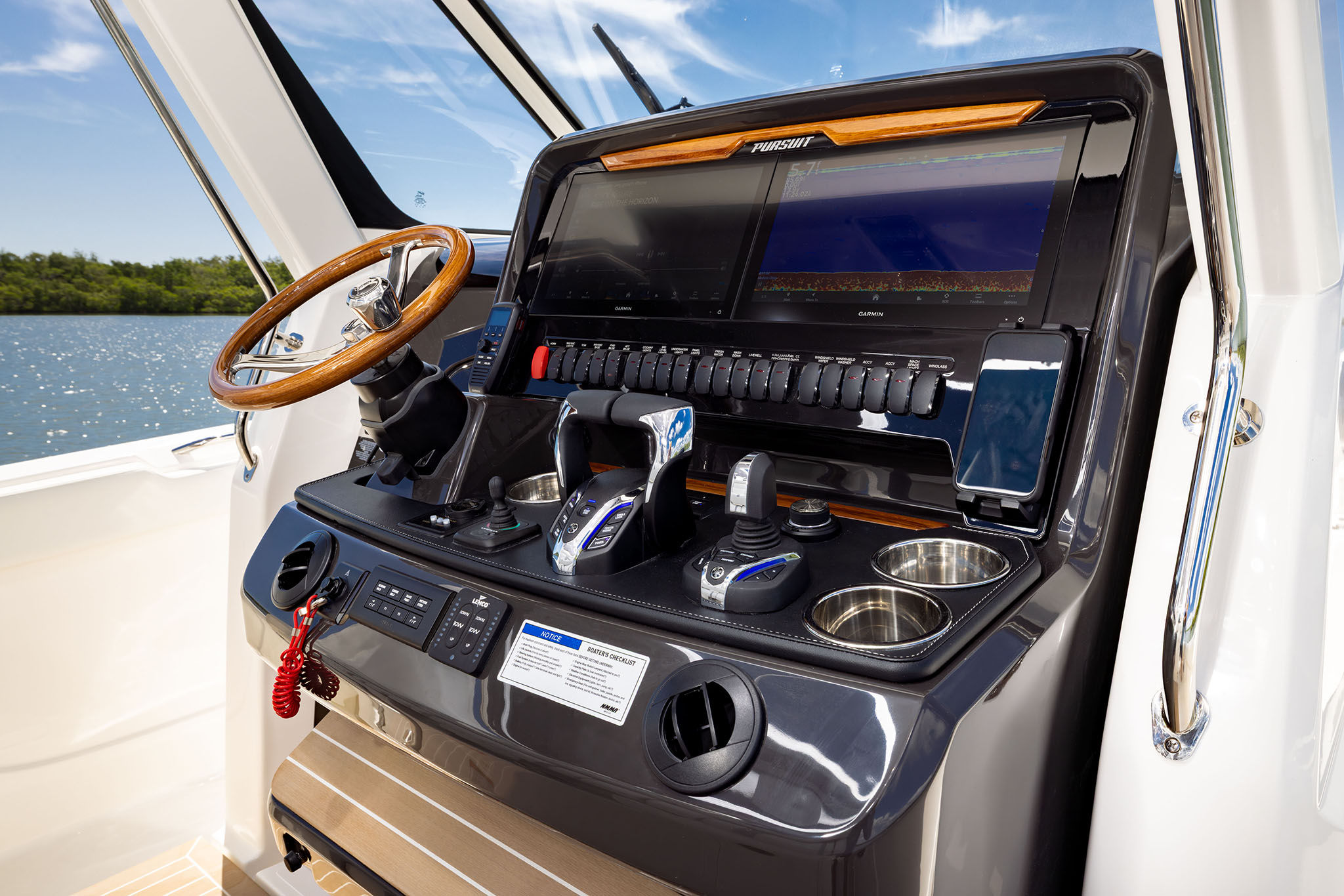 - Aft Hardtop Technology Package: Garmin® GPSMAP 8612 with Custom Pursuit User Interface (UI), Custom Flush-Mount Panel, Garmin® GC-14 Rear Facing Camera and Tri-Color Overhead Light (1)