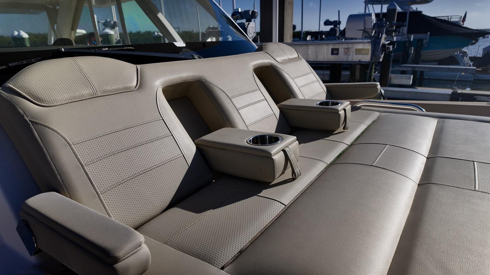 The Pursuit S 408 Center Console is packed with features that cater to both serious anglers and those who love to entertain. Its expansive deck offers plenty of space for fishing, sunbathing, or socializing with friends and family. The helm is thoughtfully designed for maximum visibility and control, with ergonomic seating and intuitive controls that make piloting this Pursuit boat for sale a true pleasure. The boat’s layout includes ample seating throughout, allowing guests to relax in comfort while enjoying the stunning views. Storage compartments are strategically placed to keep gear organized and out of the way, ensuring a clutter-free environment on board.