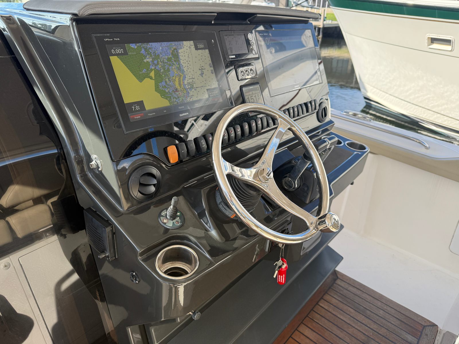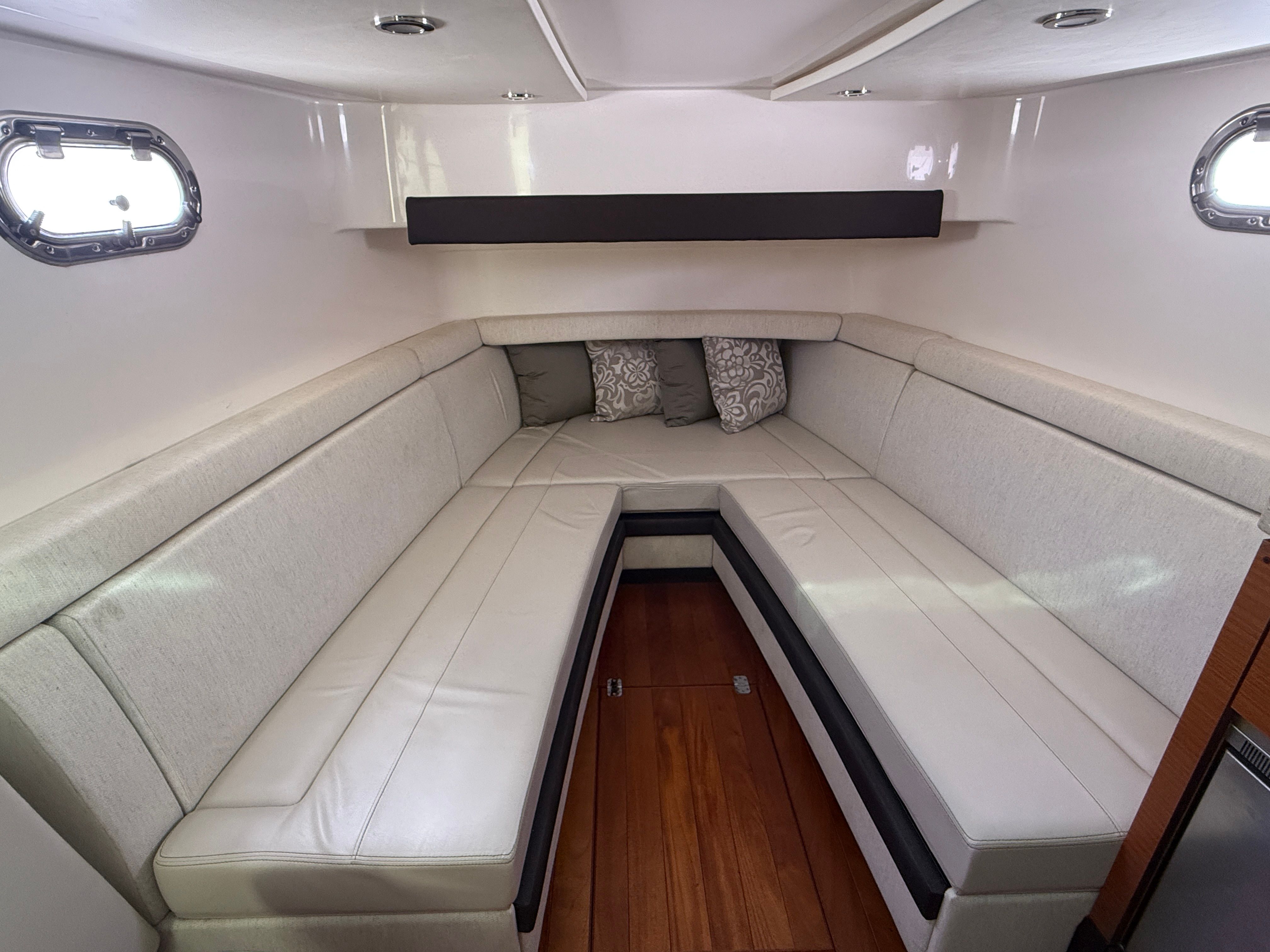 Under the hood, the Pursuit S 408 is powered by three engines, delivering a combined 1,050 horsepower. With only 480 engine hours, these motors promise plenty of life and reliable operation for future excursions. The triple-engine setup ensures impressive acceleration, smooth cruising, and the ability to reach your favorite destinations quickly and efficiently. Whether you’re navigating open waters or maneuvering through tight channels, the Pursuit S 408’s power and agility make every trip exhilarating. The responsive handling and robust horsepower are perfect for those who crave speed and precision on the water.